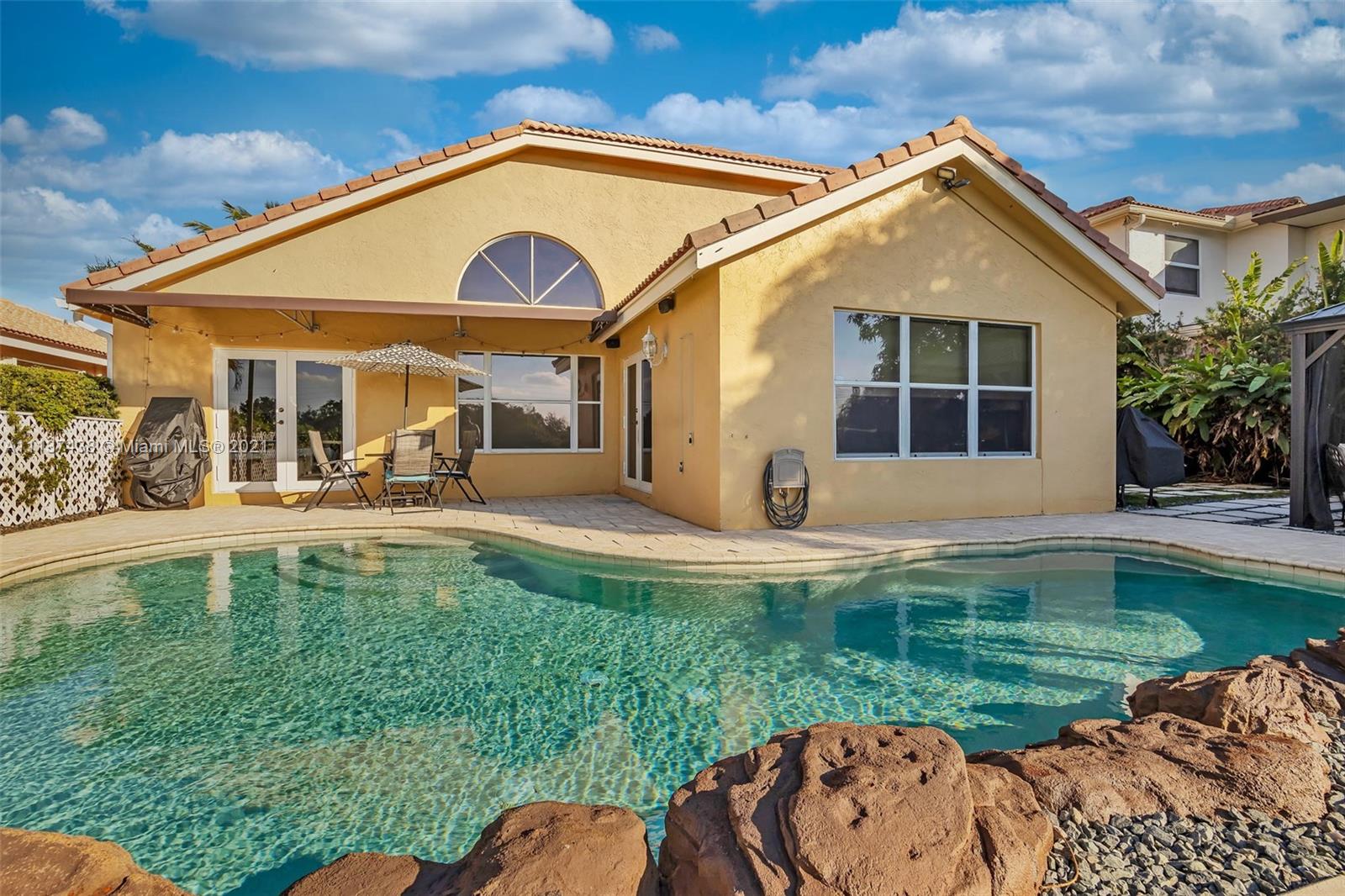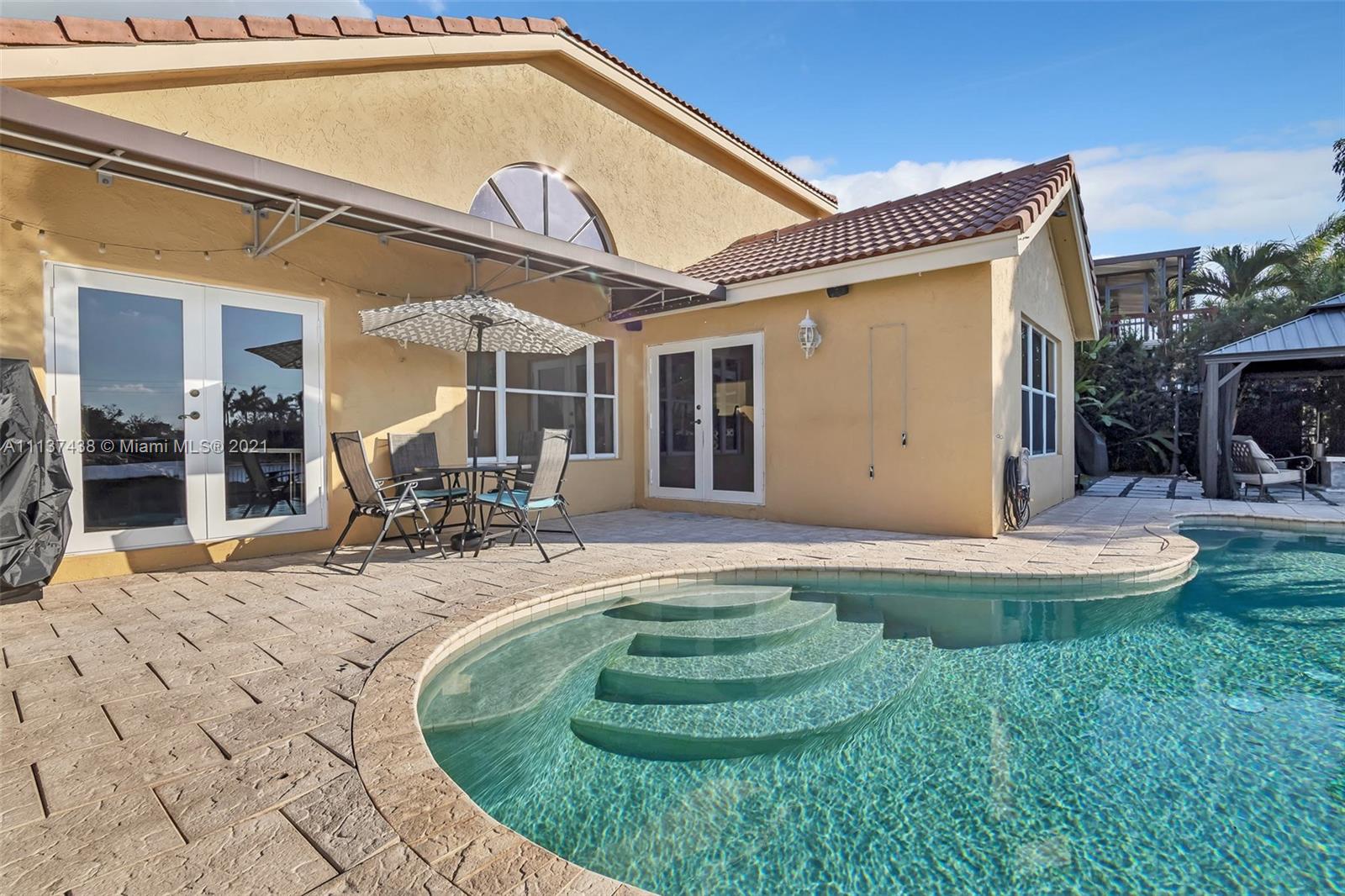 Exquisitely upgraded waterfront home for sale in exclusive Silver Lakes in West Miramar. Master bedroom on the first floor with direct access to the pool. The master bath boasts a modern design with luxury features including a jacuzzi. Two story foyer design with abundance of natural light with focus on the unobstructed lake view as soon as you enter the house including from the kitchen area. Modern appliances. Meticulously designed backyard area, excellent for outdoor entertainment, includes a free form pool with a waterfall and a gazebo, all in a relaxing atmosphere with fresh air coming from the lake. Circular driveway.