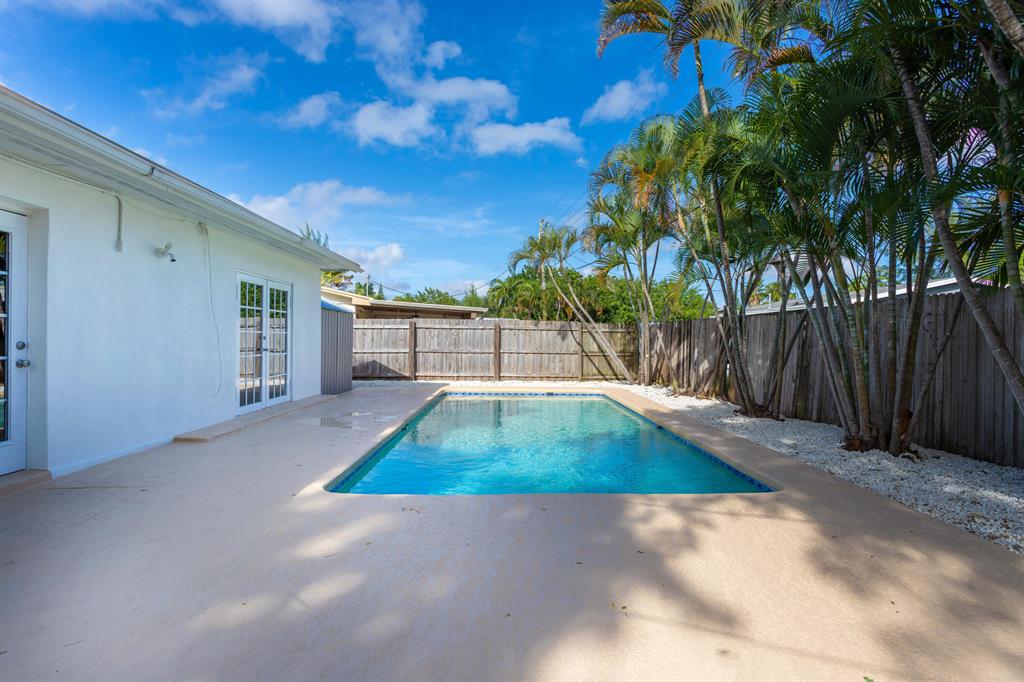 Welcome home to your newly renovated pool home with no HOA minutes from the beach. A tropical paradise with a stellar location close to shops, beach, and golf courses. 2 bedrooms with a flex room accenutute the open floor plan with upgrades galore and huge backyard. Structural updates include a new metal roof, new A/C, new water heater, newly paved driveway, new pool pump. Home features new designer laminate floors, new carpet in bedrooms, fresh paint, lush landscaping, and much more. The large backyard features an inground pool with child gate, shed and fenced-in for your privacy. Home won't last, schedule your home tour today!