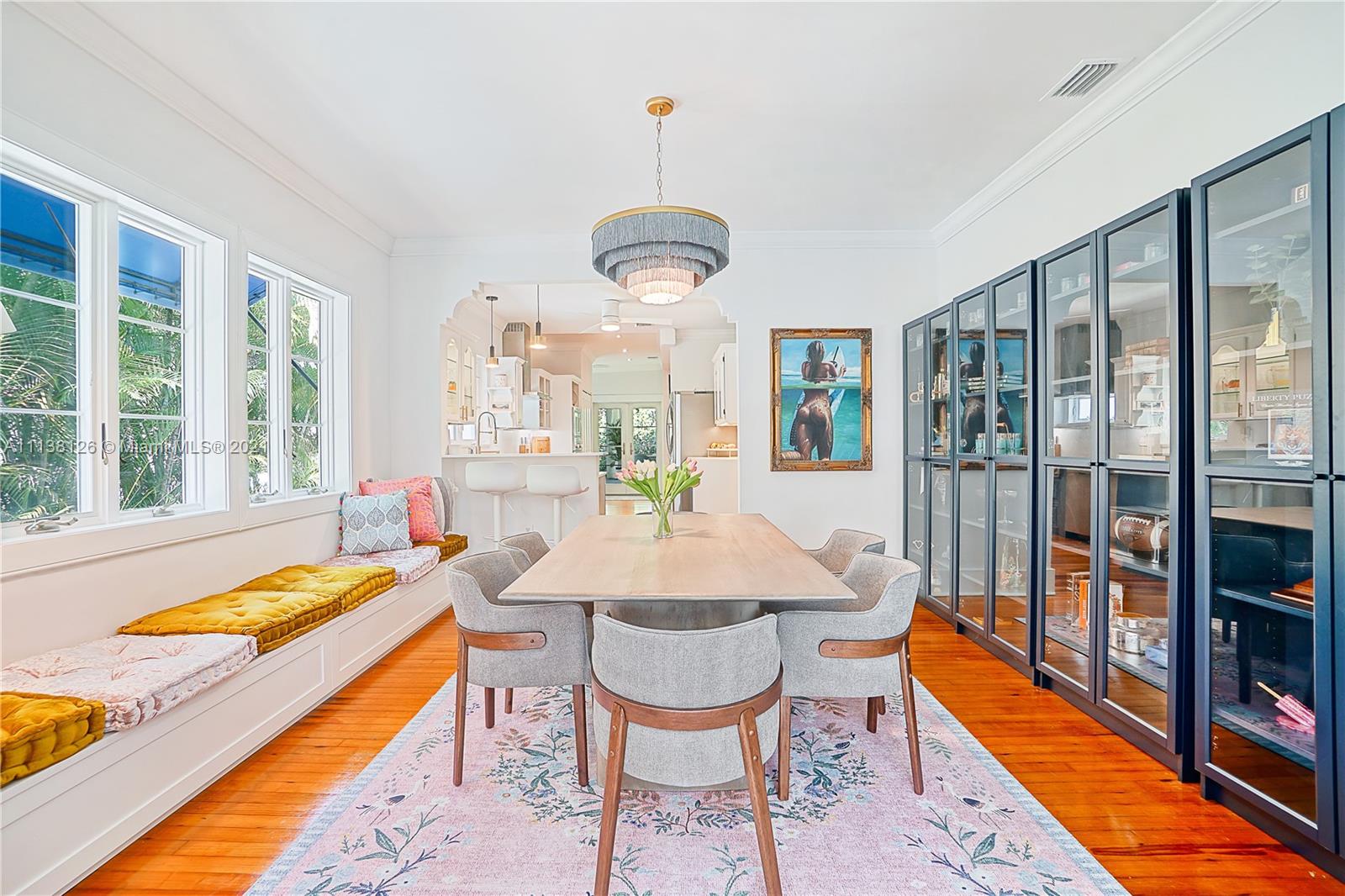 This historically designated 1920's classic Old Spanish is way bigger than it appears from the street! Charming to the max 2/2 with den, impact windows and doors, foyer porch entry, updated kitchen and baths, high ceilings, original Dade County Pine floors, fireplace, original ceiling picture moldings and hallway transom windows. Very special and super spacious screened great room across the back of the home - ideal place to gather for dinner parties or to watch sports on the flat screen TV. Master bedroom has walk-in closet, new bath and separate room that could function as a den, office, nursery or dressing room. Original architect was the famed H.G. Fink. Desirable location close to downtown Coral Gables-EZ walk to restaurants, book stores, cafes and shops. Open house 12/26/21, 12-3 PM.