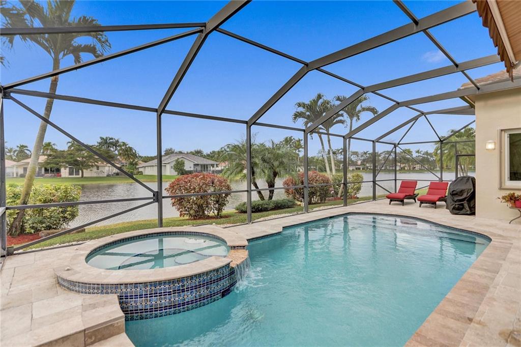 Immaculately maintained 4 Bedroom, 2.5 Bath lakefront pool home located in Camellia Island. This home has it all! Heated pool & Jacuzzi jacuzzi, newer roof, impact glass & doors with accordion shutters, recently remodeled kitchen and flooring throughout, updated bathrooms and California closets. Perfectly located on the lake. Enjoy beautiful sunsets from your patio! A+ schools and close proximity to Town Center.