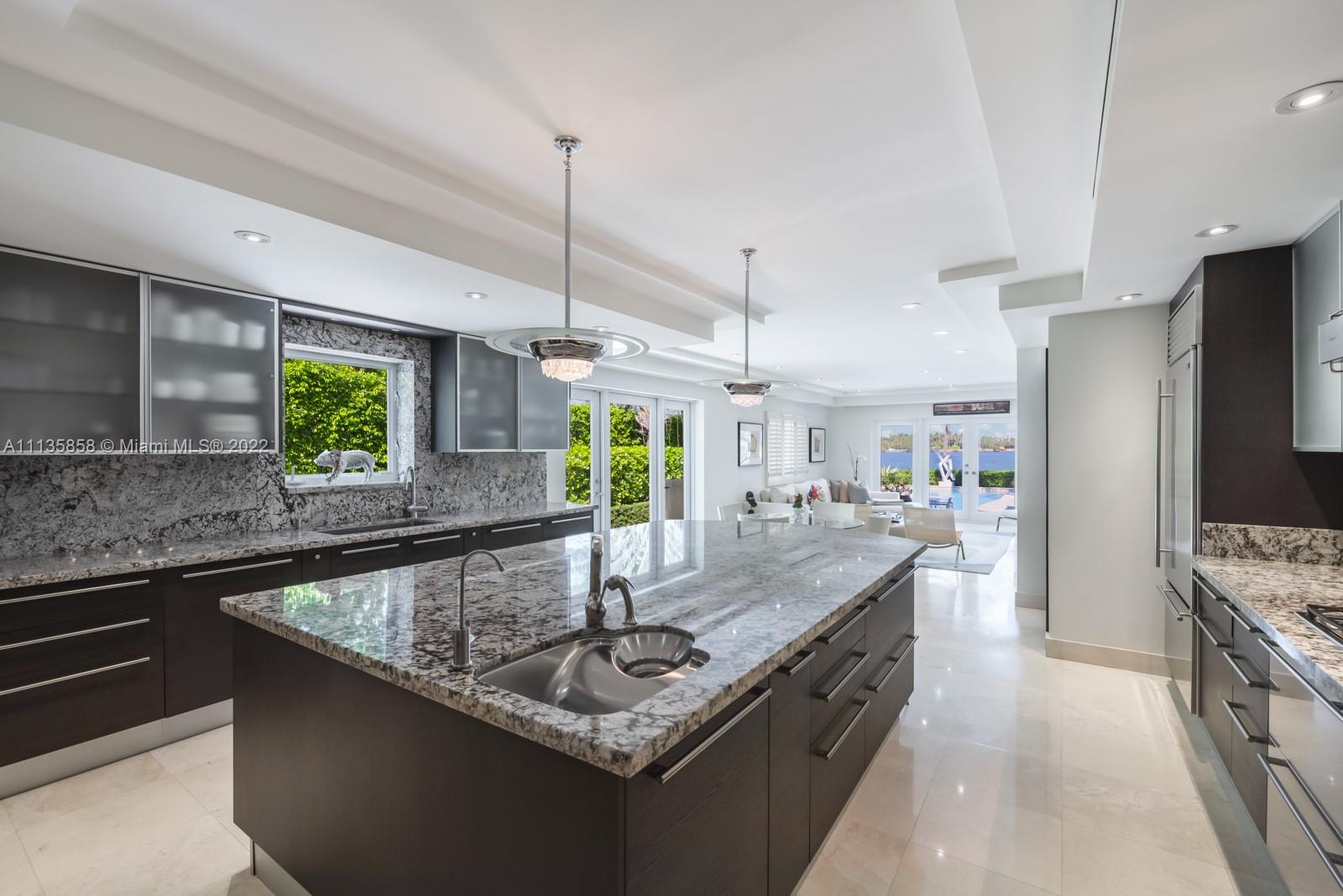 Contemporary one story estate, recently renovated to perfection, encompasses 6,096 SF of living space & sits on an expansive 31,890 SF lot. This truly magnificent home offers a grand entrance, stunning water views, an impressive 250 WF, a sprawling pool, beautiful lushly landscaped outdoors perfect for entertaining. Ample driveway & setback entry lead to stunning 5BD,5+1BA home w/gourmet kitchen w/ top of the line appliances, mesmerizing outdoor views from every room, natural light, expansive 12FT ceiling master bedroom & a 3 car garage. Live a life of sophistication and relaxation in this impeccable waterfront estate.