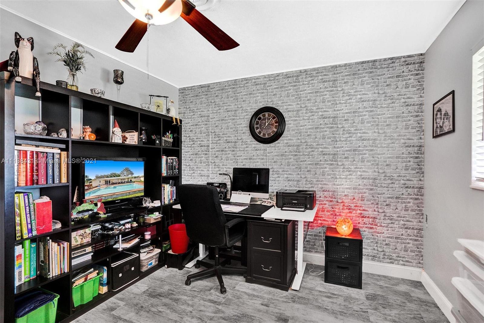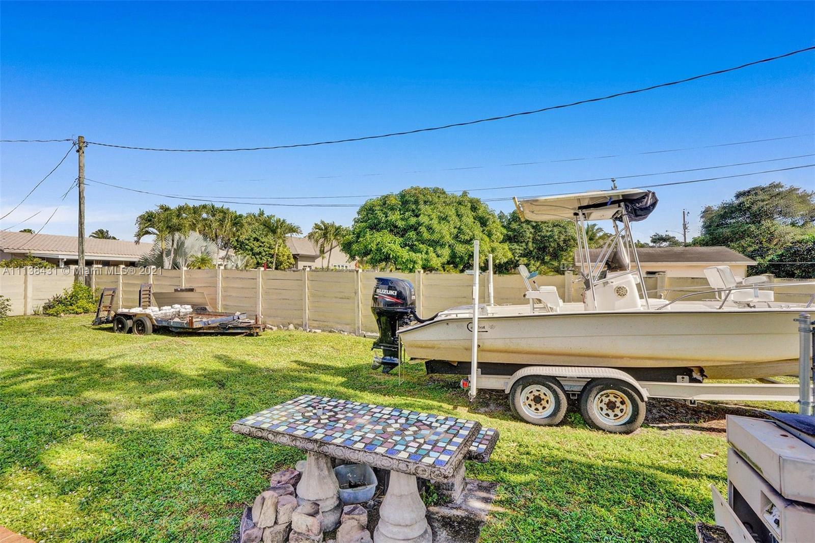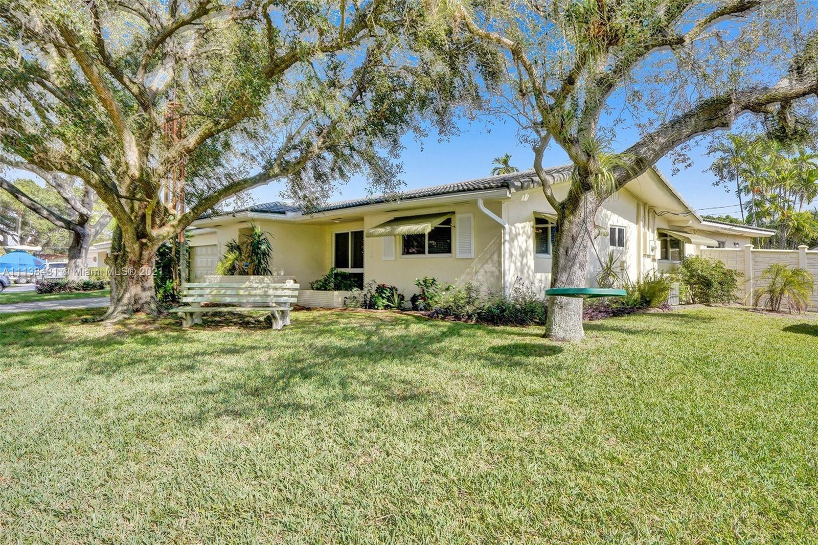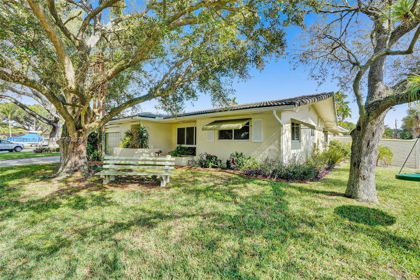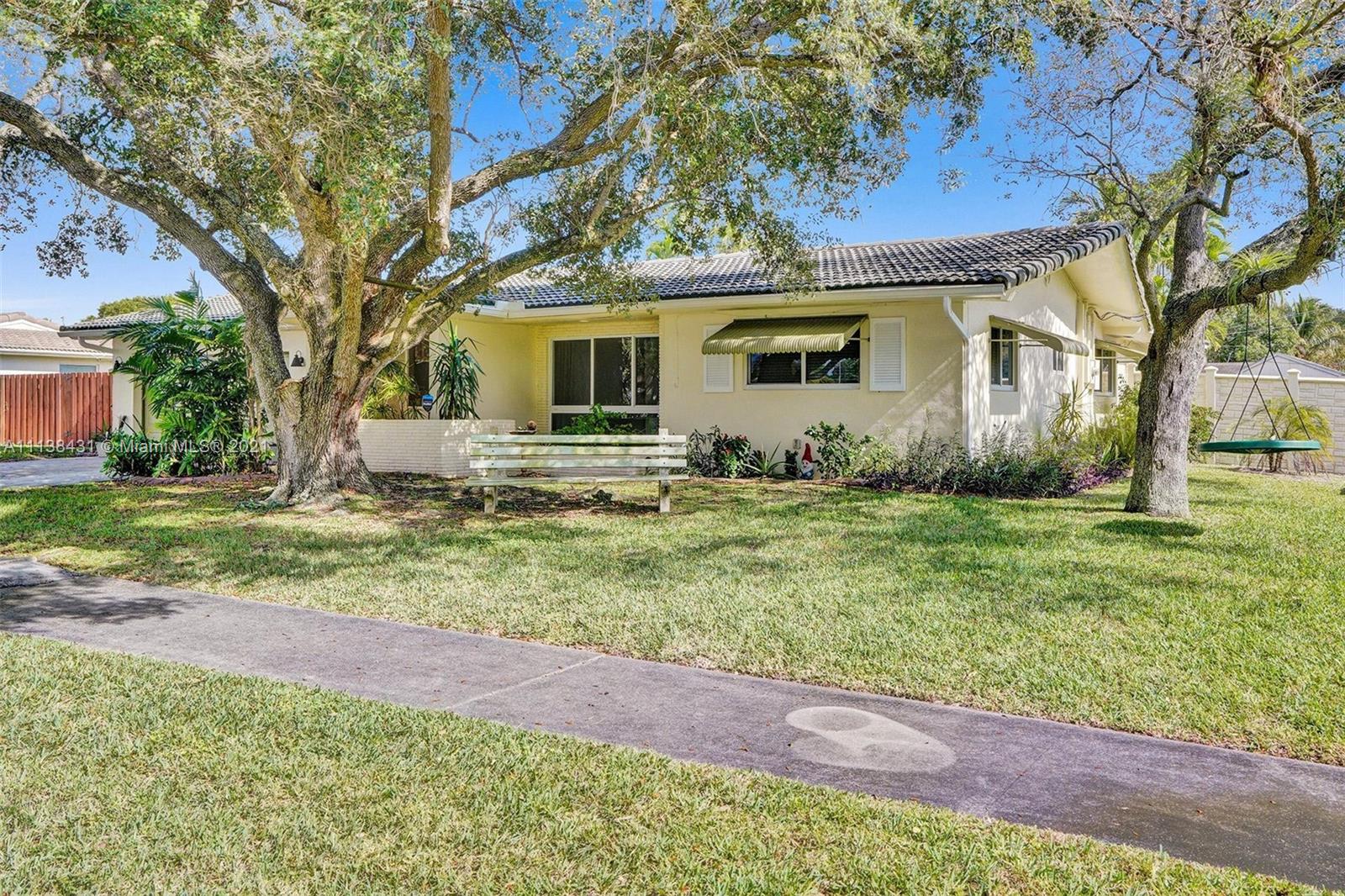 Welcome into the front living area; it attaches to the dining area with crown molding and tile flooring throughout. The unique kitchen is located around the corner, and comes with excellent upgrades including glass-front cabinets, stainless steel appliances, and exposed wood ceilings. The spacious rear living area has plenty of room to relax and unwind, and features access to the pool and patio. The primary bedroom offers tile flooring, excellent light, and a fabulous ensuite bathroom. The secondary bedrooms are ideal for accommodating guests and share a common hallway bath. Out back, float lazily in the impressive backyard pool, which is surrounded by palm trees and attached to the covered patio.