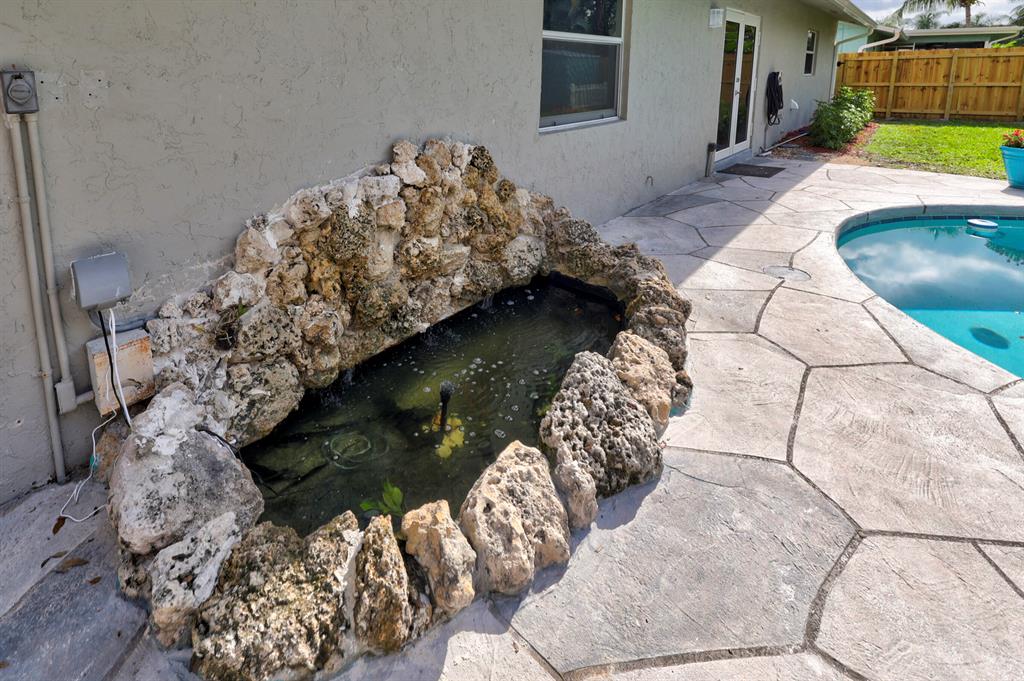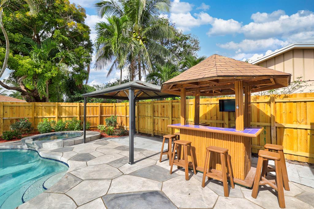 Absolutely gorgeous home in a quiet cul-de-sac in the highly sought after neighborhood of Palm Aire. Light and airy, fully upgraded 3/2 with impact windows and french doors and tropical resort style backyard. Large outdoor space has a fish pond, pool, hot tub, covered lounging area, tiki hut with ceiling fan, drink refrigerator and smart tv. Backyard has a mango & avocado tree, fountain and a shed. Inside is a decorator's dream. White shaker style kitchen cabinets, quartz countertops, a pantry, stainless steel appliances and a large dining room make entertaining a pleasure. The living room is also equipped with a wet bar with a wine fridge. Updated bathrooms and bedrooms, walk in closets with closet systems. Close to 95 and Turnpike. 5 miles to beach.