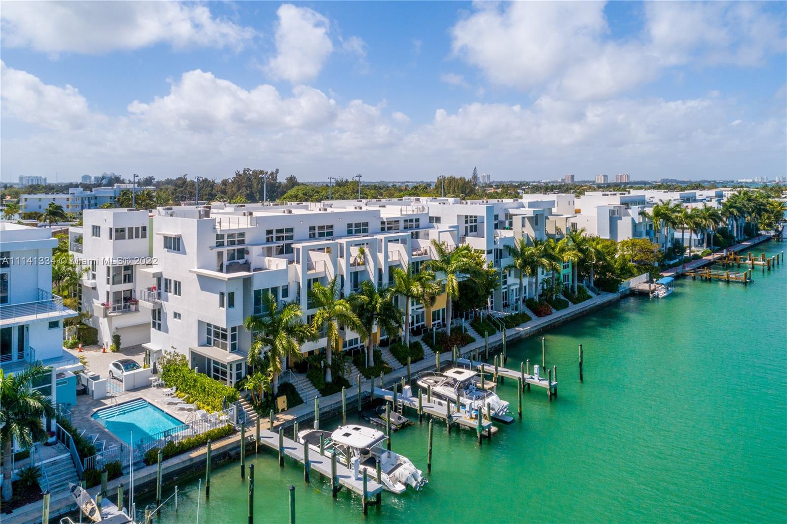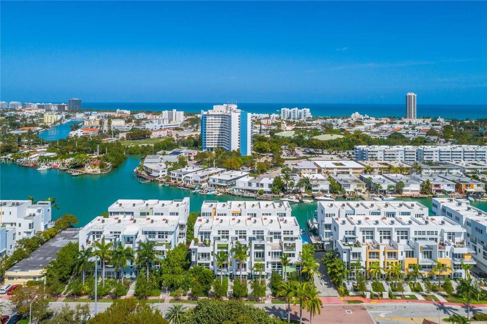 Built in 2016, Live the Miami dream in this beautiful 4 story waterfront townhouse. Located in Iris On The Bay featuring 3 bedrooms with private balconies, 3.5 bathrooms, private elevator, modern European kitchen, laundry room, rooftop terrace with plenty of space, and spacious 2 car garage. The specific location of this unit provides more open water views. Water access is only within a few steps from your door to the dock. The private elevator provides amazing convenience for all floors within the home. The property is located a few blocks from beach, across from normandy golf course, tennis courts, children's playground, soccer field, restaurants, and shopping.