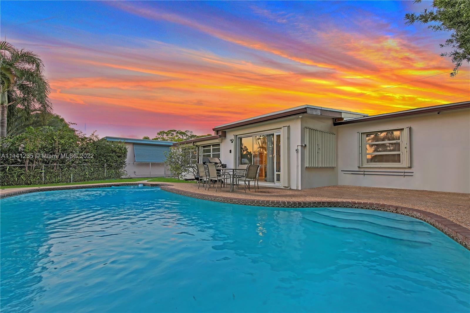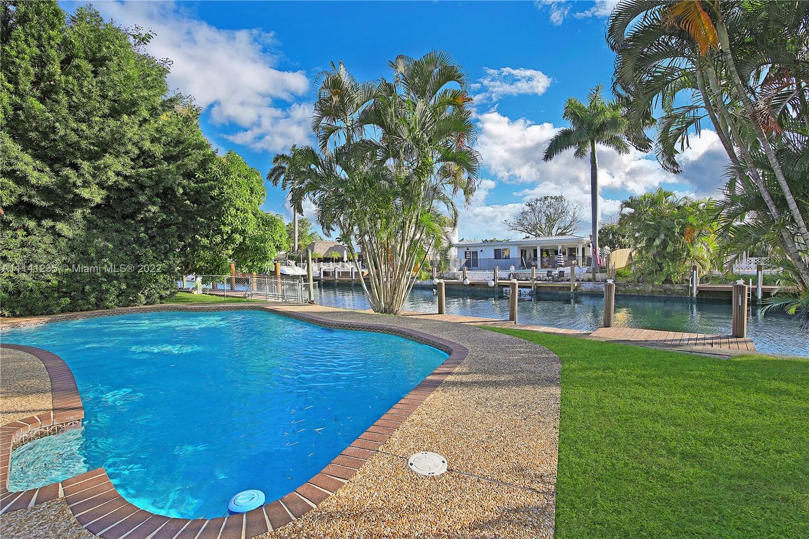 2 bedroom, 1 bathroom waterfront bungalow in rarely available Citrus Isles has everything you need to make it your own tropical oasis. 60' deep water ocean access, NO FIXED BRIDGES, private 40' boat dock and swimming pool! Open kitchen with granite countertops and built-in wine rack, NEW ROOF replaced August 2021, central AC, natural gas, impact and/or accordion hurricane shutters on all windows and doors, tile floors, one car garage with laundry area, circular driveway allows for plenty of parking and room for an RV. Sunroom offers a wealth of natural lighting and captivating views of pool and waterway. Highly desirable location minutes from highways, downtown, beaches, restaurants, shopping, and airport. Flood insurance is NOT required! Will not last! Send your highest and best offer!