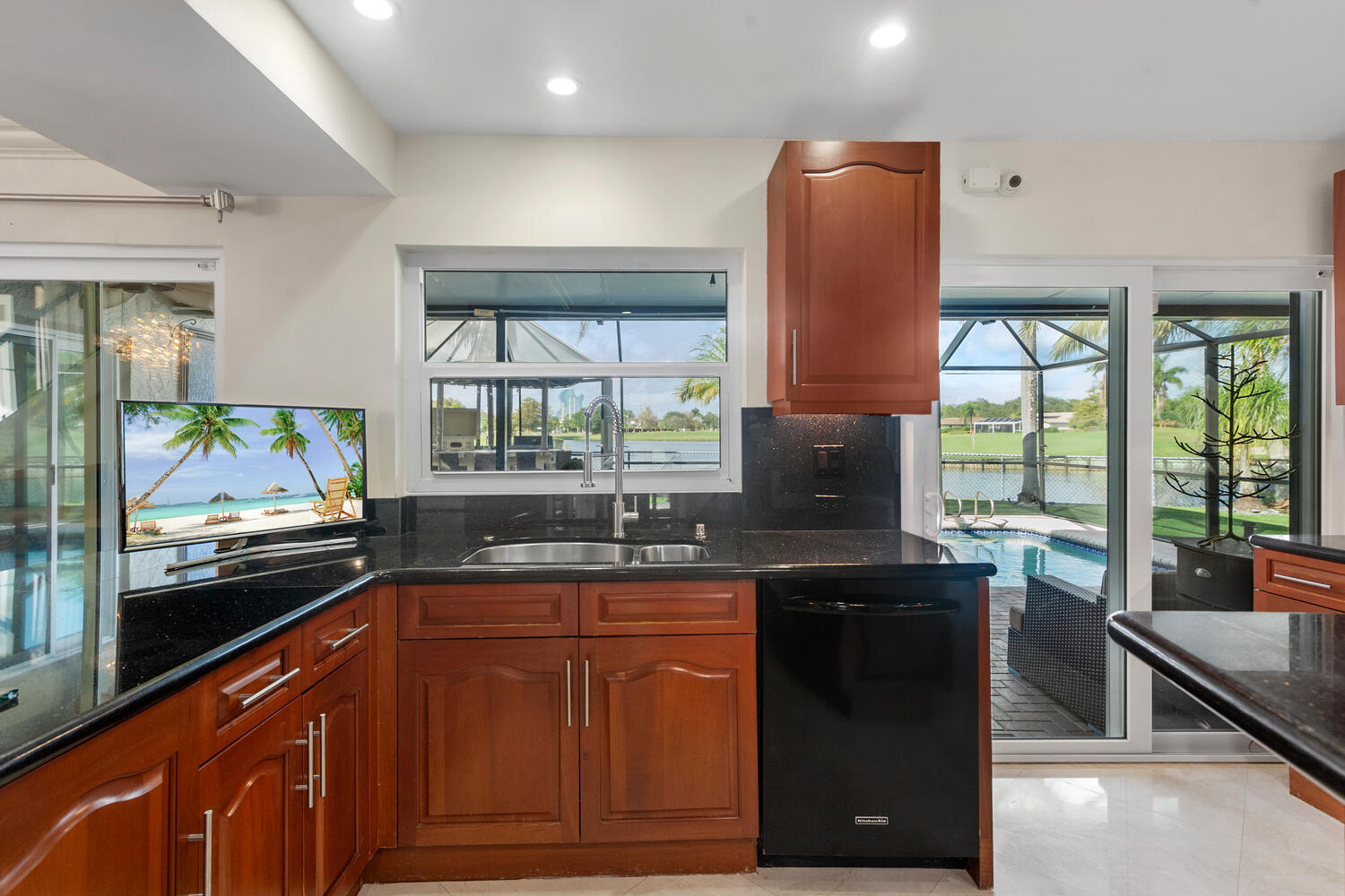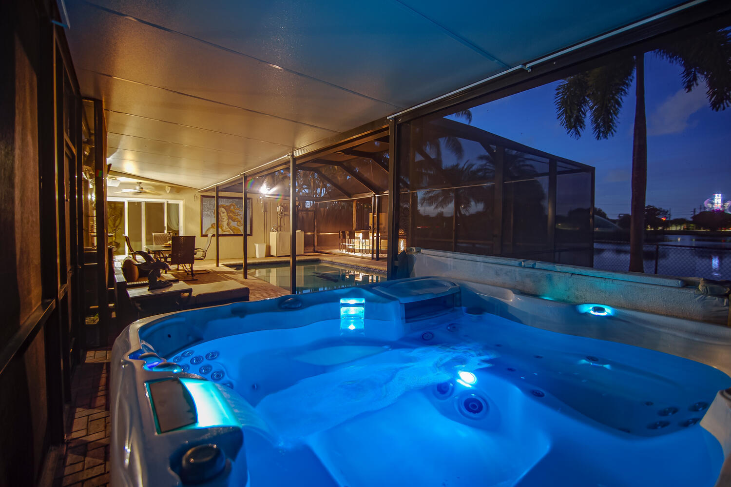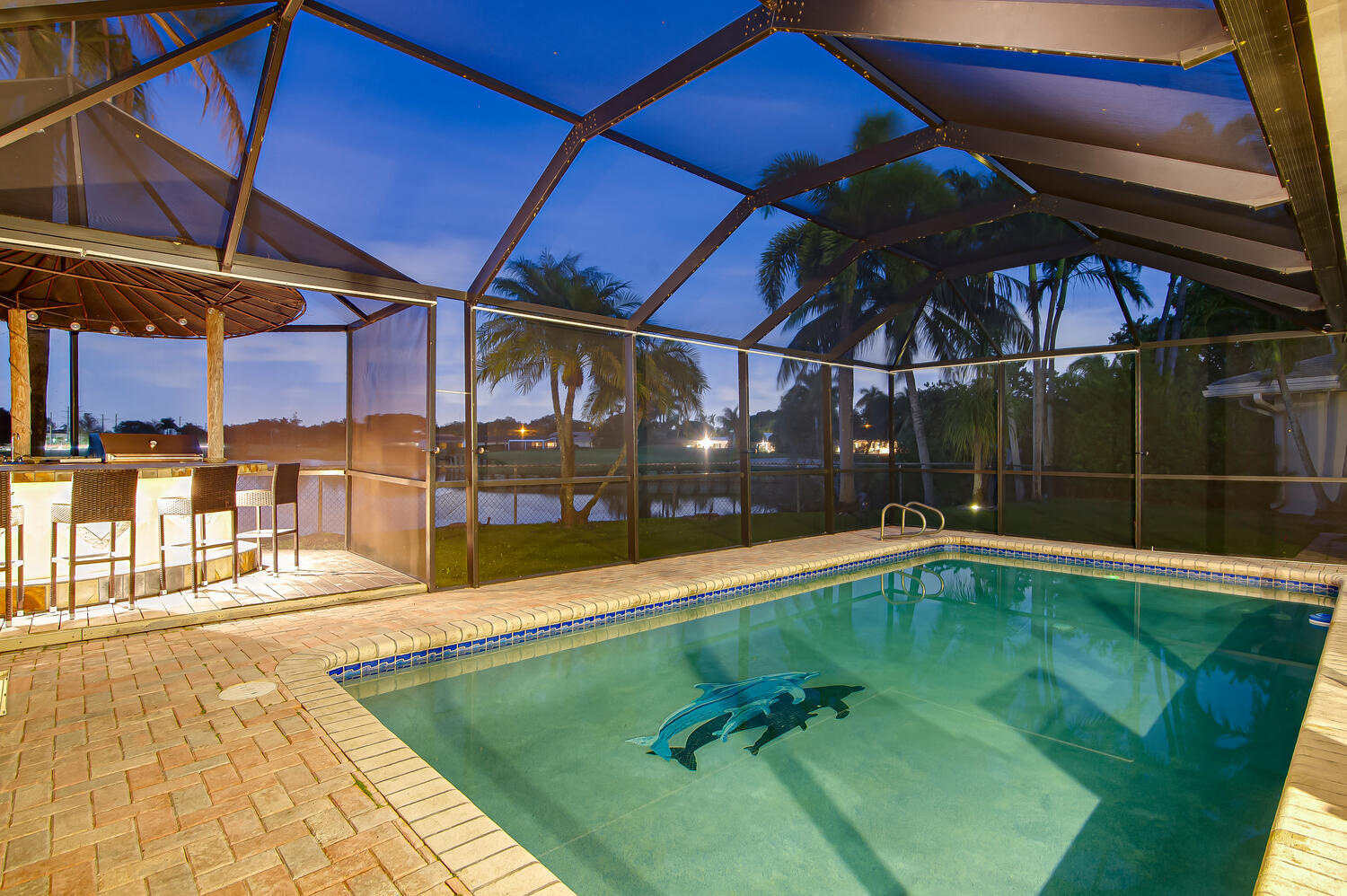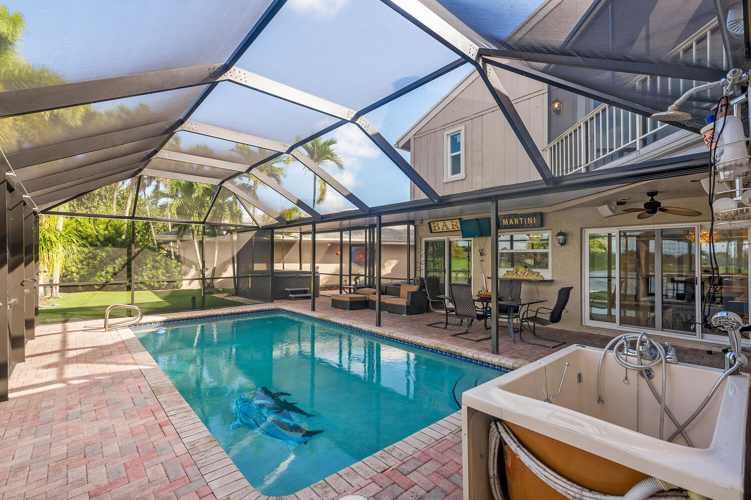 Do not miss this opportunity! Stunning 3 bedroom, 2.5 bathroom home with the most amazing golf course and wide lake views, heated pool and therapeutic spa, plus a den/office. This home has it all! Features include marble flooring throughout, updated kitchen, coffered ceilings, fireplace, impact windows and doors, solar panels for electric, solar water heater, new pool heater, newer roof (2018), screened enclosure with summer kitchen, turf grass, custom built-ins in garage, and much more. This property over $200k in upgrades and the best lot in the entire community.