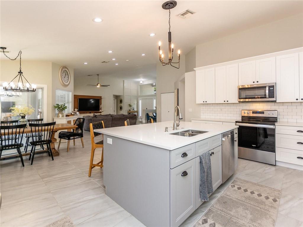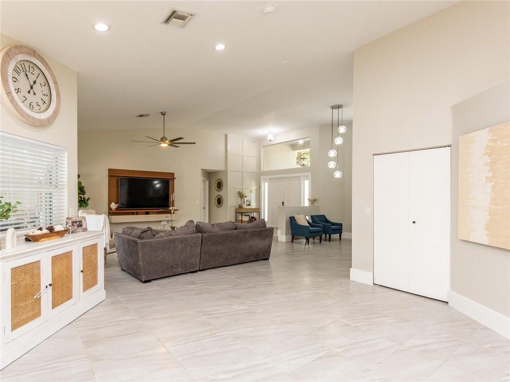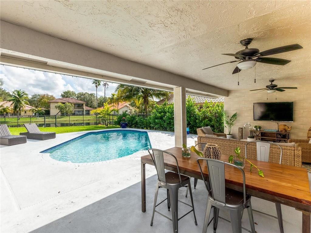 'STUNNING' CORNER WATERFRONT HOME FEATURING Wonderful Open Concept with custom porcelain flooring thru out, volume ceilings with extensive lighting, designer built ins,custom stainless and shaker kitchen with extended QUARTZ island and countertops, subway backsplash, extended covered patio overlooking private fenced garden and tranquil lake, custom lighting fixtures thru out, new sprinkler system, oversized backyard great for the children and entertaining, plantation shutters, alarm system, (2007) roof and A/C (3Yr) .. A delight to show!! SELLER REQUESTS..5 day inspection period, proof of funds to accompany offer, NO APPRAISAL CONTINGENCY