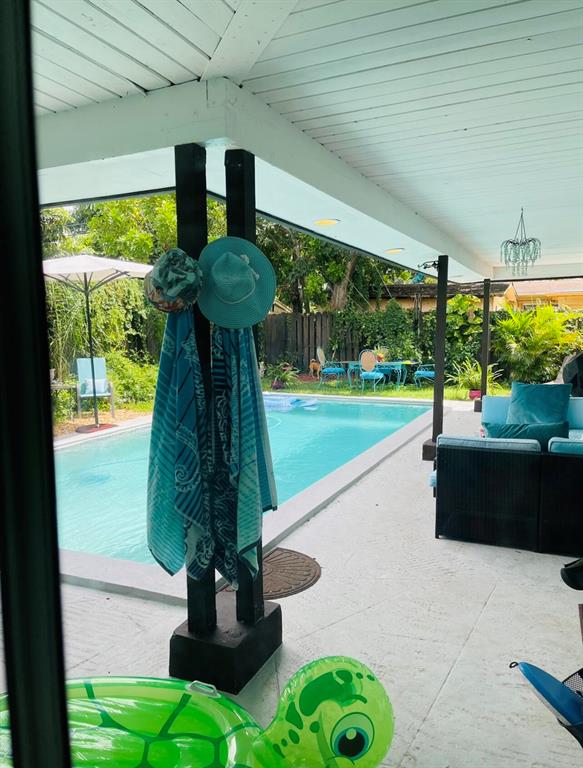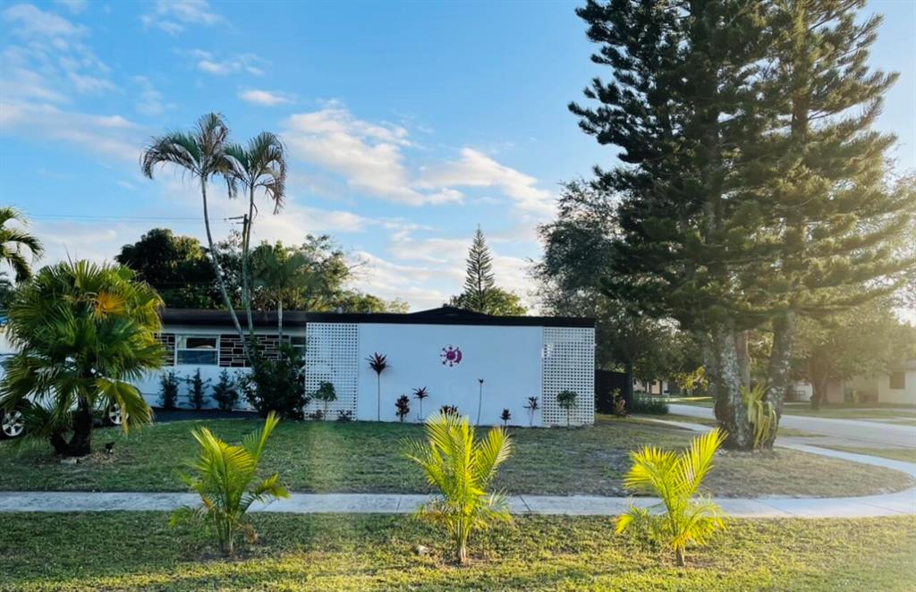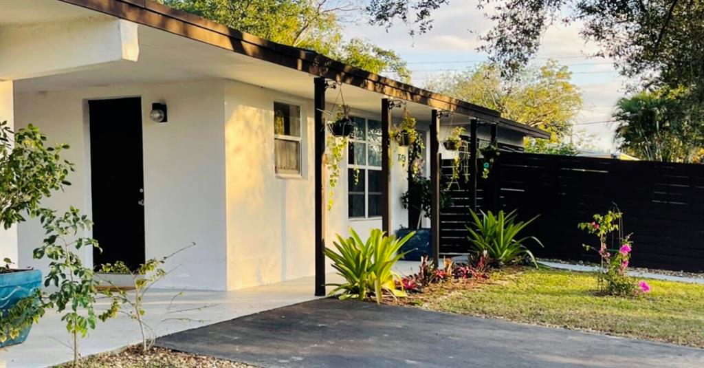 Luxurious Pool House on Covered Drivethrough Corner Lot featuring Open Kitchen / Dining / Living Split Bedroom Plan with Large Quartz Countertop, Deep Farm Sink, Elegant Recessed Lighting inside and poolside, Beautiful Bathrooms, 3 sets of French Doors showcasing Stunning Poolside Views from Both Bedrooms, Livingroom, Diningroom and Master Bath with an Amazing Flow from South Wing to East Wing. Self-cleaning pool vacuum, ping pong area, views of towering oaks, palm trees, bougainvillea, hibiscus, jasmine, crotons, bromeliads and more!!! Just off University and 33rd, close to Publix, Target, Restaurants. Ideal for modern living. Nightly laser stream poolside from Hard Rock Billion Dollar Guitar Hotel