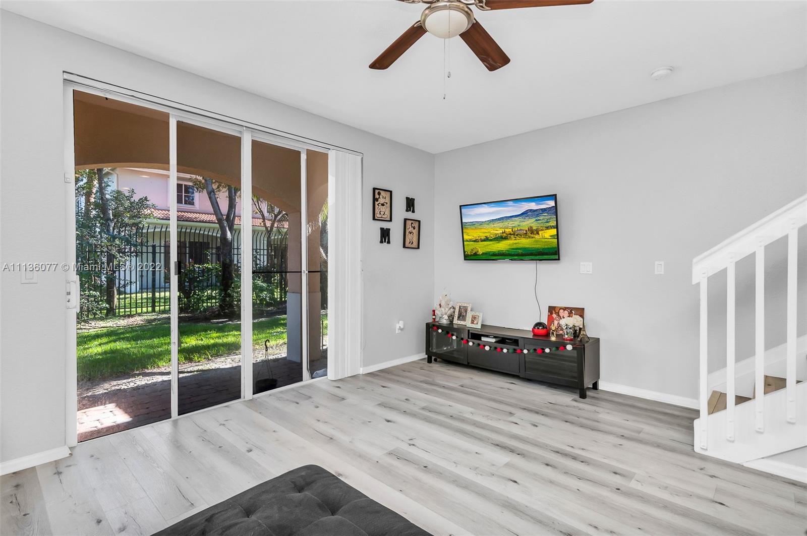 Beautiful 3/2.5 townhouse with first floor entry in gated Murano at Hampton Park. This home features LVT throughout, large master bedroom with walk in/built-in closet and double door entry, high ceilings, upgraded kitchen with newer appliances, newer A/C (2020) , upgraded guest bathroom, paved patio with exterior storage room, panel shutters. Neighborhood features pool, lakes with walking path, children playground, exercise room and tennis court.