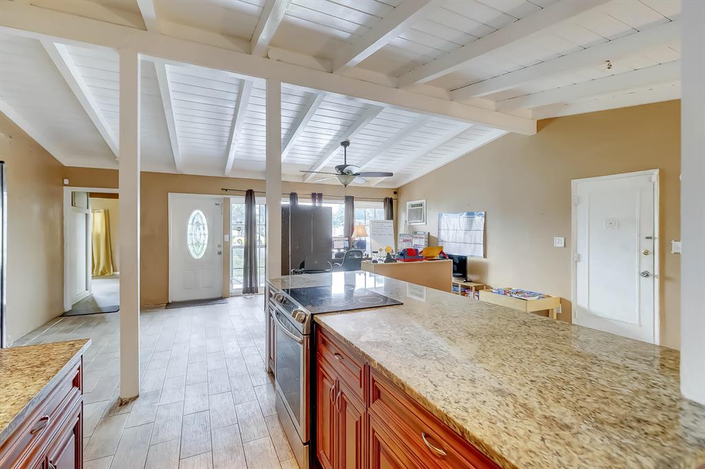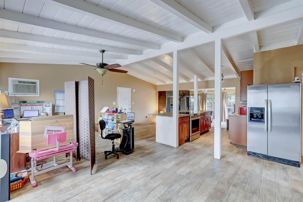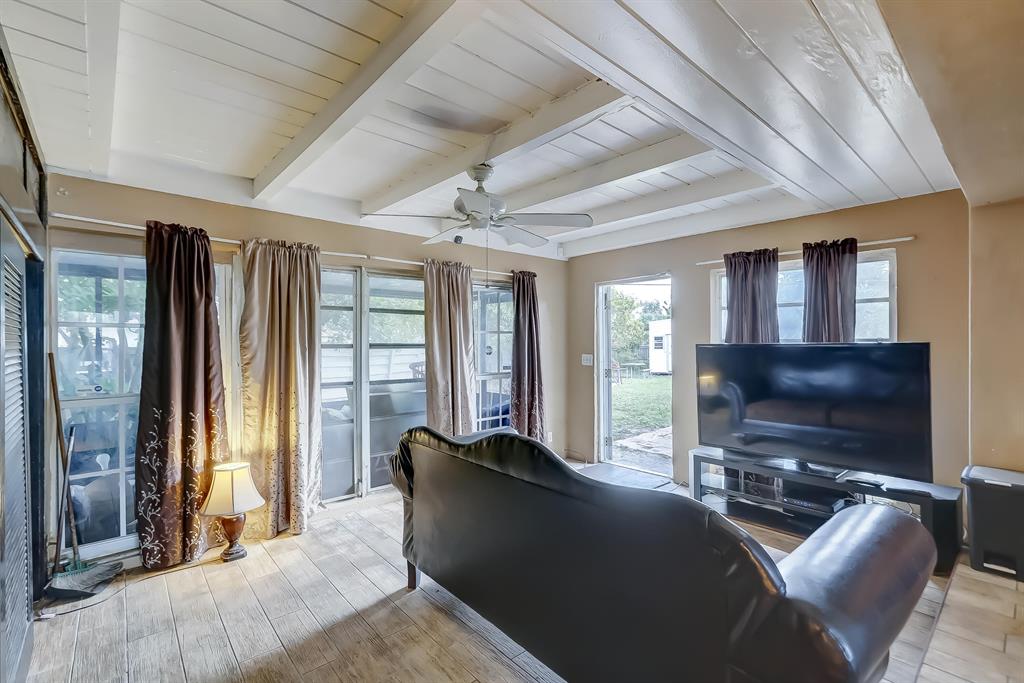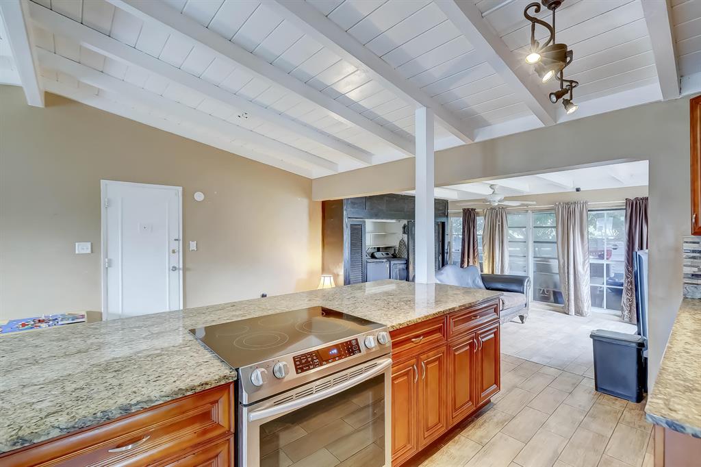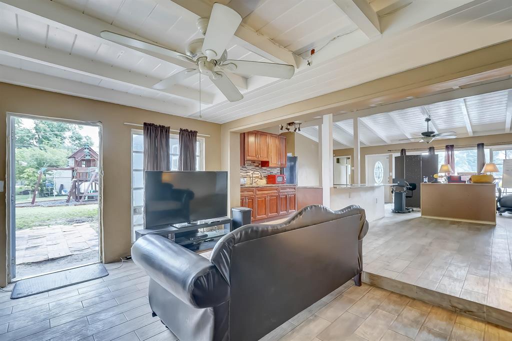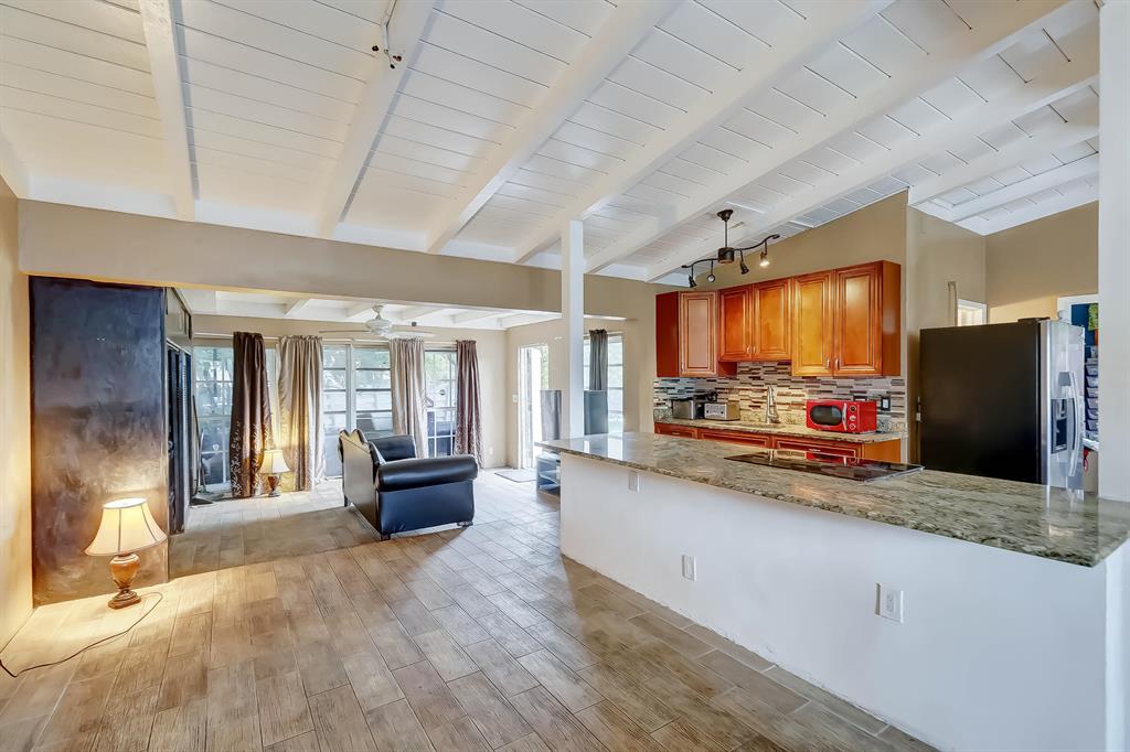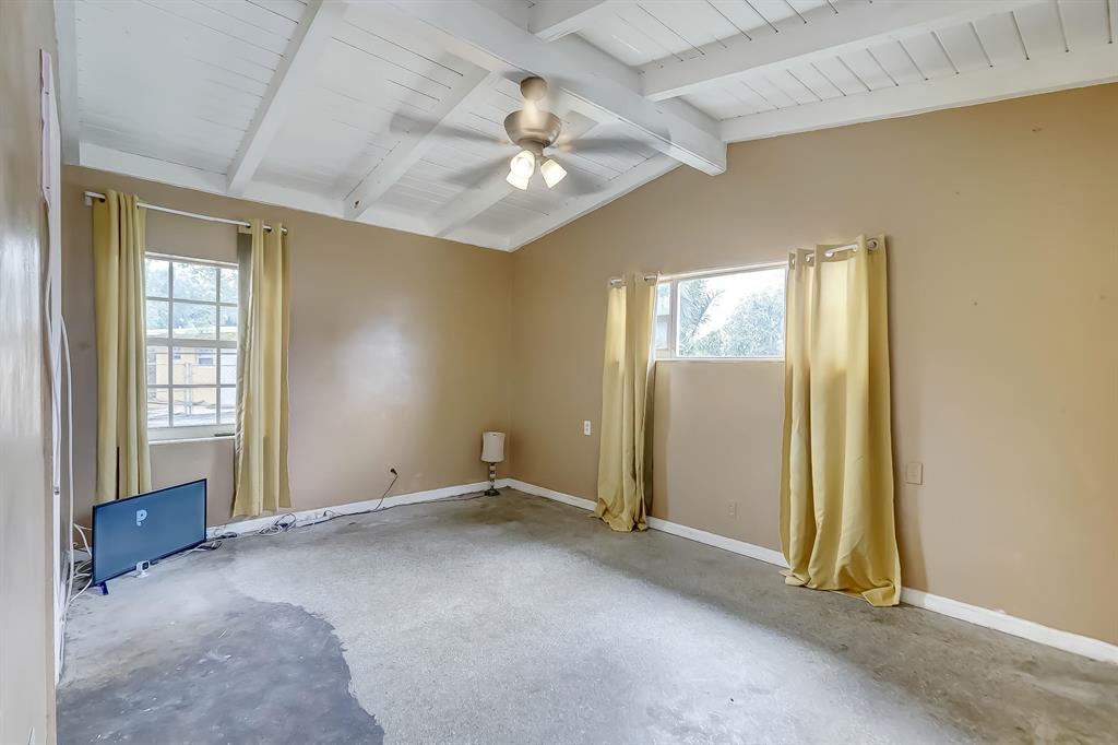 Open floor plan 3/2 plus Florida Room and screened in patio on an oversized cul-de-sac lot. Kitchen and bath updated. New wood looking tile flooring in main area (bedrooms terrazzo). Owner has more tile to do bedroom flooring. Beautiful vaulted wood beam ceilings. Needs a new roof so financing will be difficult for insurance purposes therefore cash only. Plenty of room for a pool, lots of driveway parking.