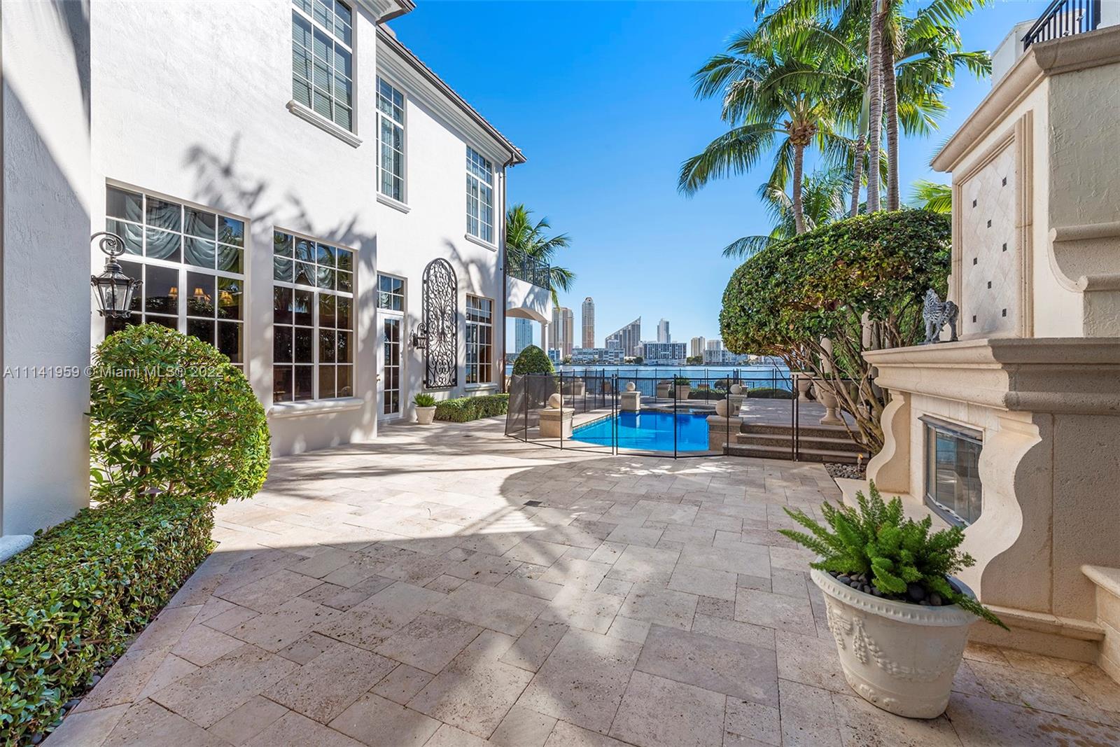 First time on the market, this beautiful waterfront home in Island Estates is in the best location with incredible views of the open bay and Sunny Isles Skyline. Over 5426 SF of living space with high ceilings, formal dining and living rooms with open kitchen to large family room and gorgeous outdoor entertaining area featuring extended deck, pool and jacuzzi and summer kitchen and fireplace. Residence has beautiful designer details throughout, marble floors and massive master bedrooms closets, with en-suite bedrooms on the second floor. Home has a two car garage, interior elevator and a boat slip in the private Prive marina.