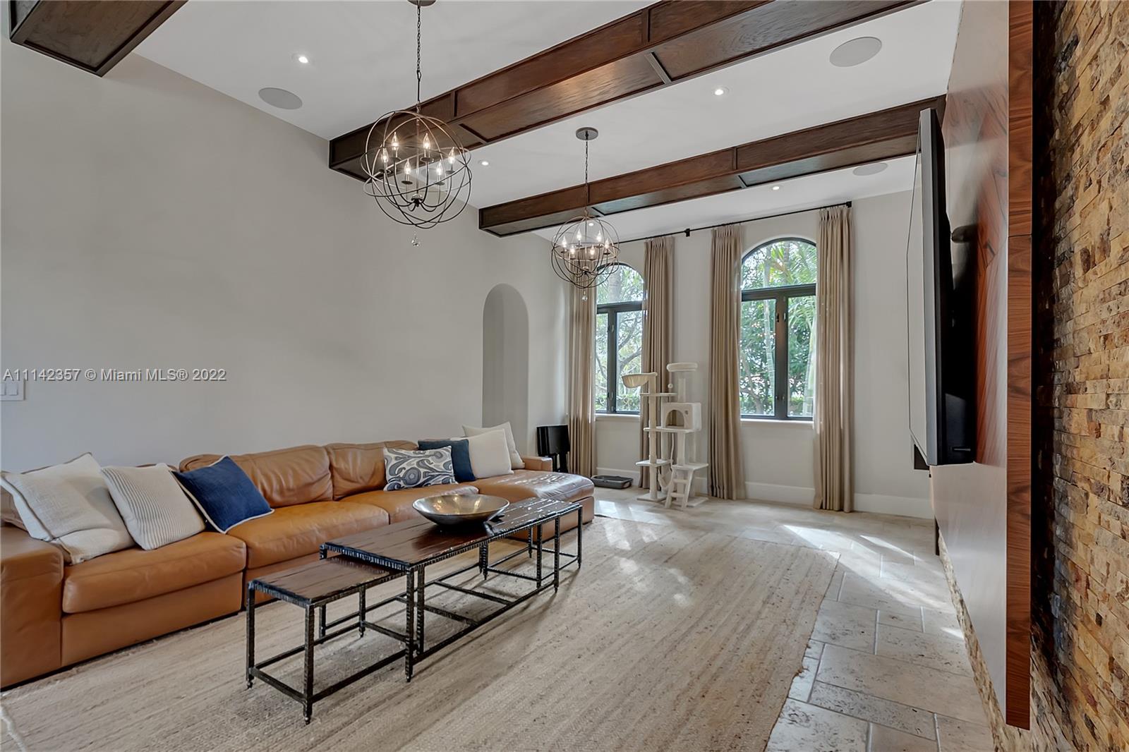 THIS GORGEOUS MEDITERRANEAN VILLA FULL OF DESIGNER FINISHES IS A MUST SEE! THIS TROPICAL PARADISE BOASTS 6 BEDROOMS AND 8.5 BATHROOMS AND COMES EQUIPPED WITH A STATE OF THE ART KITCHEN INCLUDING VIKING, SUB ZERO AND MIELE APPLIANCES. HIGH CEILINGS ARE THROUGHOUT HOME AND DINING ROOM FEATURES A TEMPERATURE CONTROLLED WINE CELLAR. ALSO FEATURES UPSTAIRS AND DOWNSTAIRS LAUNDRY ROOMS, A DETACHED GUEST ROOM WITH A FULL BATHROOM. HOME IS ELEVATOR READY.