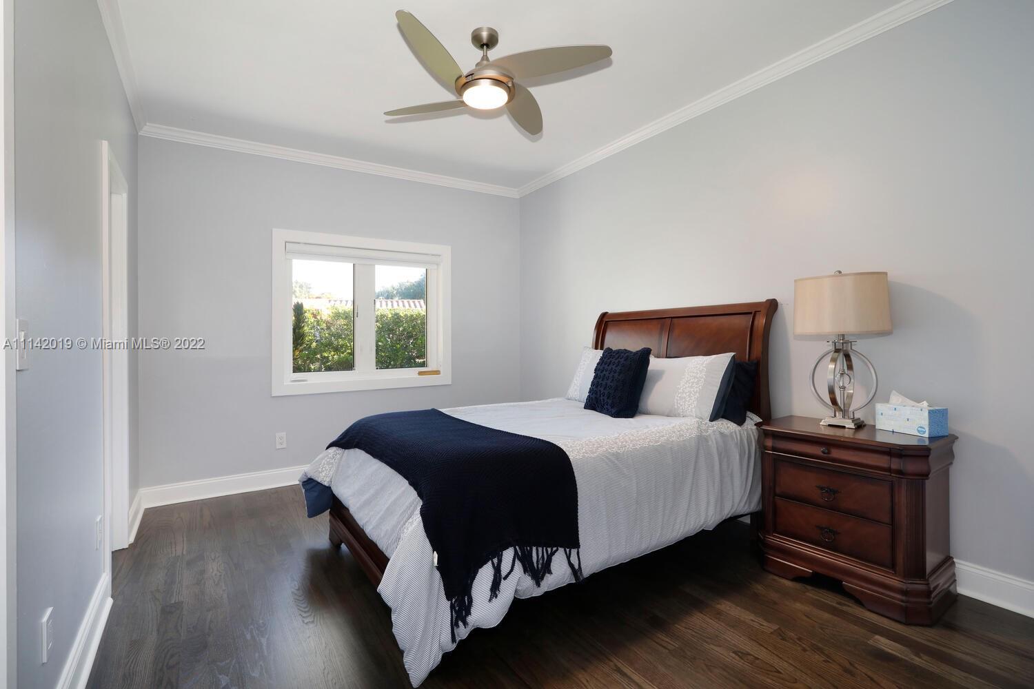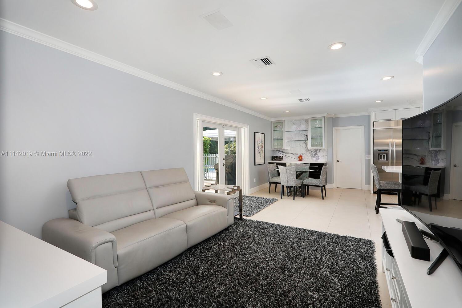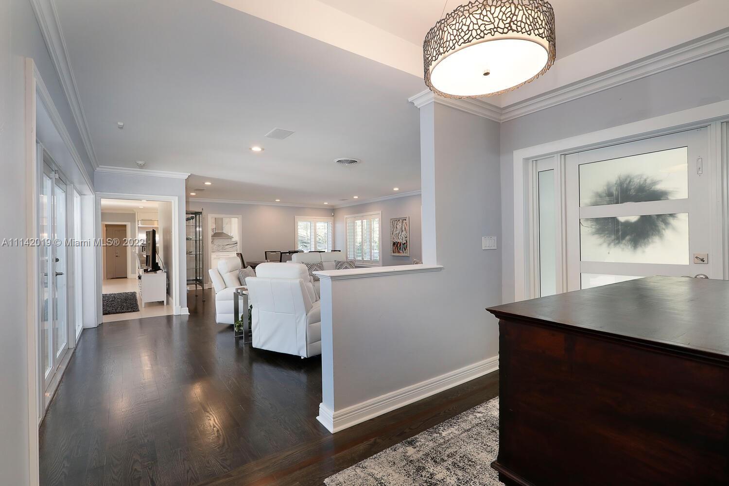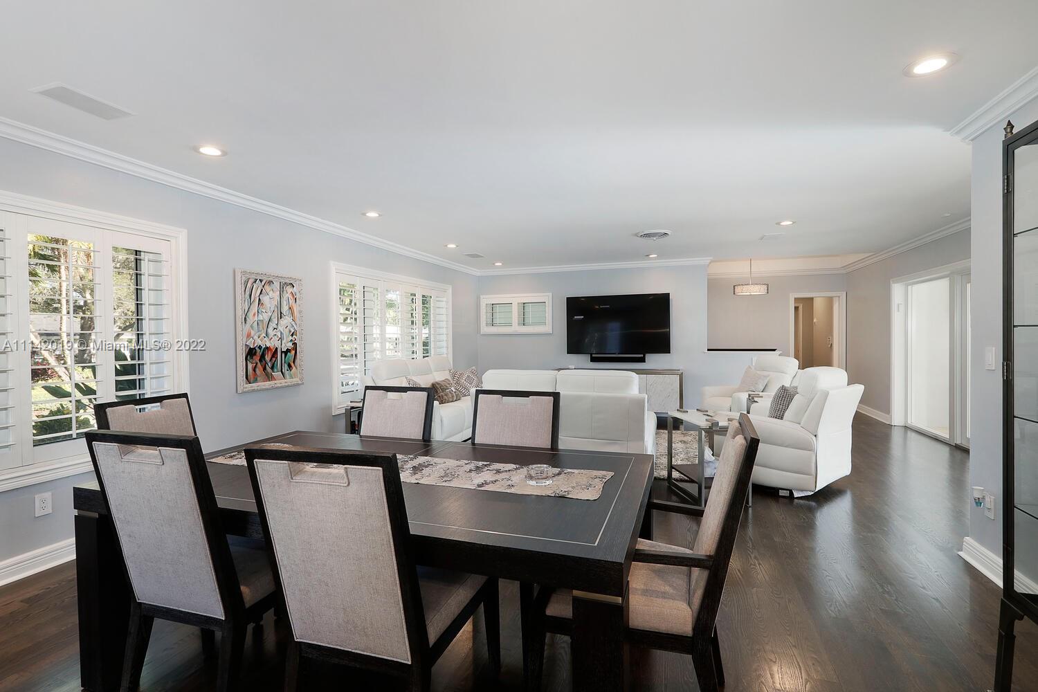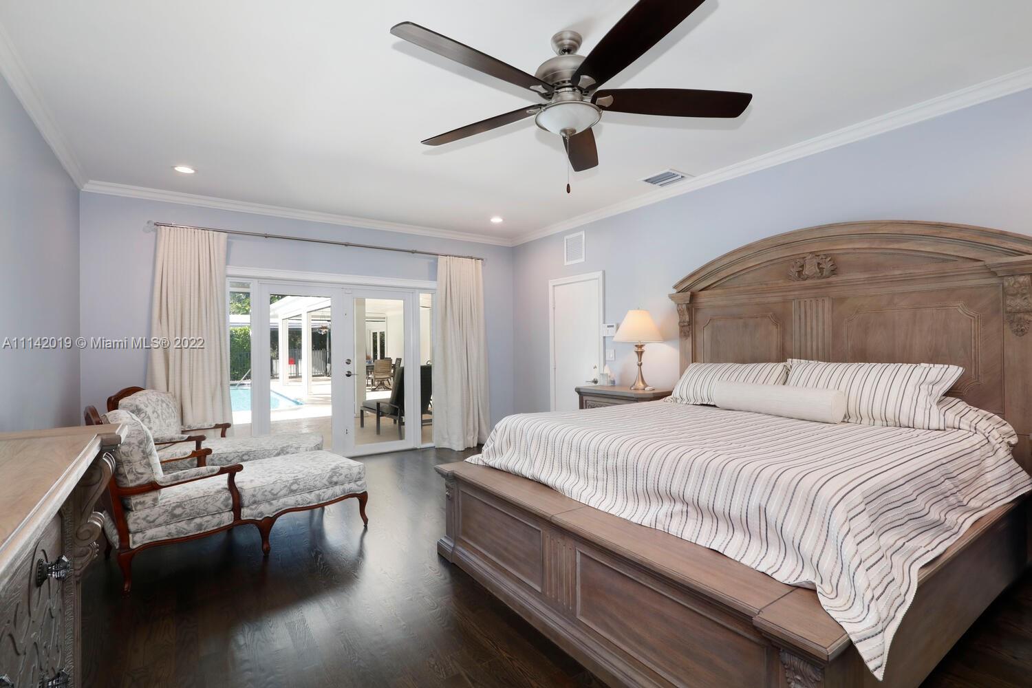 Exclusive Pine Bay Estates, rarely a home listed for sale in this small community in South Coral Gables. This mid-century ranch, sitting on a 3/4 acre corner lot has been meticulously updated to today's standard of living. 4 bedroom and 3 baths with complete hurricane protection including newly installed high impact glass windows and doors. Total Sonos sound package provides entertainment inside and out. The newly resurfaced salt water swimming pool has a Diamond Bright interior. Set way back off the street, the newly done circular driveway was paved with brick pavers. The huge backyard can be enjoyed through walls of glass or by using the large entertaining screened in porch next to the pool. The screen panels can be raising or lowered electronically with a remote. Enjoy the privacy!