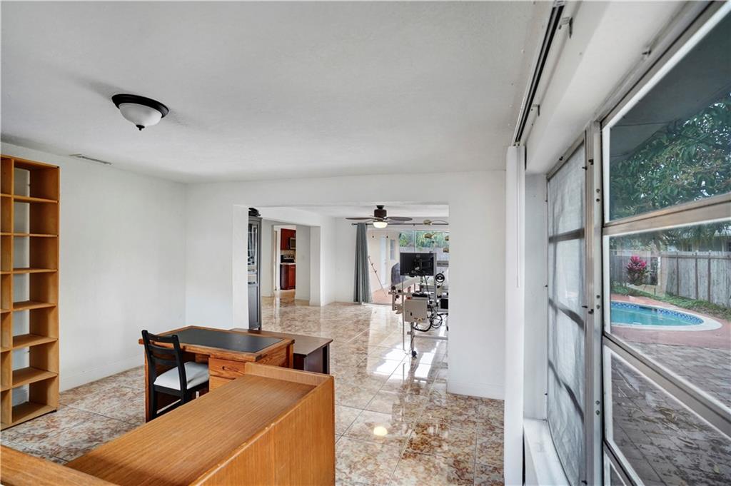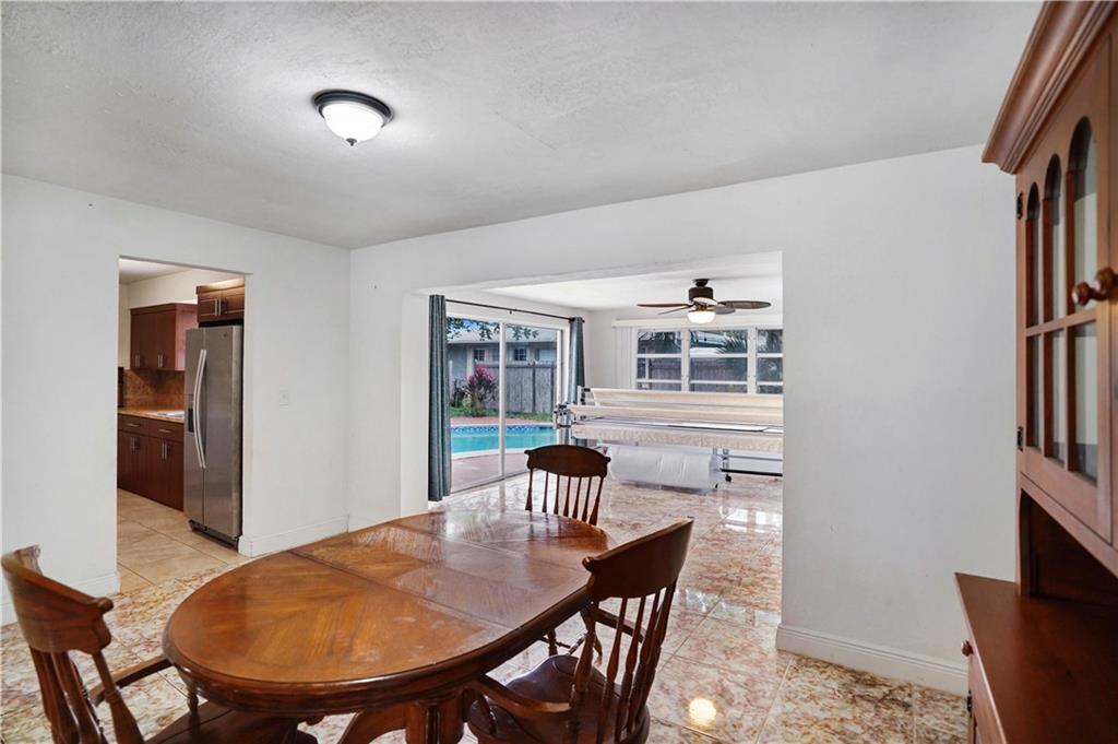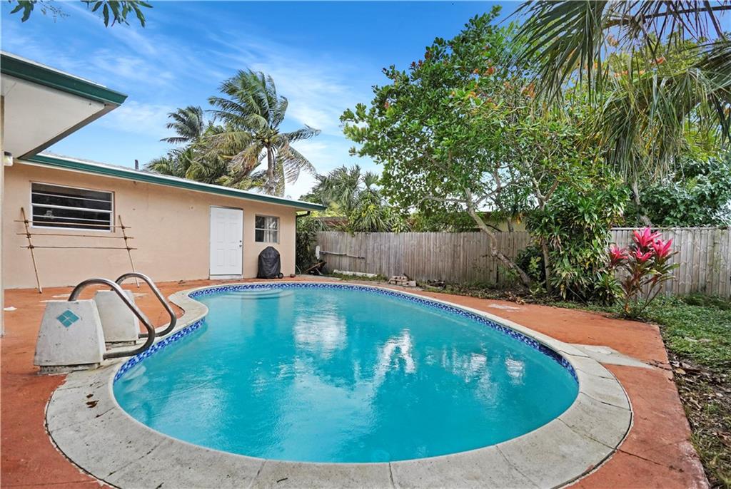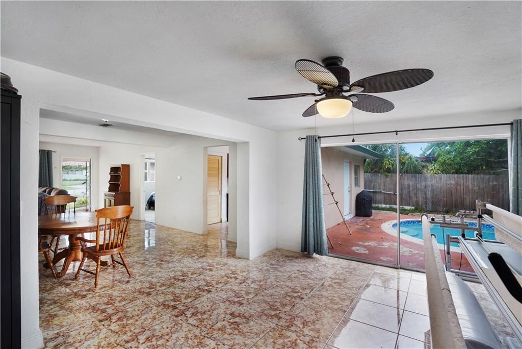 Large Melrose Park 3/2 pool home with a huge family room, 1 car garage and a lot of recent updates. Newer SS appliances. New roof & gutters in 2020 along with a new master bathroom. Pool resurfaced, new tiles, rebuilt pump and paver patio in 2020. House was just tented December 2021, AC only 4-5 yrs old. Lots of fruit trees, 2 types of mango, chahew, soursop, strawberry tree & Jamacian apple tree. Washer & dryer do NOT convey.