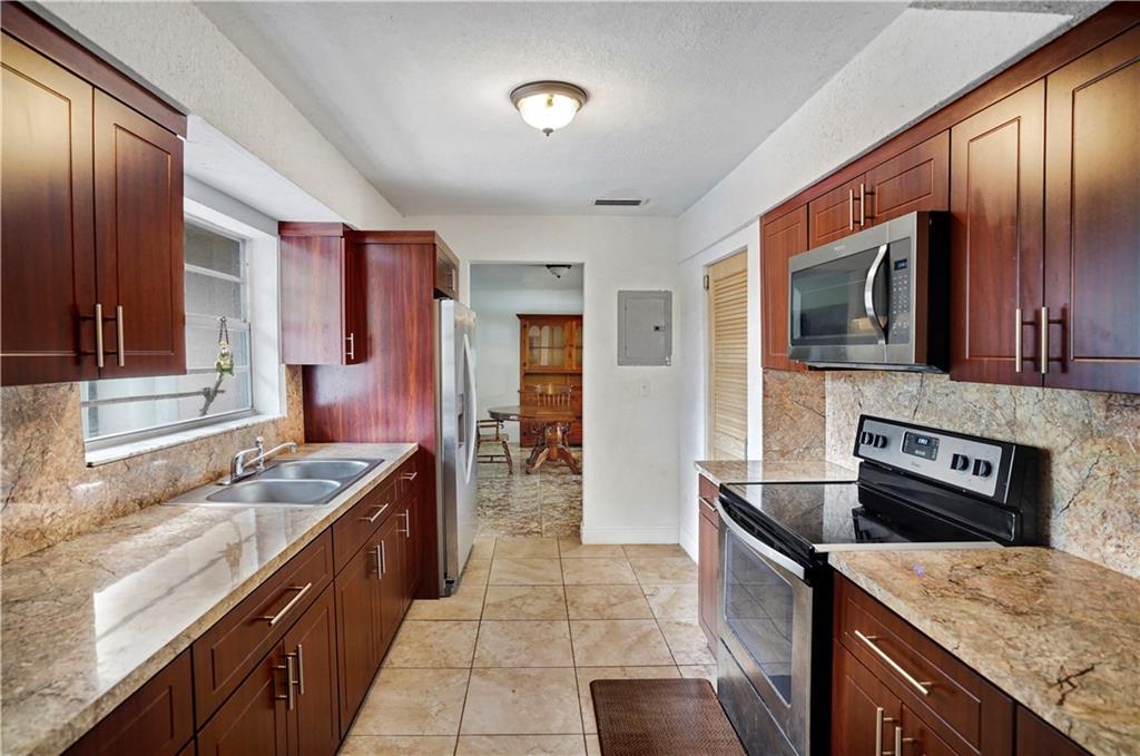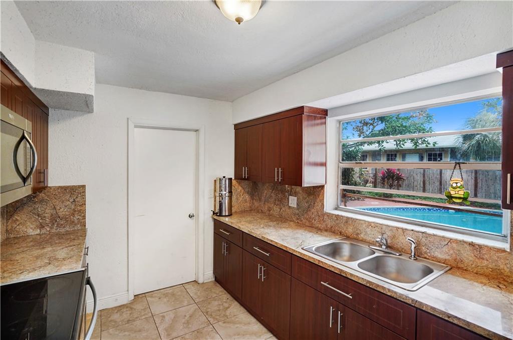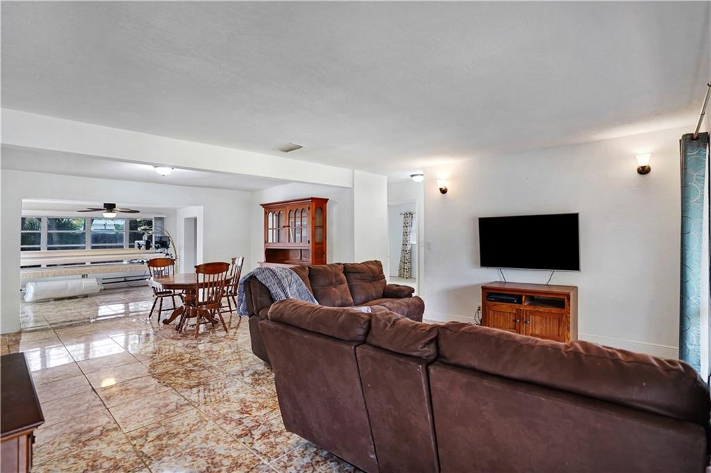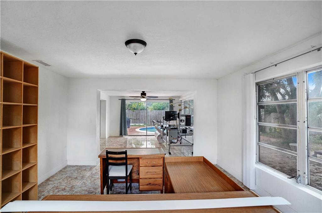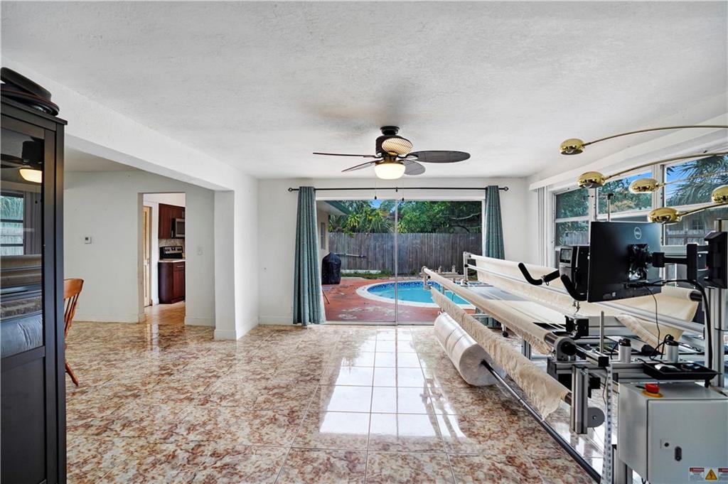 Large Melrose Park 3/2 pool home with a huge family room, 1 car garage and a lot of recent updates. Newer SS appliances. New roof & gutters in 2020 along with a new master bathroom. Pool resurfaced, new tiles, rebuilt pump and paver patio in 2020. House was just tented December 2021, AC only 4-5 yrs old. Lots of fruit trees, 2 types of mango, chahew, soursop, strawberry tree & Jamacian apple tree. Washer & dryer do NOT convey.