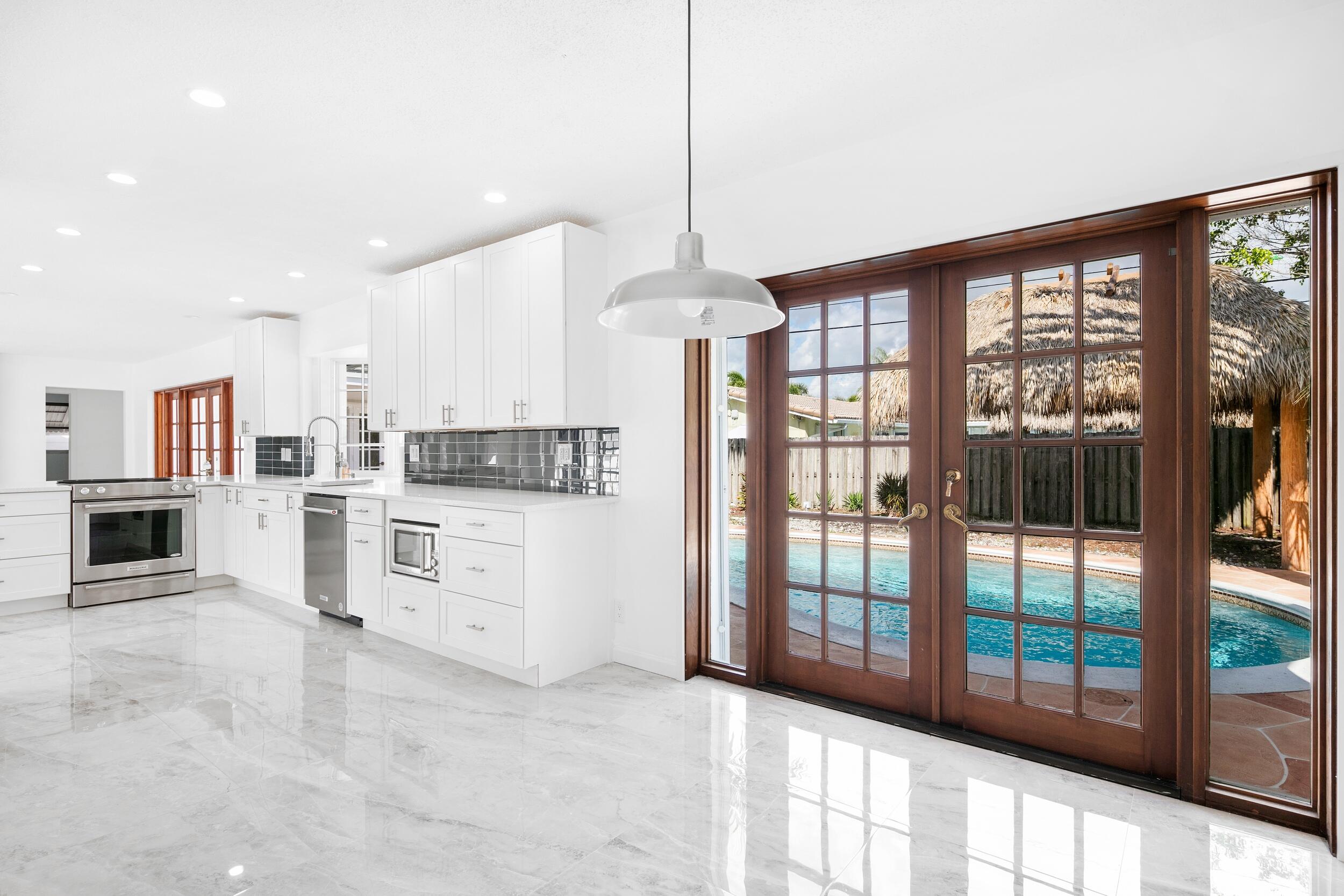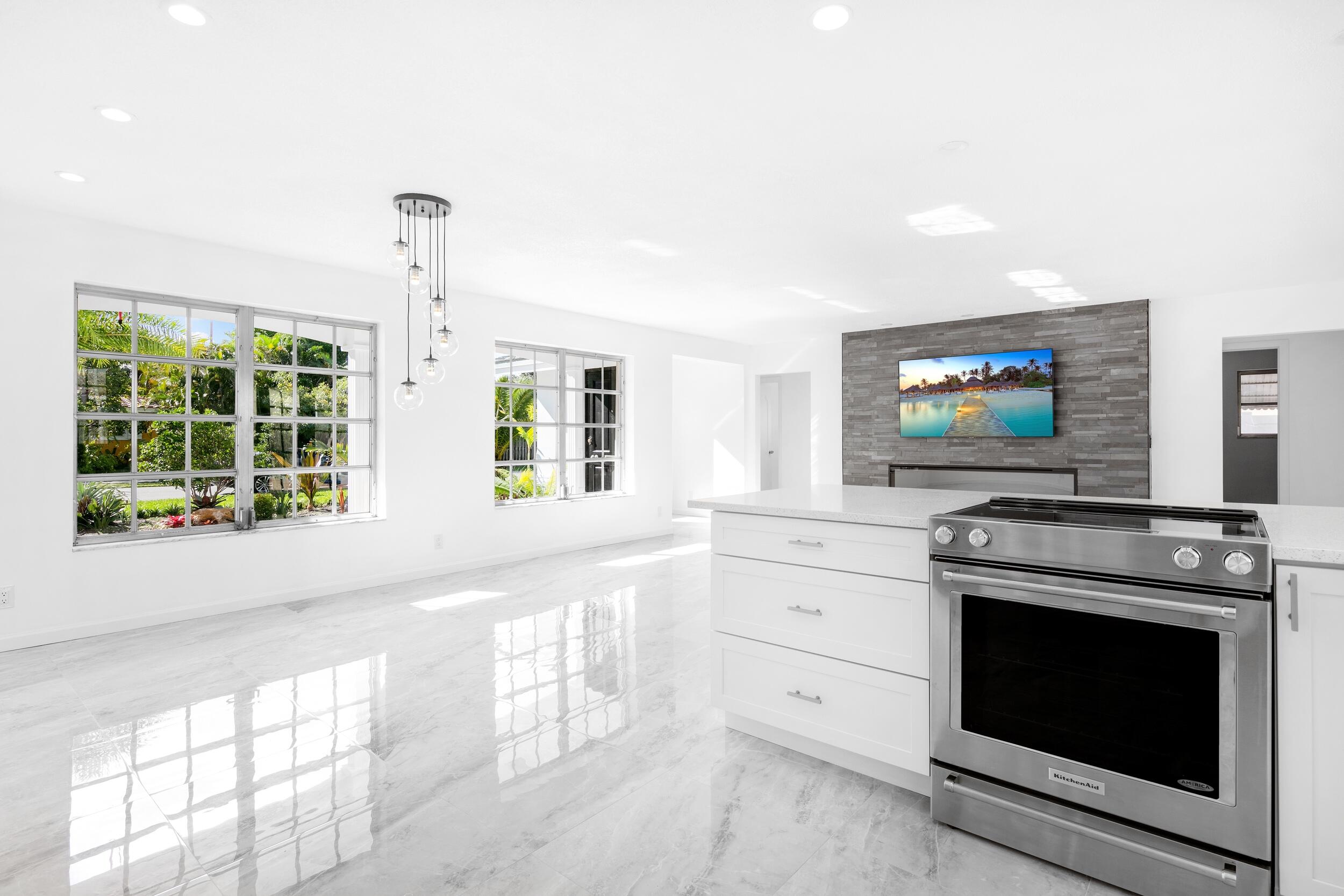 Immaculate, newly renovated home in the sought-after Imperial Point neighborhood of Fort Lauderdale is now available, This stunning home is spacious with 2,564 SF total and 1,789 SF living area, featuring 4 bedrooms and 2 baths with an open floorpan. Transitional, clean design lines with high quality finishes offer a sophisticated look and feel to the home. The arrival benefits from custom landscaping offering privacy and a tropical feel. Perfect for entertaining, living room is slate with 100'' fireplace, television and an open kitchen with a breakfast room. The great room opens up to the outdoor space and pool area. The open kitchen is complete with Italian porcelain, custom cabinetry with KitchenAid