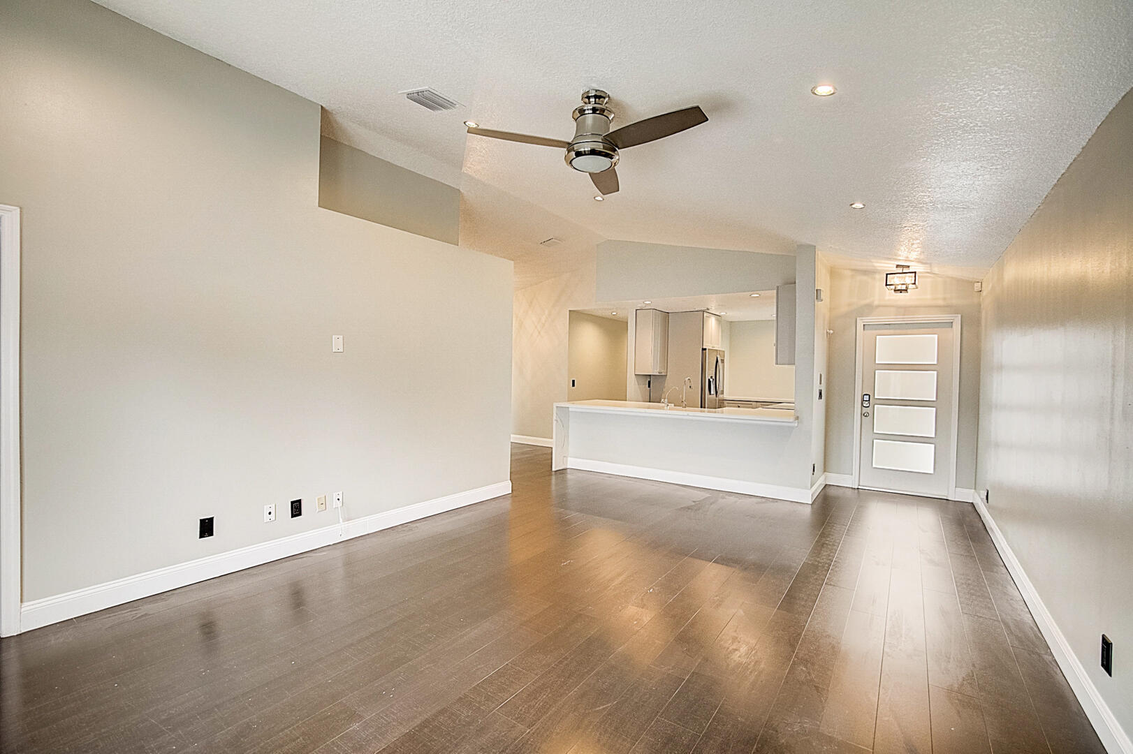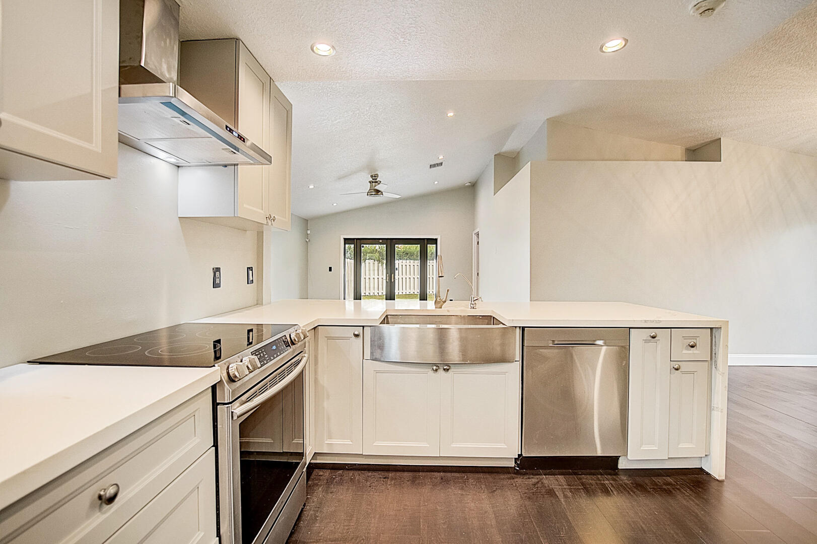 Welcome home! You won't want to leave this stunning 3 bedroom and 2 bathroom house in Miramar, FL. The kitchen boasts generous counter space and a breakfast bar, making cooking and entertaining a delight. Step inside this beautiful interior with vaulted ceilings, hardwood floors throughout, plenty of natural light, and neutral palette. Relax in your primary suite, complete with a walk-in closet, and an en-suite bathroom with double sinks. Relax with your favorite drink in the fenced in backyard with a patio, lush grass, and great potential for adding personal touches. Come see this stunner!