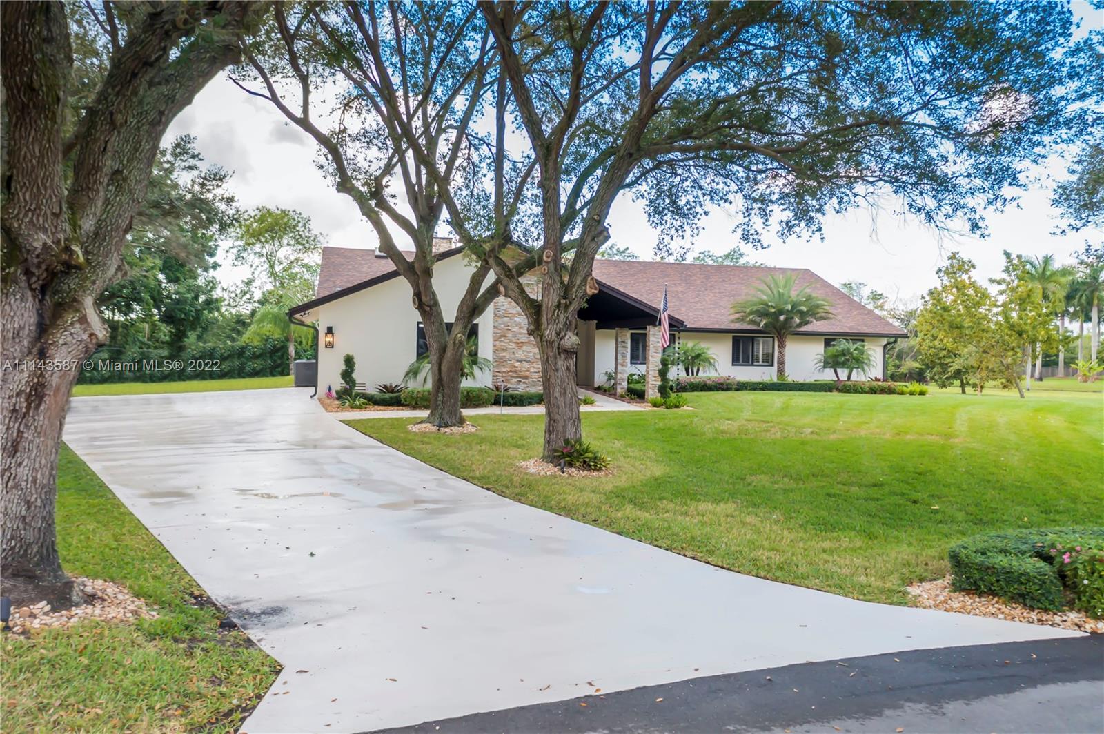 In the sought after Davie community of Laural Oaks, sits this fully remodeled, expansive property on over 1 acre of land with wide water views and lush landscaping. This single-story home, on a cul de sac, has been completely and beautifully remodeled from top to bottom; boasting smart home technology throughout. Brand new roof and AC with full impact windows and detailed with plantation shutters. The renovated kitchen features custom cabinetry, translucent countertops wired for lighting and appliances less then 2 years old. The impressive wood burning fireplace with brand new chimney is perfect for a cozy evening or step out to a serene backyard oasis and enjoy dining al fresco in the outdoor kitchen & bar. Located near exceptional shopping and dining; this home has it all!