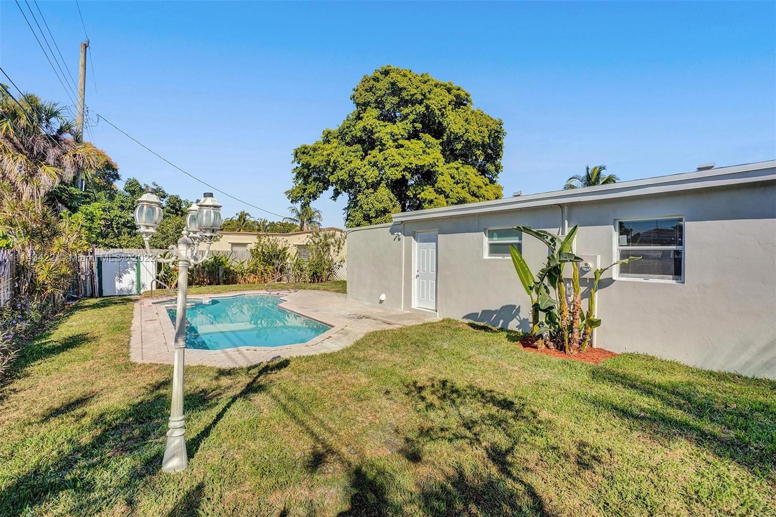 BEAUTIFULLY FULLY REMODELED 3 BEDROOMS 2 BATHROOMS HOME WITH POOL IN THE HEART OF POMPANO BEACH! PERFECT TURN-KEY HOME OR VACATION RENTAL OPPORTUNITY! HOME FEATURES; HIGH IMPACT WINDOWS AND DOORS, BRAND NEW BATHROOMS, SEPARATE LAUNDRY ROOM WITH BRAND NEW WASHER AND DRYER, NEW SHINGLE ROOF AND FLAT ROOF, BRAND NEW 2021 A/C UNIT, NEW IRRIGATION SYSTEM WITH NEW GRASS, AND PLANS. NEW ELECTRIC WATER HEATER, NEW CUSTOM KITCHEN WITH HIGH-END EUROPEAN CABINETS, QUARTZ COUNTERTOP WITH BRAND NEW 2022 STAINLESS STEEL APPLIANCES, RECESSED LIGHTING THROUGHOUT, VERY LARGE BACKYARD WITH A LARGE POOL, FRESHLY PAINTED INSIDE/OUT... MINUTES FROM SCHOOLS, BEACH, SHOPPING PLAZAS ETC... HURRY THIS WON'T LAST LONG!!