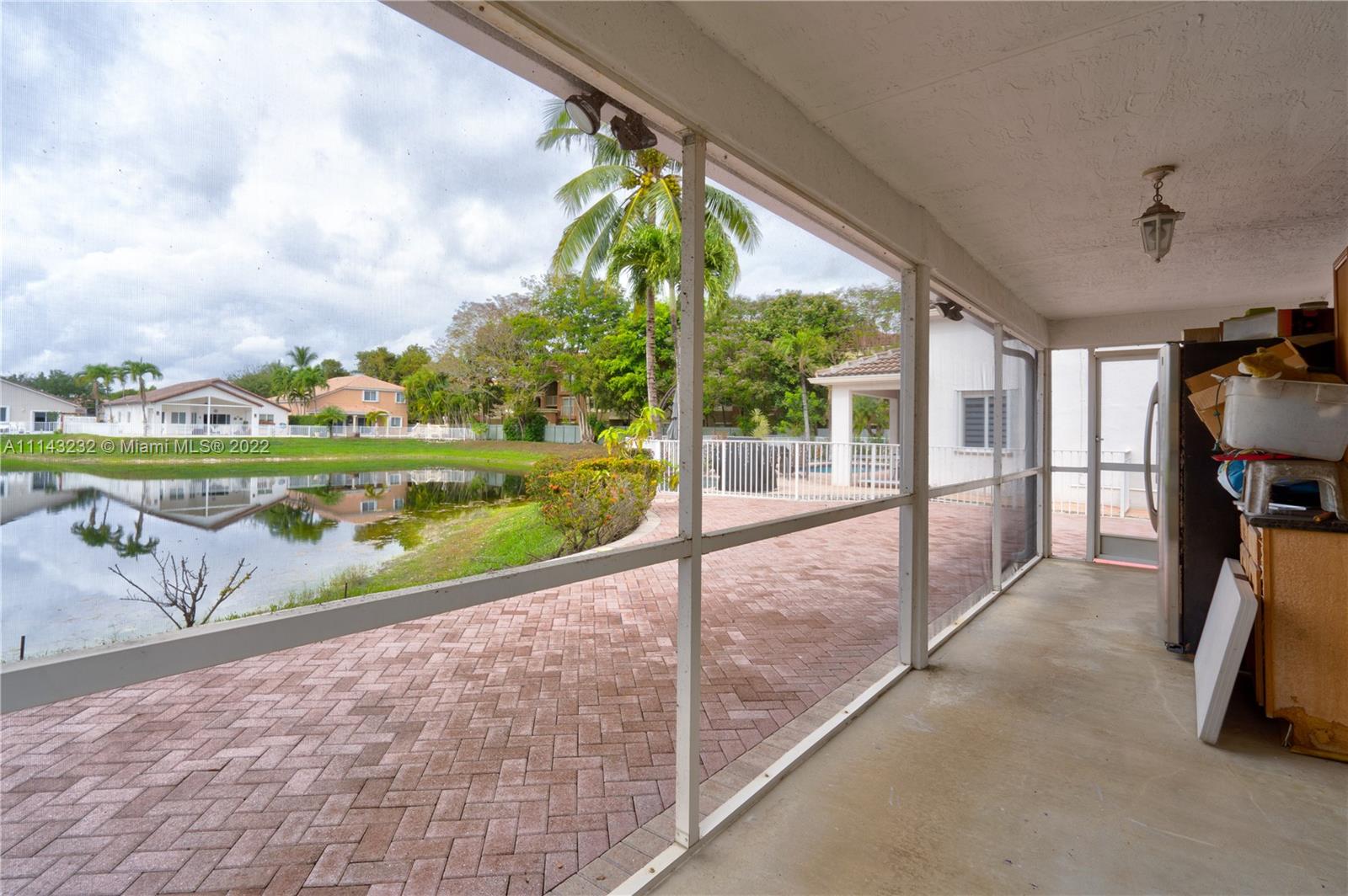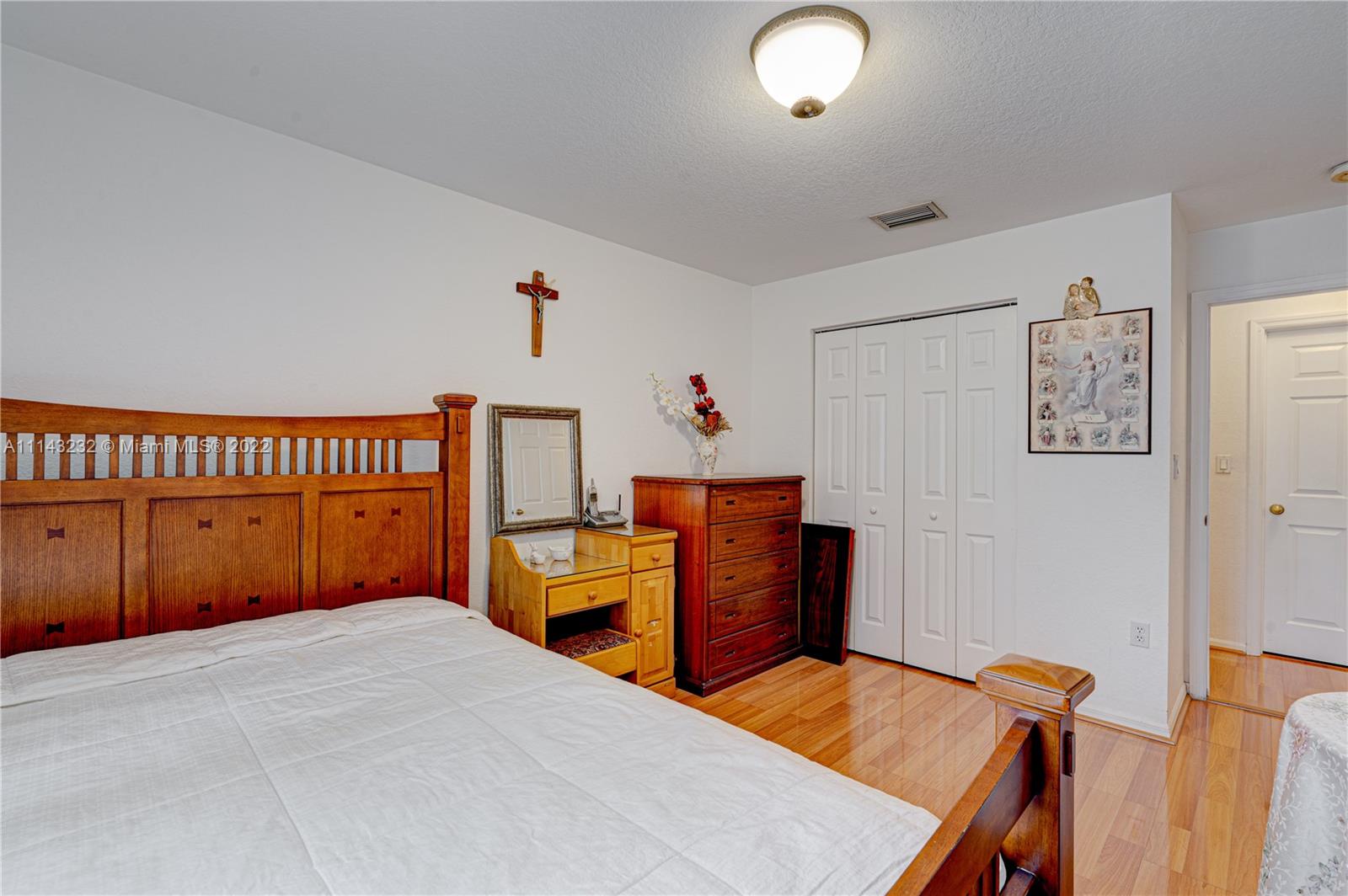 Inmaculate house ready for a family, located in a gated community "Doral Gardens", open concept layout, large kitchen area, enclosed patio with a lake-view, very well kept laminated wood floors, extra large master bedroom, one bedroom downstair, 2 car garage.