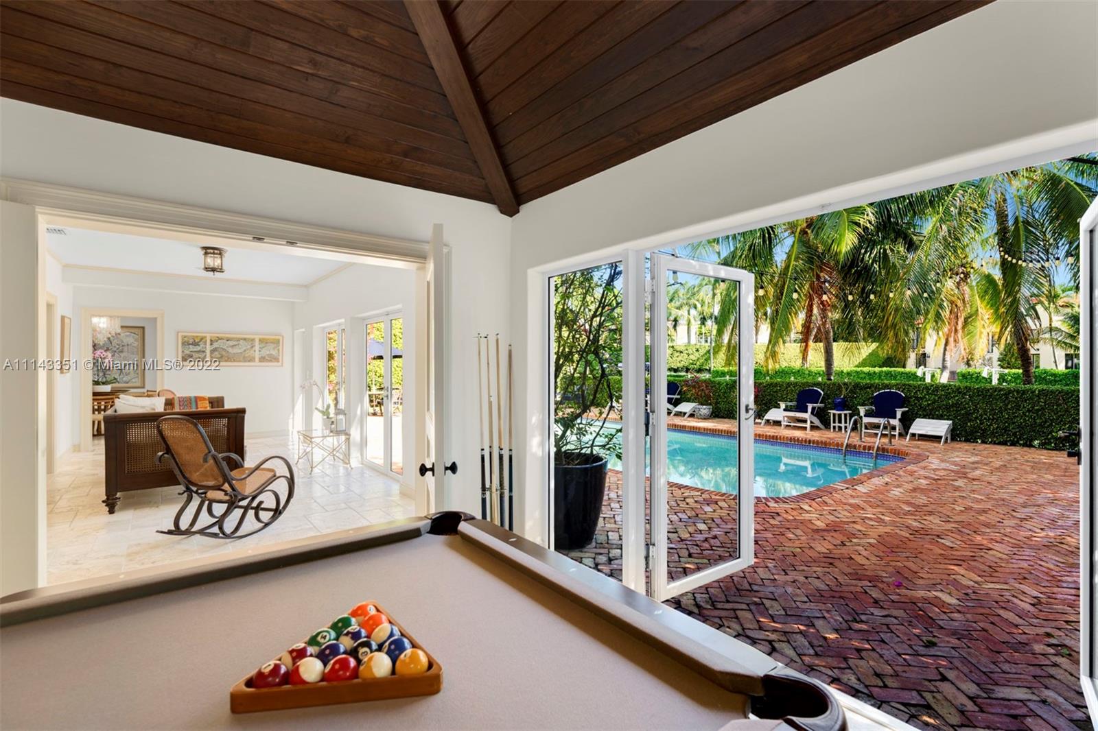 Enjoy coveted Sunset Island living in this beautiful 2 story WF residence on Sunset Island IV, the most walkable of the 4 Islands. Enter through private gates to a circular driveway leading to a magnificent verdant courtyard garden that opens to a 6BD,5+1BA home. 15,750 SF lot, 75’ WF, private dock, boat lift, natural light through entire home, fine marble & hardwood floors, large hurricane impact La Finestra windows. Renovated gourmet kitchen w/ top-of-the-line appliances, formal dining room, expansive bedrooms, spa-like principal bathroom, walk-in closets, guest house & 2 car garage. Outdoors curated for entertaining surrounded by greenery of soaring hedges w/ an oversized pool, summer kitchen & your very own sand beach complete w/a bench swing to sway along w/ the calming ocean breezes.