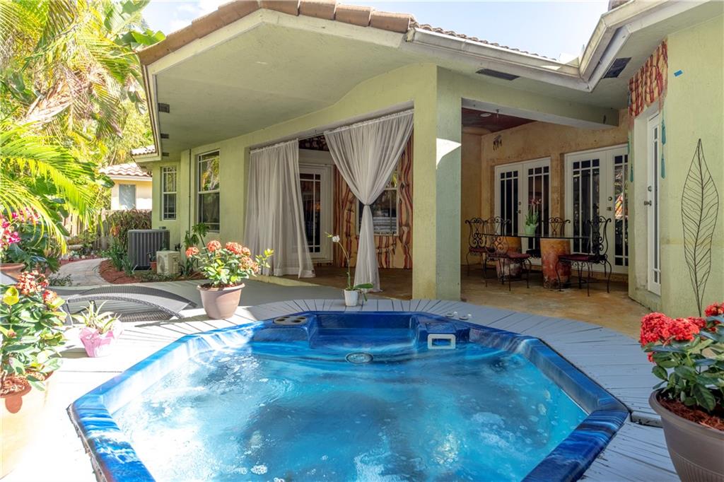 LOCATION, LOCATION, LOCATION! This substantially remodeled Tropical Paradise is within minutes of Lauderdale Marine Center, Hollywood Intl Airport, I595, Turnpike, premier restaurants, shopping, and the beach! This four bedroom three bath residence is quietly nestled in a private cul-de-sac located adjacent to La Preserve. Opening the door to high vaulted ceilings, open spaces, a downstairs master bedroom with dual closets an additional, two, first floor bedrooms with ensuite. Upstairs is a very private generous bedroom with its own ensuite. Step outside to a relaxing tranquil covered patio featuring a in-ground six person hot tub surrounded by tropical landscapes! Full-size two car garage with laundry room.