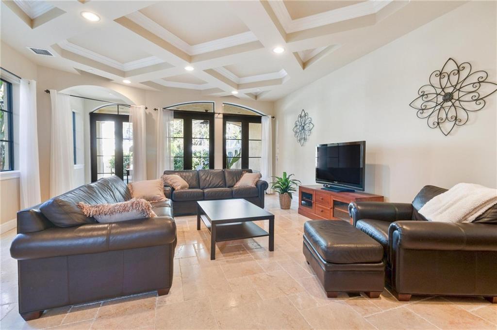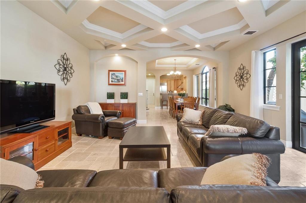 The epitome of elegance! This superior quality construction Mediterranean townhome is located in a prime location of one of the most coveted neighborhood of Victoria Park. Entering this corner unit home, you are greeted with an expansive living room featuring 10' coffered ceiling and gorgeous archways. The chef's kitchen has top of the line appliances, including Thermador gas cooktop and Sub-Zero refrigerator. This 3 bedroom, 3.5 bath property has impact glass throughout, travertine and Brazilian cherrywood floors, and wired for sound throughout. The spacious primary suite also has coffered ceiling, 2 large closets and its own private covered balcony. The master bathroom features a jacuzzi tub, and large walk-in shower. See additional details include heated pool, elevator & more.