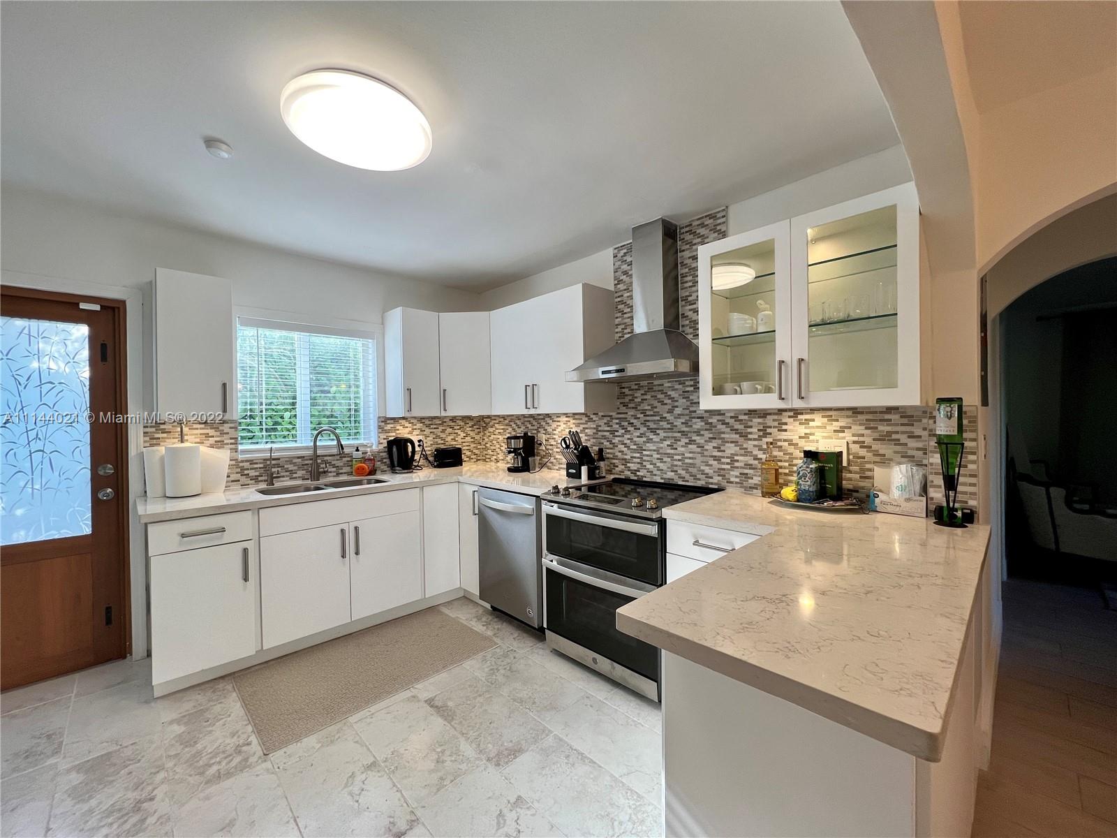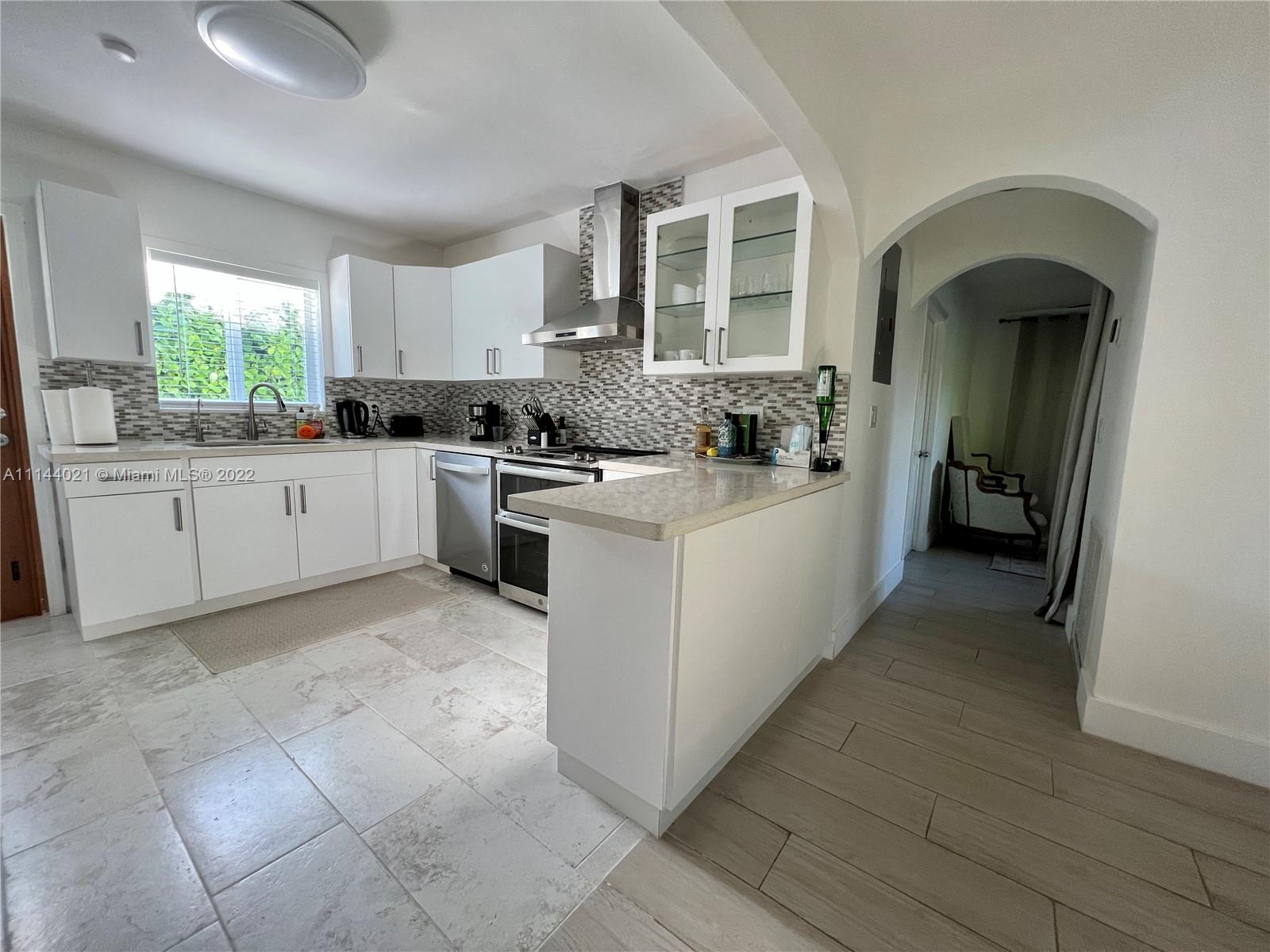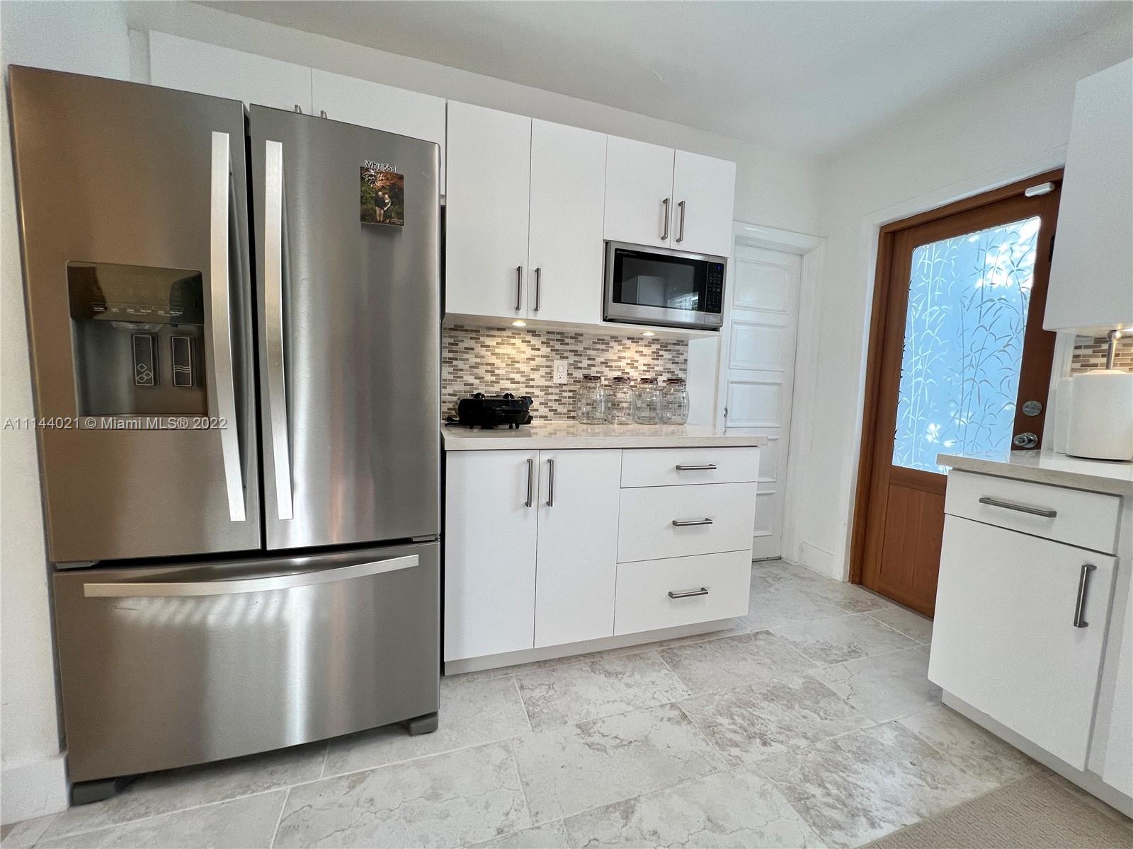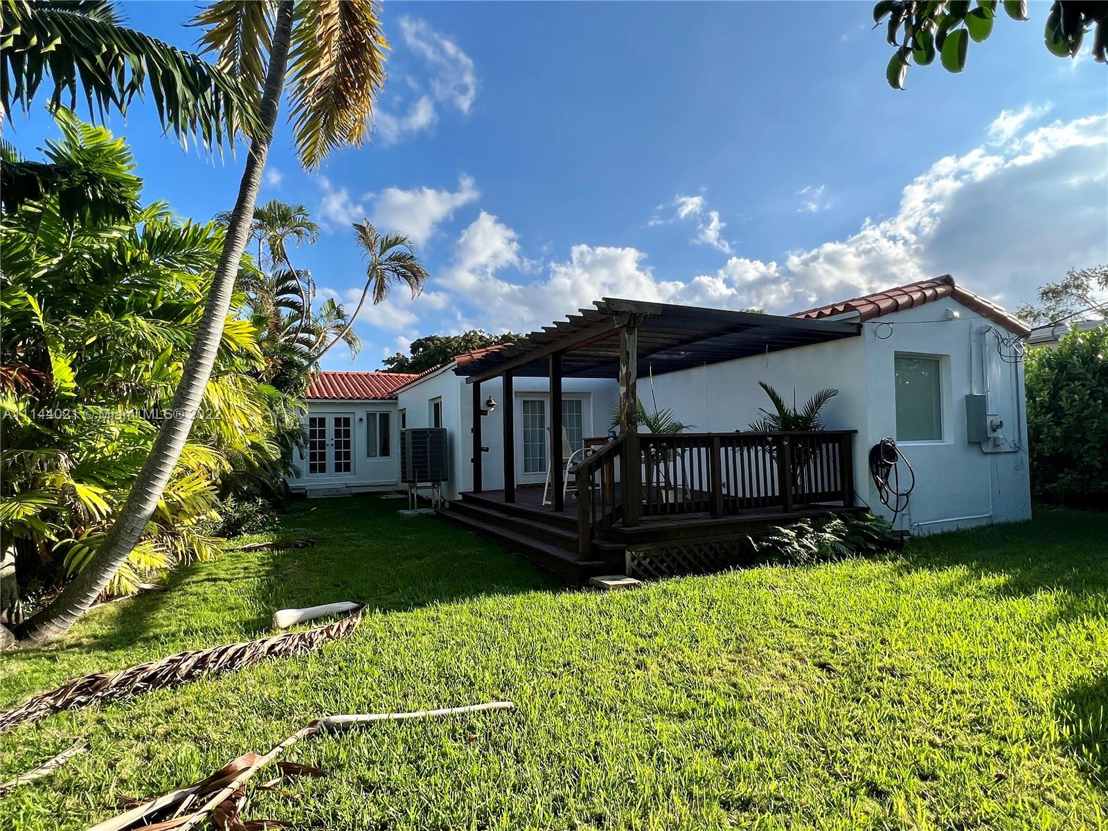 Desirable Classic courtyard Spanish in prime Miami Beach location. This 3 bedrooms, 2 bath single home is impeccably maintained and in fully renovated. Brand new kitchen, floors. The kitchen has newer stainless-steel appliances and a cozy breakfast area. The living room is perfect for holiday entertaining. The prestigious master bedroom has a large bathroom with jacuzzi. The home has central heat and a/c, a garage with storage shed and a fenced backyard. Permit for 3 more bathrooms addition. You will not want to miss this one! House is rented furnished for $4,500 until end of April. Qualified buyer only. Easy showings for by appointment with listing agent.