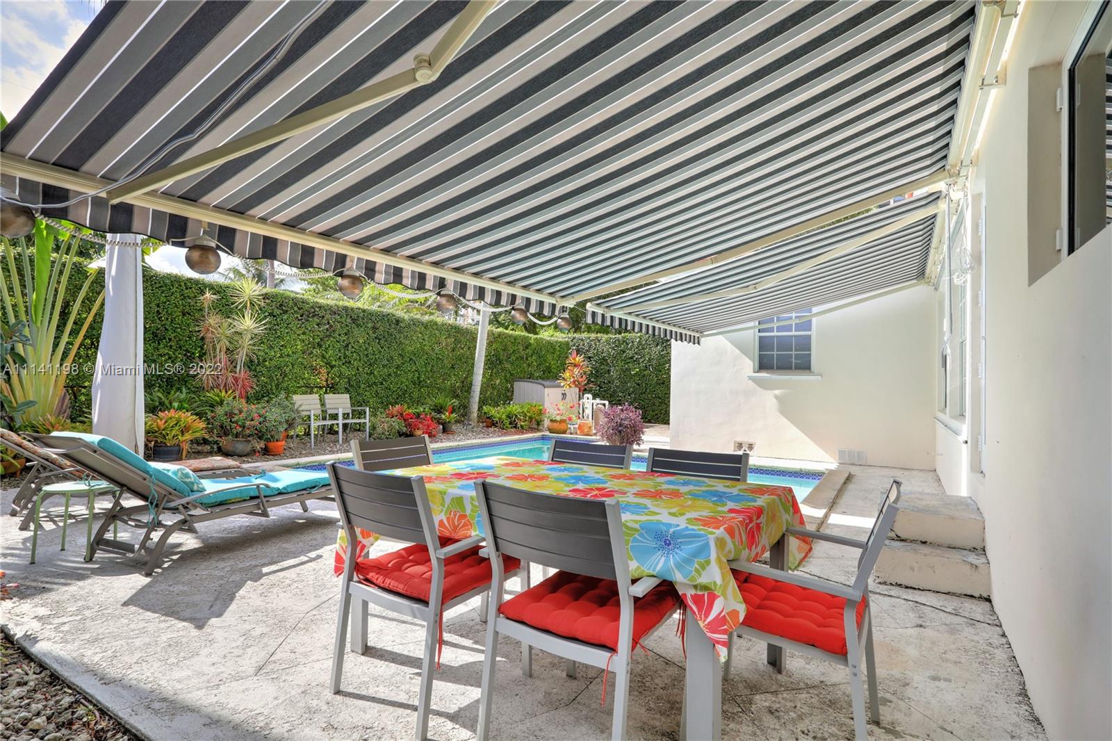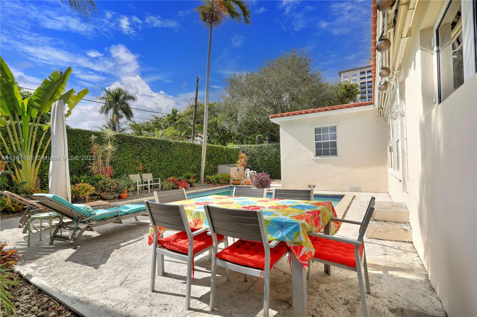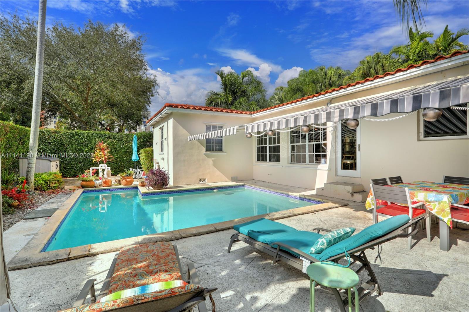 Proudly own this 4 bedroom/2 Bath with pool located just a few blocks to Miracle Mile and Downtown Coral Gables! This rare opportunity to purchase this split plan features large living and dining areas complemented by stunning original wood flooring and wonderful natural light. Spend your free time relaxing in this backyard oasis featuring a beautiful L-Shaped pool, tall privacy hedges and patio area with a large retractable awning. All four bedrooms are spacious and this home has been designed well to feature ample storage space with extra hallway closets and utility room with washer/dryer and storage loft. This home has a new A/C, partial Impact Windows and updated plumbing that has been connected to municipal water and sewer. Schedule your showing today!