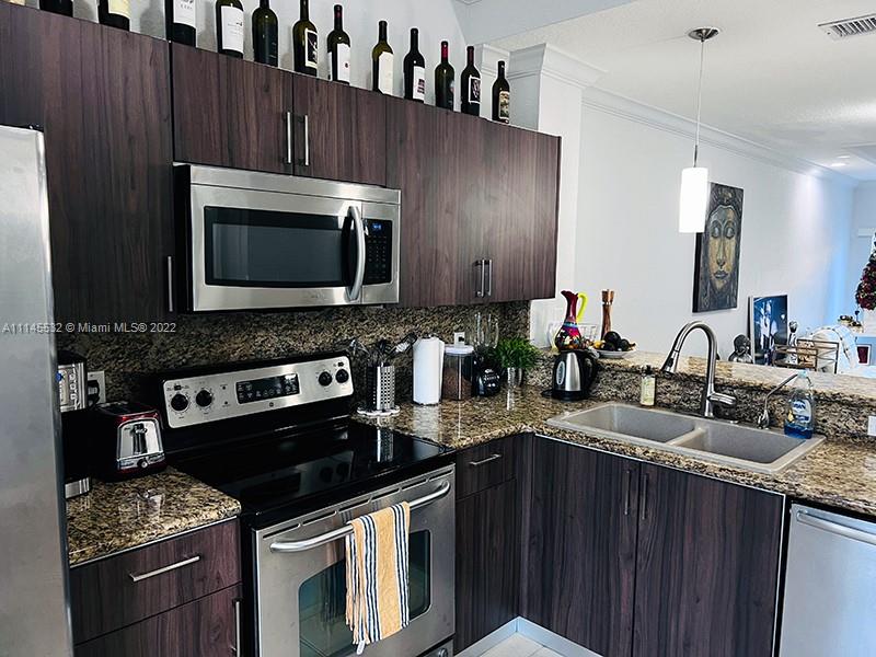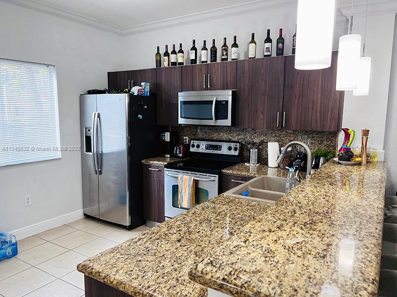 Beautiful Mediterranean-style townhouse in a gated community. Open floor plan. Large open kitchen with granite countertops and Stainless Steel appliances. New washer and dryer in the unit. Master bedroom with suite bathroom and walk-in closet. Pet-friendly community with dog park.