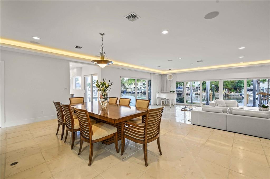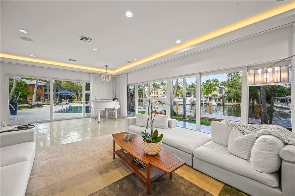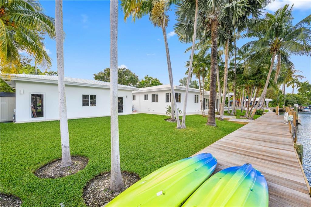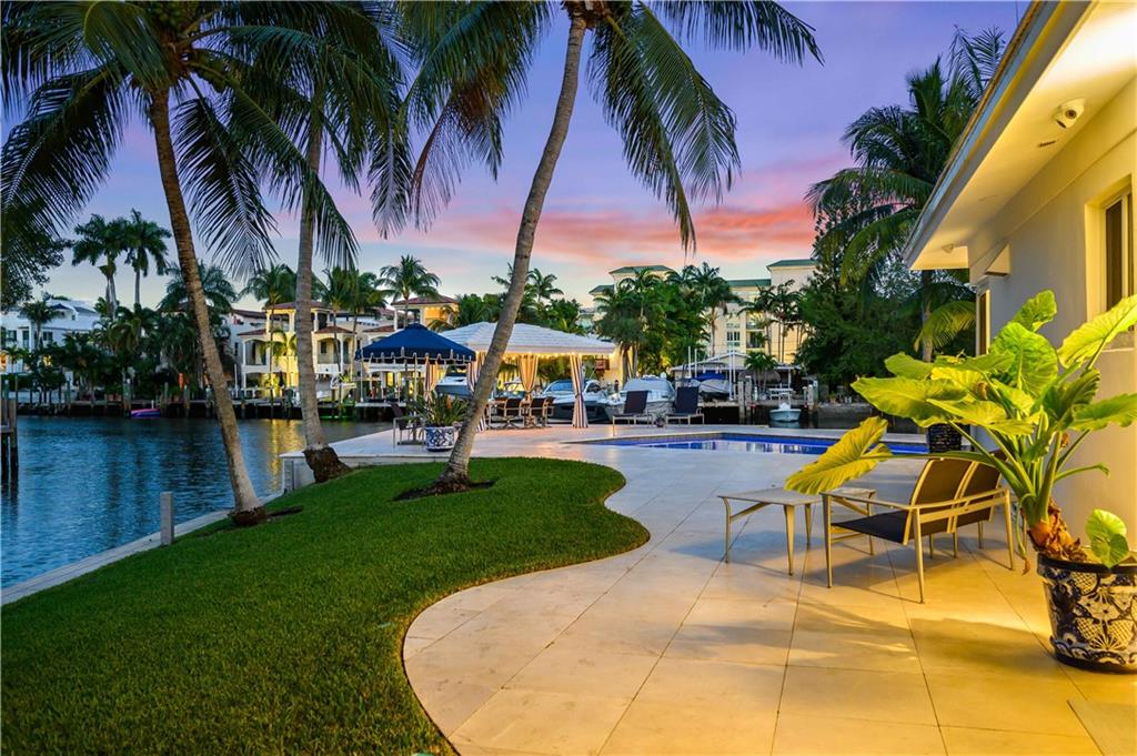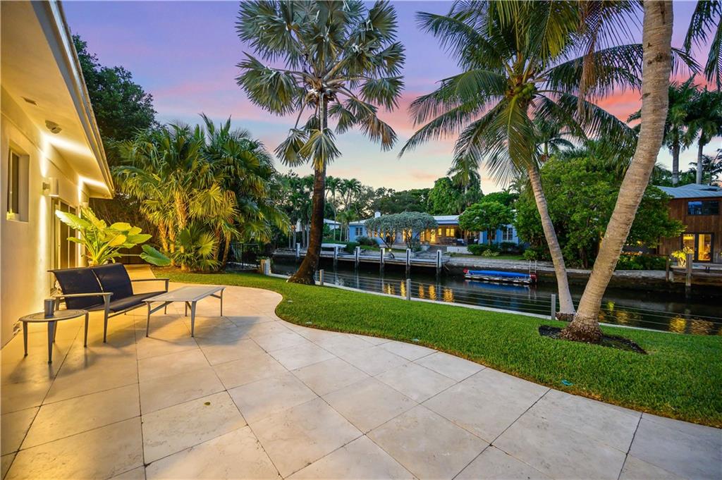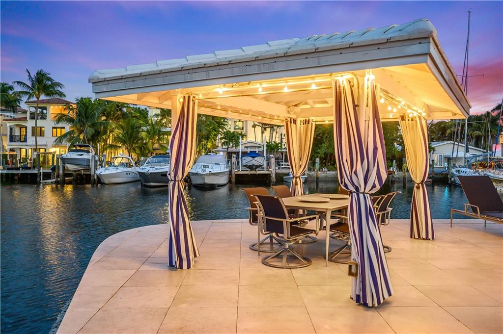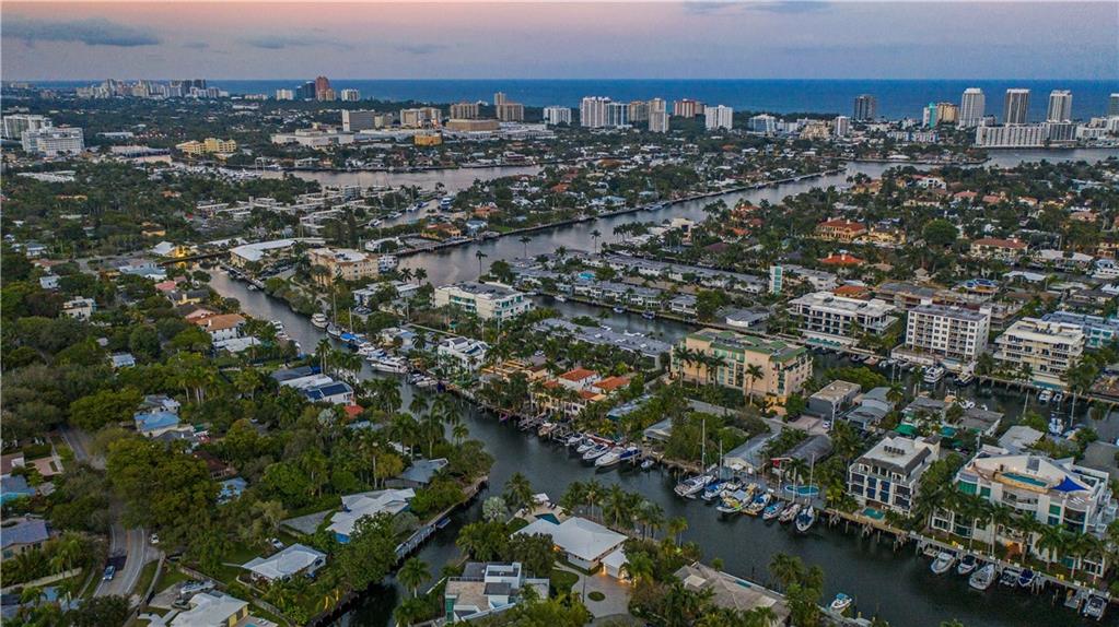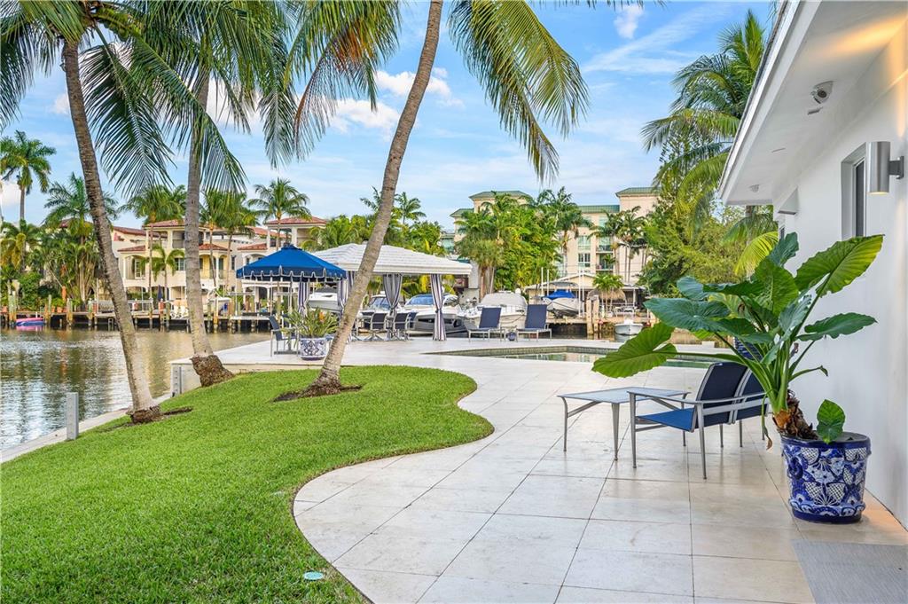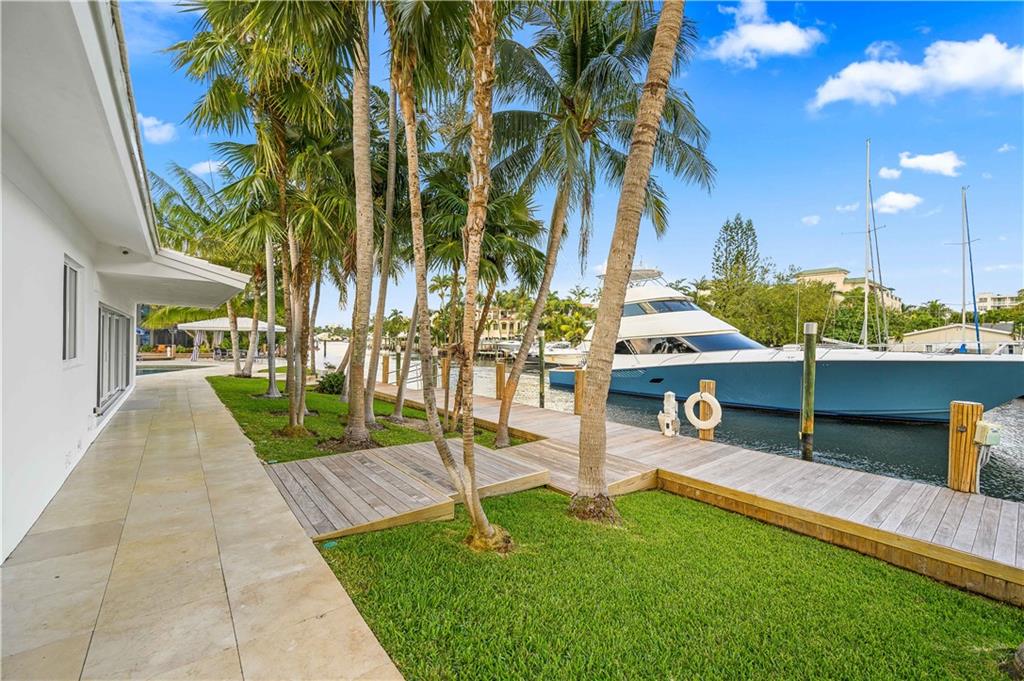 Park-like North Gordon's premier point property encompasses over 16,000 square feet & no-fixed-bridge water front of over 240 feet with 162 feet along the wide, deep Karen Canal. A recent multi-level ipe dock also has a float platform. Sleek Mid-Century architecture is updated for the 21st Century including re-built roof, newer electrical and plumbing systems and all impact-rated windows and doors. The sunken living room has volume ceilings. Walls of sliding glass merge outdoor and indoor living featuring water views from all public areas. Travertine patios surround the re-done, heated pool and water facing gazebo. In front, a crescent drive leads to an oversized three car garage with additional storage and laundry room with a dog wash. Very walkable to parks and Las Olas dining.