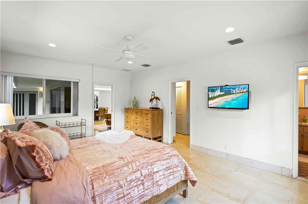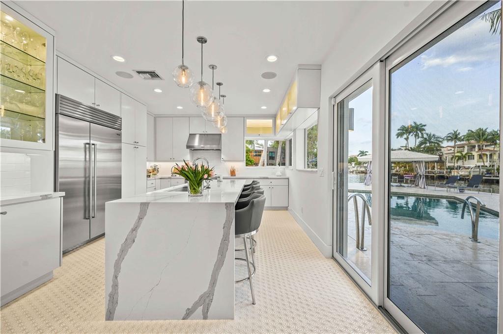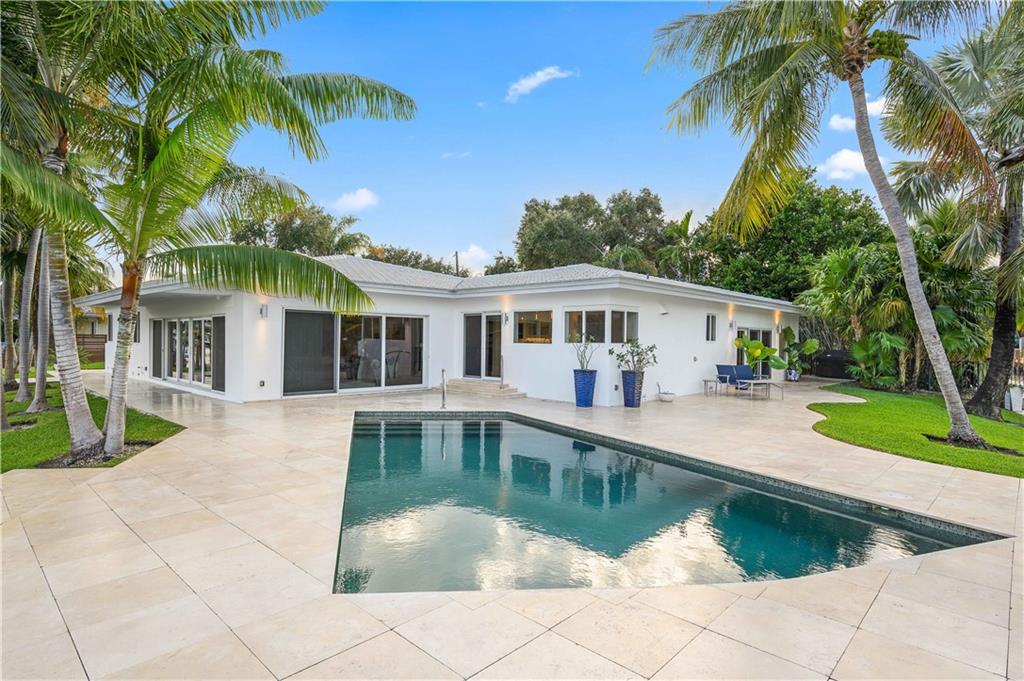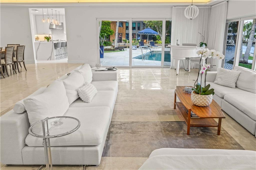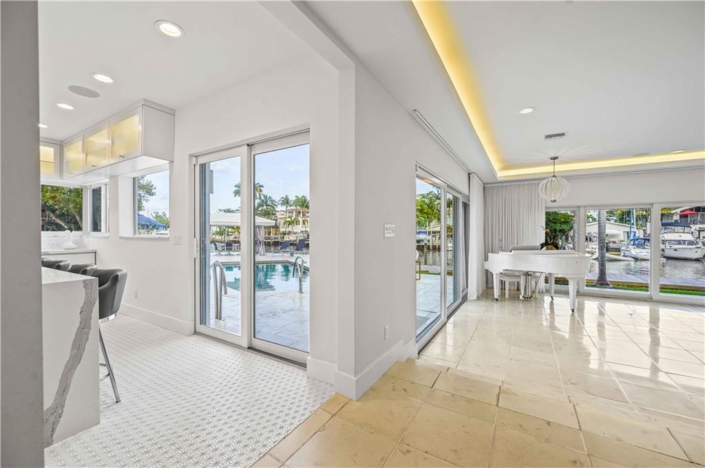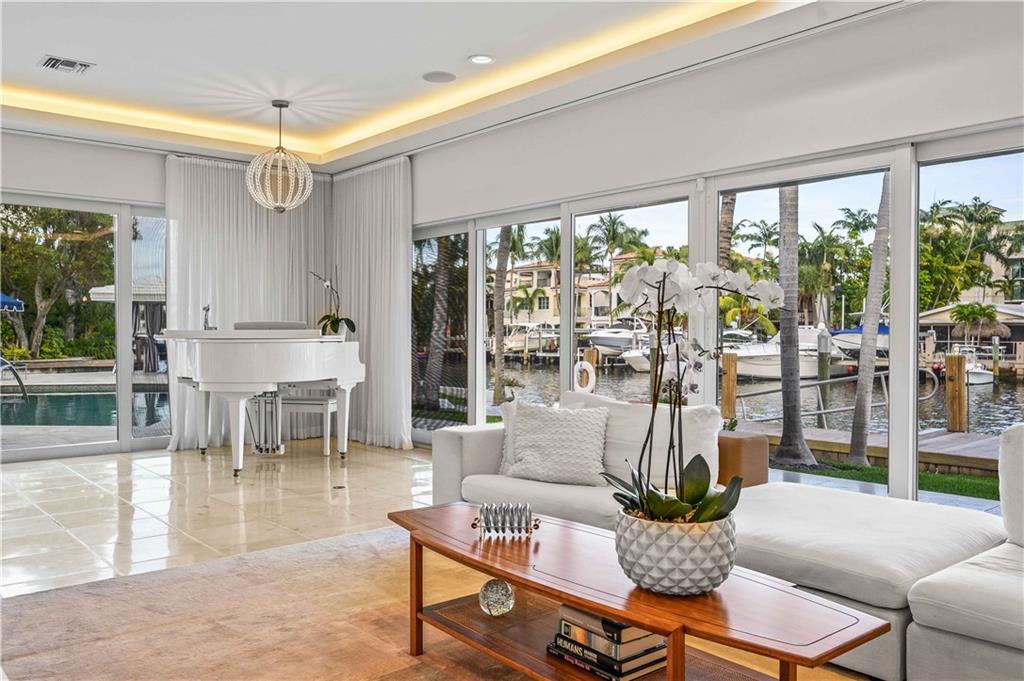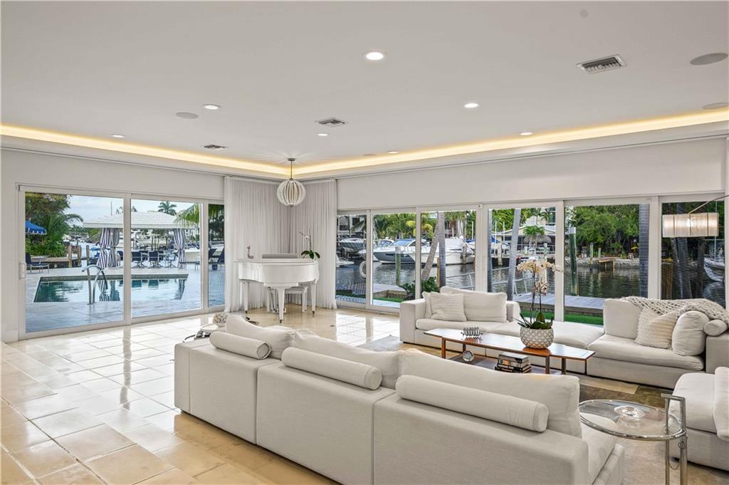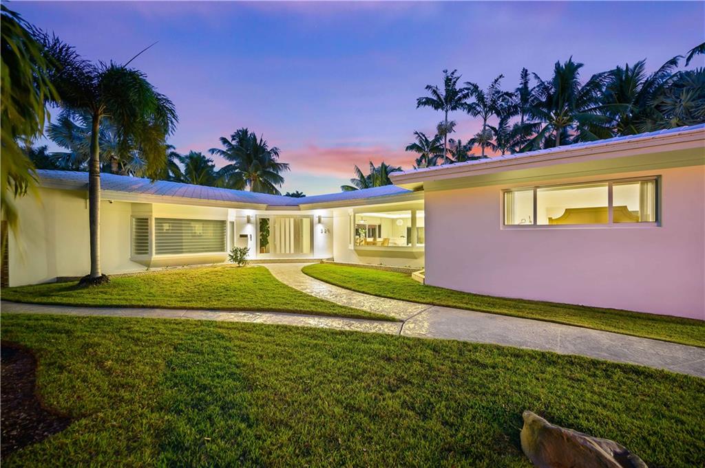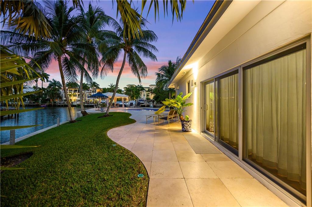 Park-like North Gordon's premier point property encompasses over 16,000 square feet & no-fixed-bridge water front of over 240 feet with 162 feet along the wide, deep Karen Canal. A recent multi-level ipe dock also has a float platform. Sleek Mid-Century architecture is updated for the 21st Century including re-built roof, newer electrical and plumbing systems and all impact-rated windows and doors. The sunken living room has volume ceilings. Walls of sliding glass merge outdoor and indoor living featuring water views from all public areas. Travertine patios surround the re-done, heated pool and water facing gazebo. In front, a crescent drive leads to an oversized three car garage with additional storage and laundry room with a dog wash. Very walkable to parks and Las Olas dining.