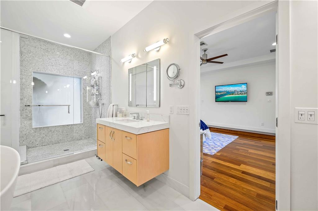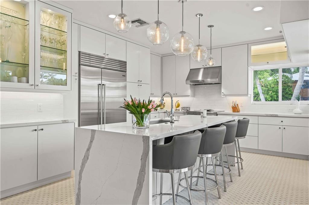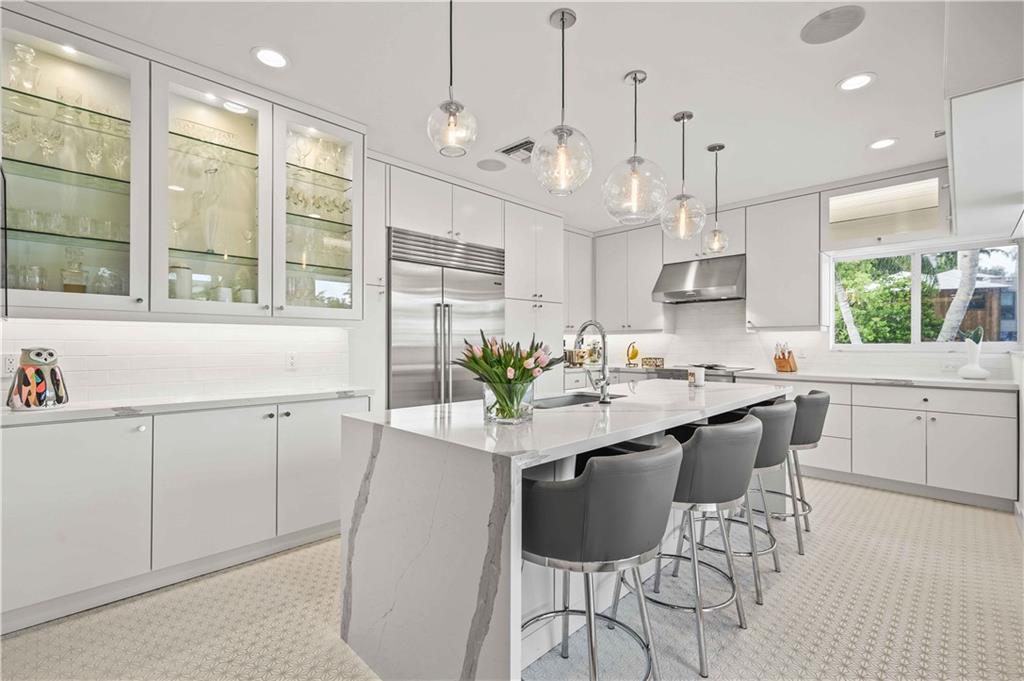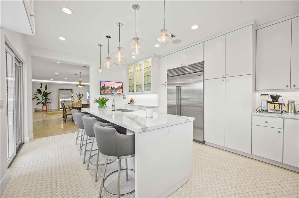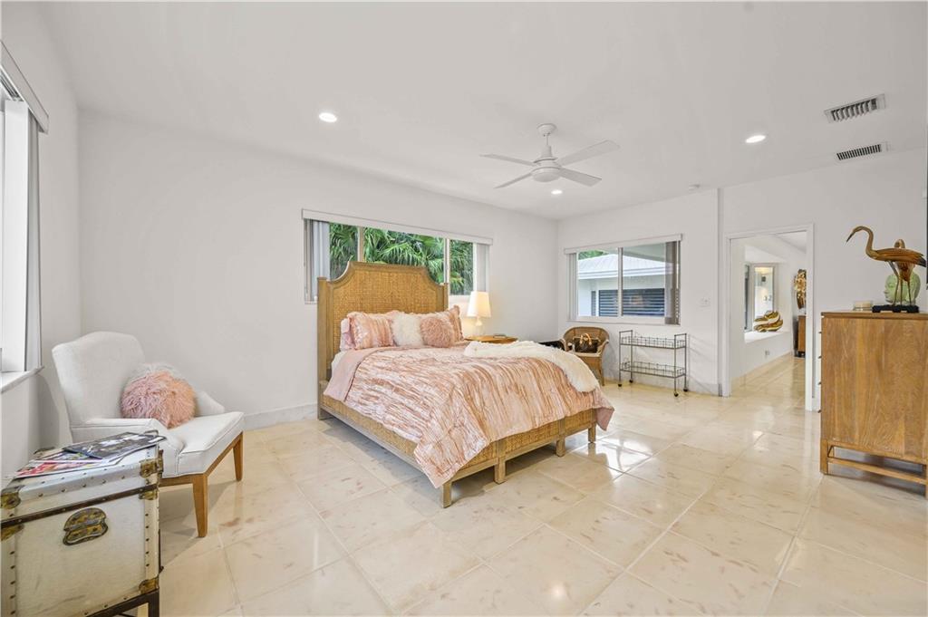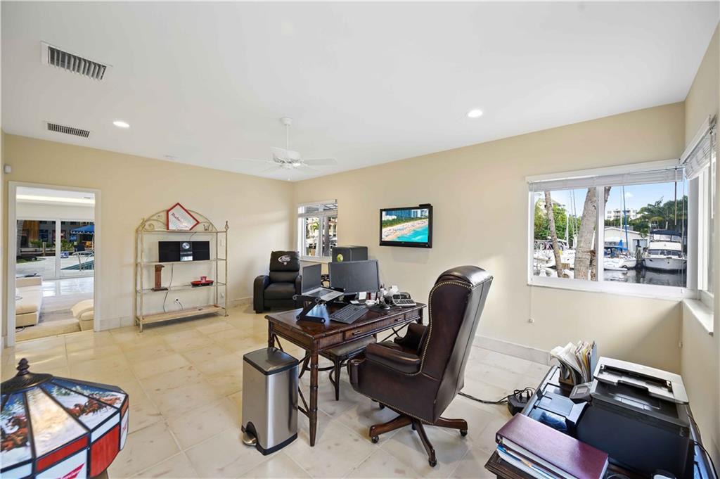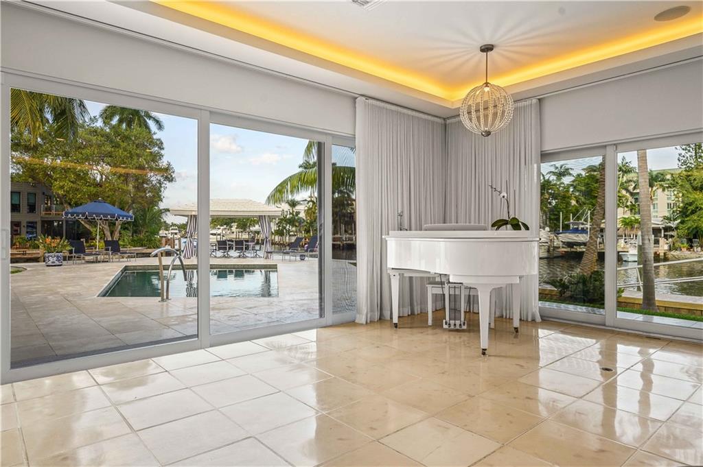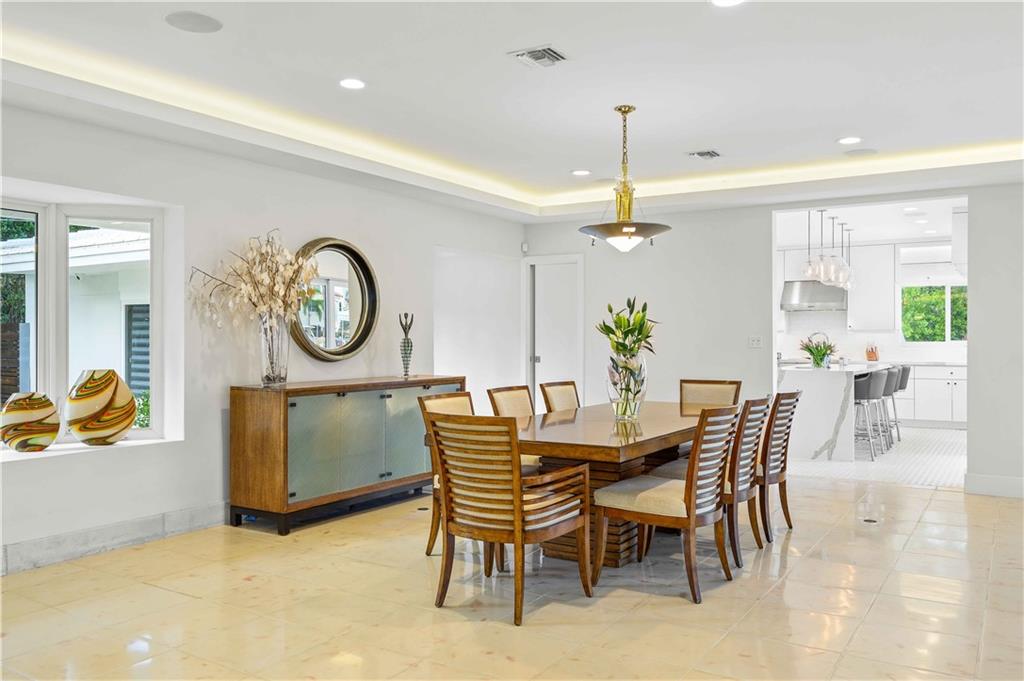 Park-like North Gordon's premier point property encompasses over 16,000 square feet & no-fixed-bridge water front of over 240 feet with 162 feet along the wide, deep Karen Canal. A recent multi-level ipe dock also has a float platform. Sleek Mid-Century architecture is updated for the 21st Century including re-built roof, newer electrical and plumbing systems and all impact-rated windows and doors. The sunken living room has volume ceilings. Walls of sliding glass merge outdoor and indoor living featuring water views from all public areas. Travertine patios surround the re-done, heated pool and water facing gazebo. In front, a crescent drive leads to an oversized three car garage with additional storage and laundry room with a dog wash. Very walkable to parks and Las Olas dining.