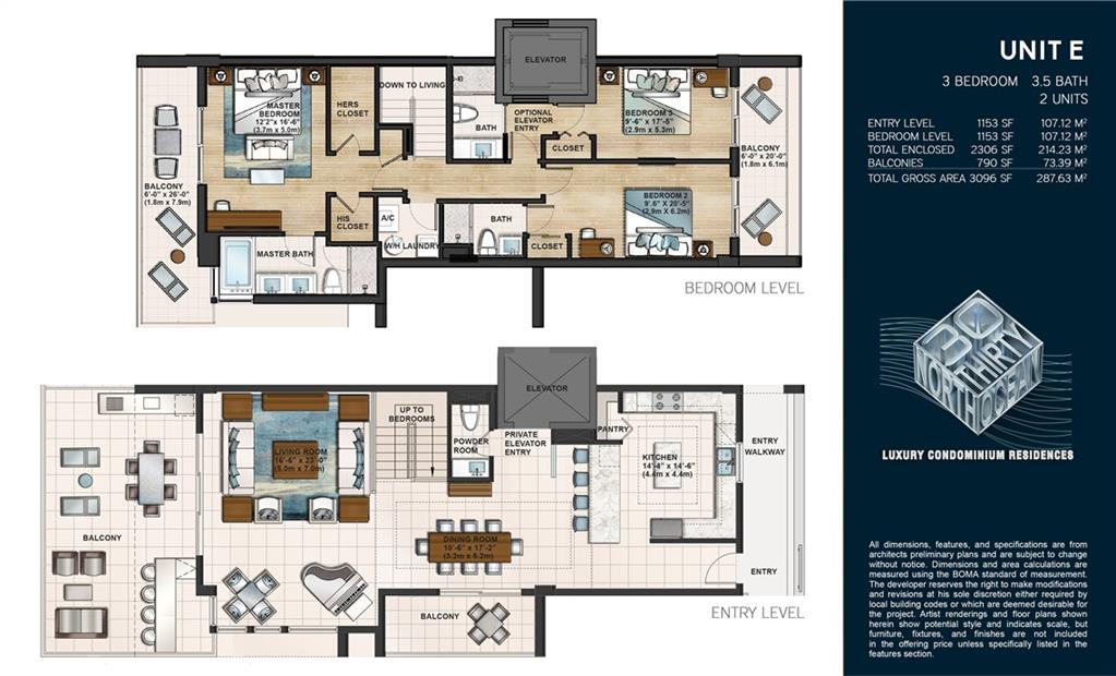 BRAND NEW! JUST COMPLETED BEACH LIVING 2-STORY RESIDENCE W/ PRIVATE ELEVATOR ENTRANCE. LAST REMAINING OVERSIZED CORNER UNIT W/FLOOR-TO-CEILING WINDOWS & 2 GARAGE PARKING SPACES! Only 300 steps to the sand,walk to tons of local dining,shopping & a brand-new Publix (opening soon)! Ready for immediate occupancy- move in today!30-Thirty is a 5-story luxury boutiques community of only 24 residences.Residence features 790 SF of outdoor living space including an enormous private terrace for convenient outdoor living w/ a private backyard atmosphere equipped w/ a summer kitchen! Kitchens have Italian cabinetry & high-end appliances.All 3 bedrooms are en-suite & have a balcony.Clubhouse on site w/ heated pool, bbq & fitness center. Includes a family membership to The Club at Harbor Beach Marriott!
