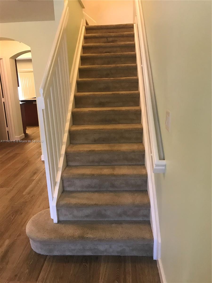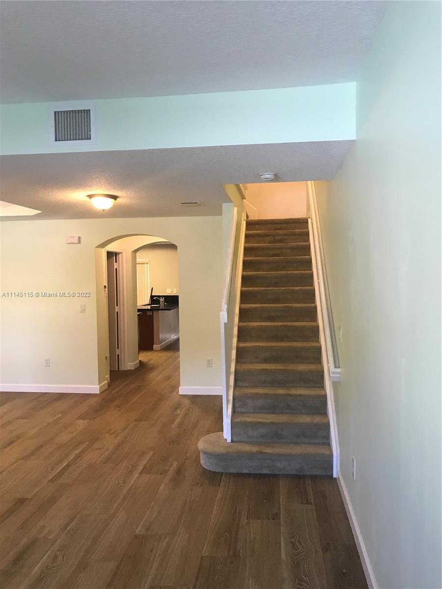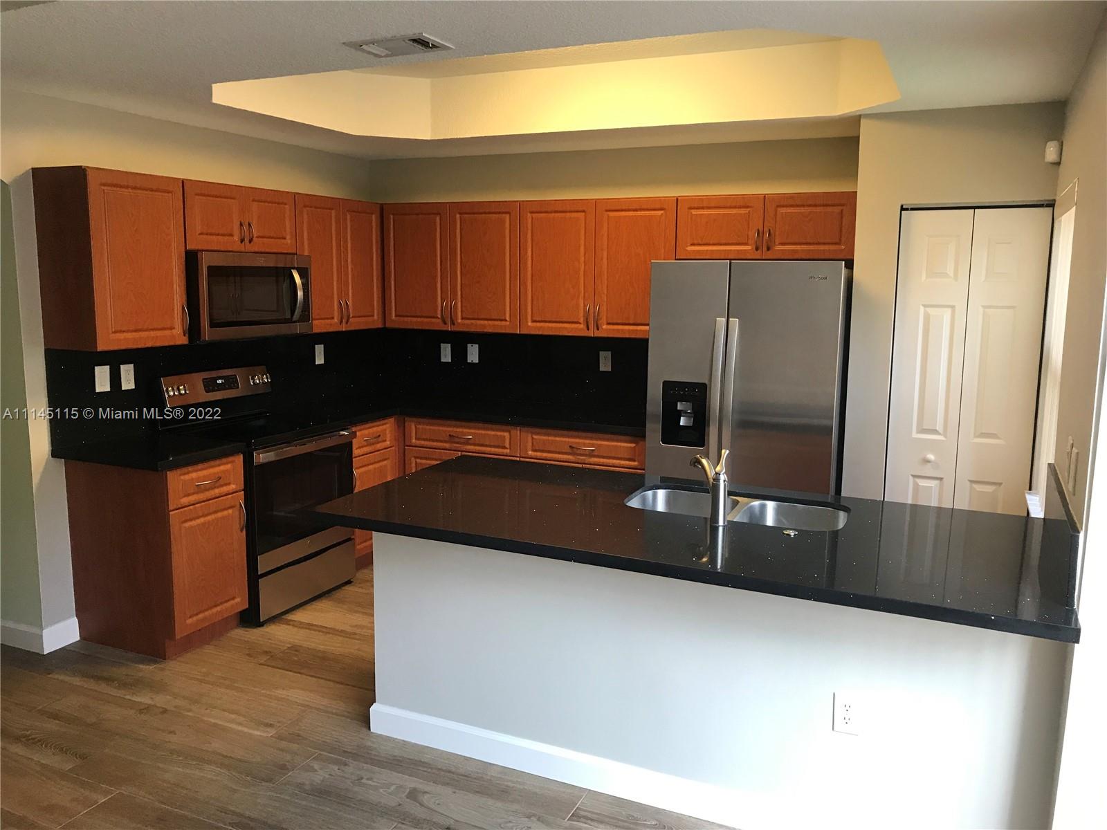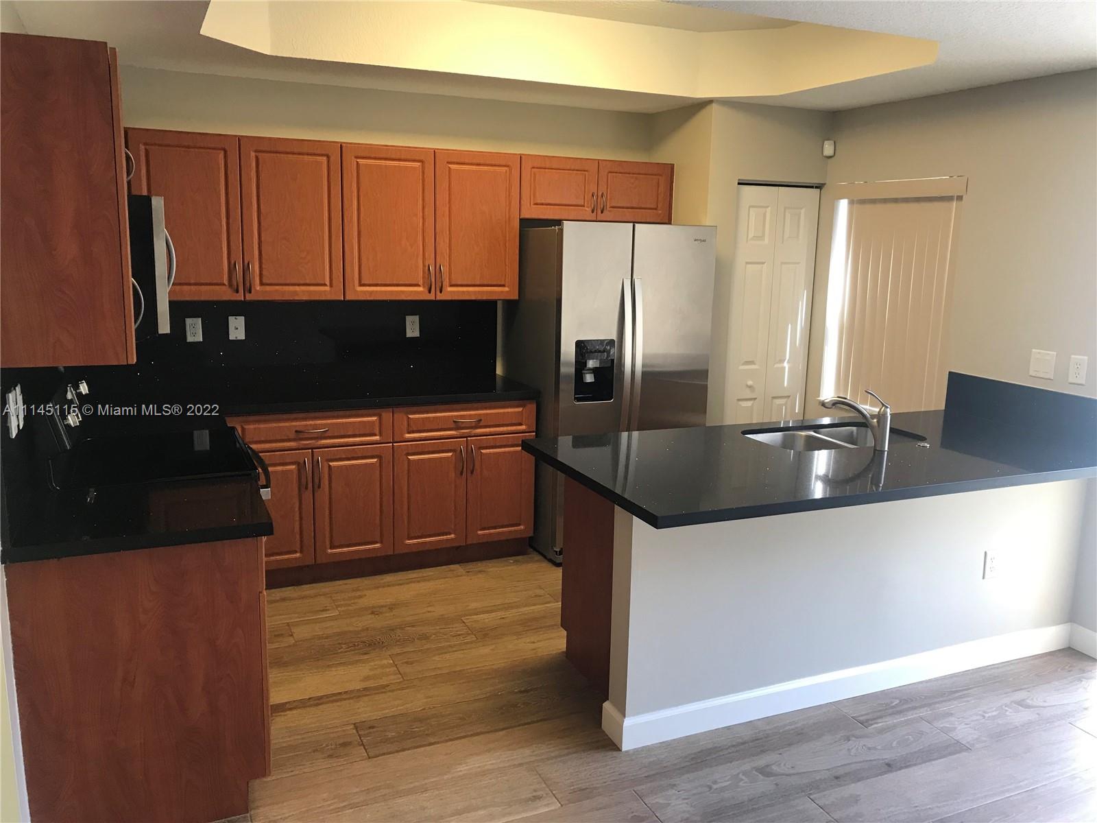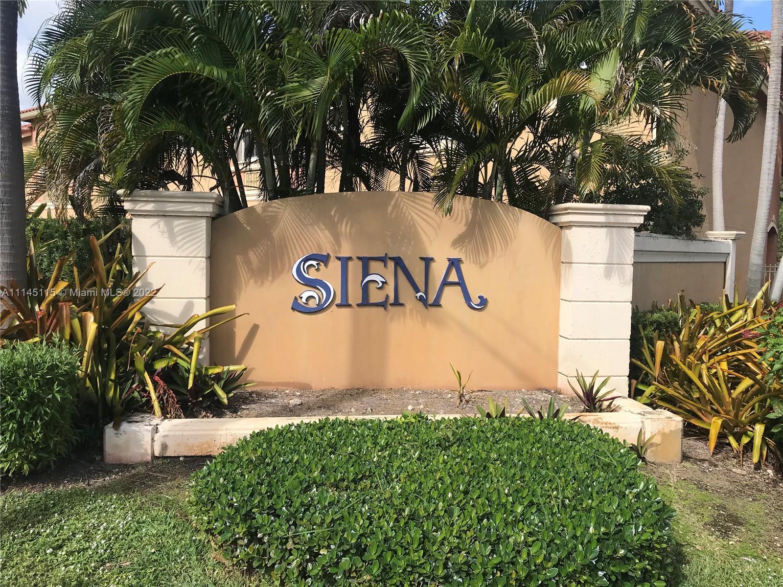 Immaculate 3 bedroom/ 2.5 bath two story town home in smaller gated community of Siena. Porcelain wood plank tile throughout ground floor and large, 20x20 glazed porcelain tile upstairs. New refrigerator, range and microwave in beautiful open kitchen with quartz counter tops. three bedrooms and two full baths upstairs and a half bathroom downstairs. Large separate utility room with full size washer and dryer. Fenced patio area with pavers. Low maintenance of $195 monthly and pets are allowed. Close to Hard Rock and easy access to 441, turnpike and I-95. Shows great!