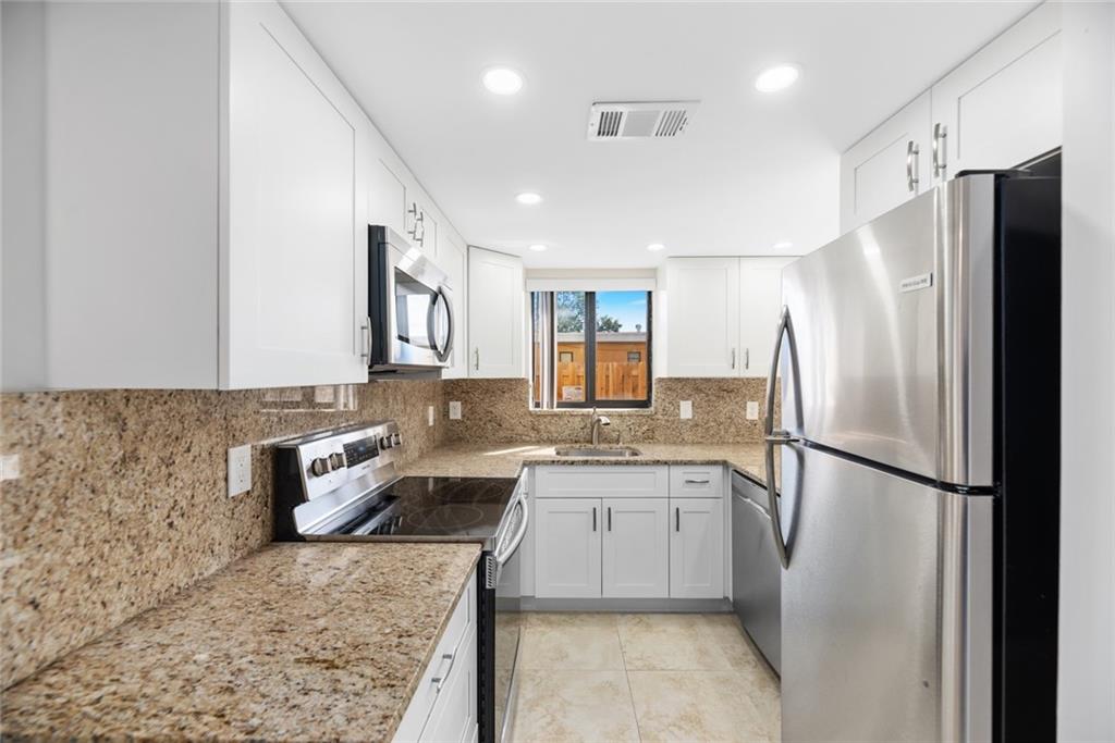 Completely and tastefully renovated 2-bedroom, 2.5-bath townhouse. New kitchen with granite countertops and backsplash. Remodeled bathrooms. Recessed lights everywhere. Enormous private yard and two assigned parking spaces. Close to Costco, Publix and Home Depot, plus all the shopping and entertainment on Biscayne Boulevard. Association fees pay for: Hazard and Windstorm Insurance, Trash Removal, Pest Control, and Exterior Repairs and Maintenance. The Association's Reserve Fund is covers the cost of roof replacements, exterior painting, and parking lot maintenance. This is another project presented by the Traikos Design & Development Group.