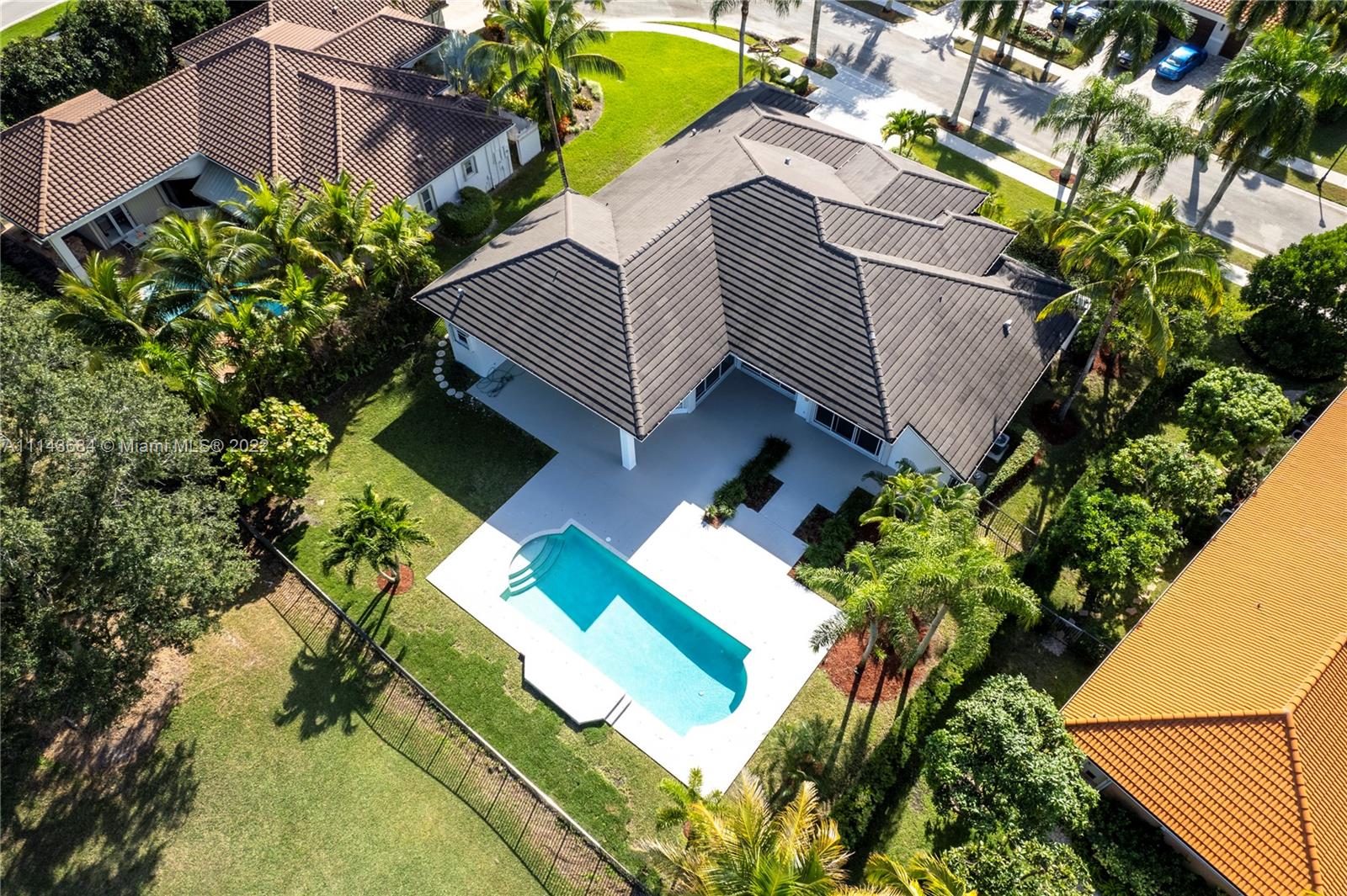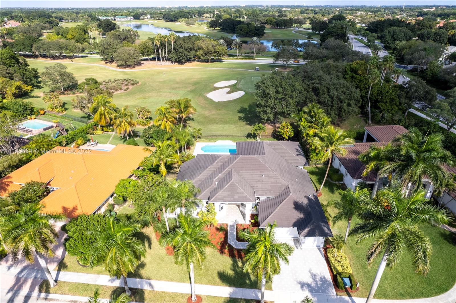 This Spectacular Spacious Updated Golf View home inside the Weston Hills Country Club overlooks the 11th Green on the Tour Golf Course and is located on a cul-de-sac. This home features 4 bedrooms, 4 1/2 Bathrooms PLUS an office AND a 3 car garage on an oversized fenced lot with a very large pool/patio area. BRAND NEW ROOF, NEW WATER HEATER, NEW STAINLESS STEEL DOUBLE OVEN, NEWER WASHER AND DRYER, NEW TRASH COMPACTOR, and NEW DISHWASHER. All windows have accordian shutters. There is modern white/grey marble floors throughout the main area of the home with high volume ceilings. The open high ceilings with a triple split floor plan is a perfect setting with a lots of space. This home will not last! Please text listing agent or call. Open house will be held Saturday and Sunday 1-3.