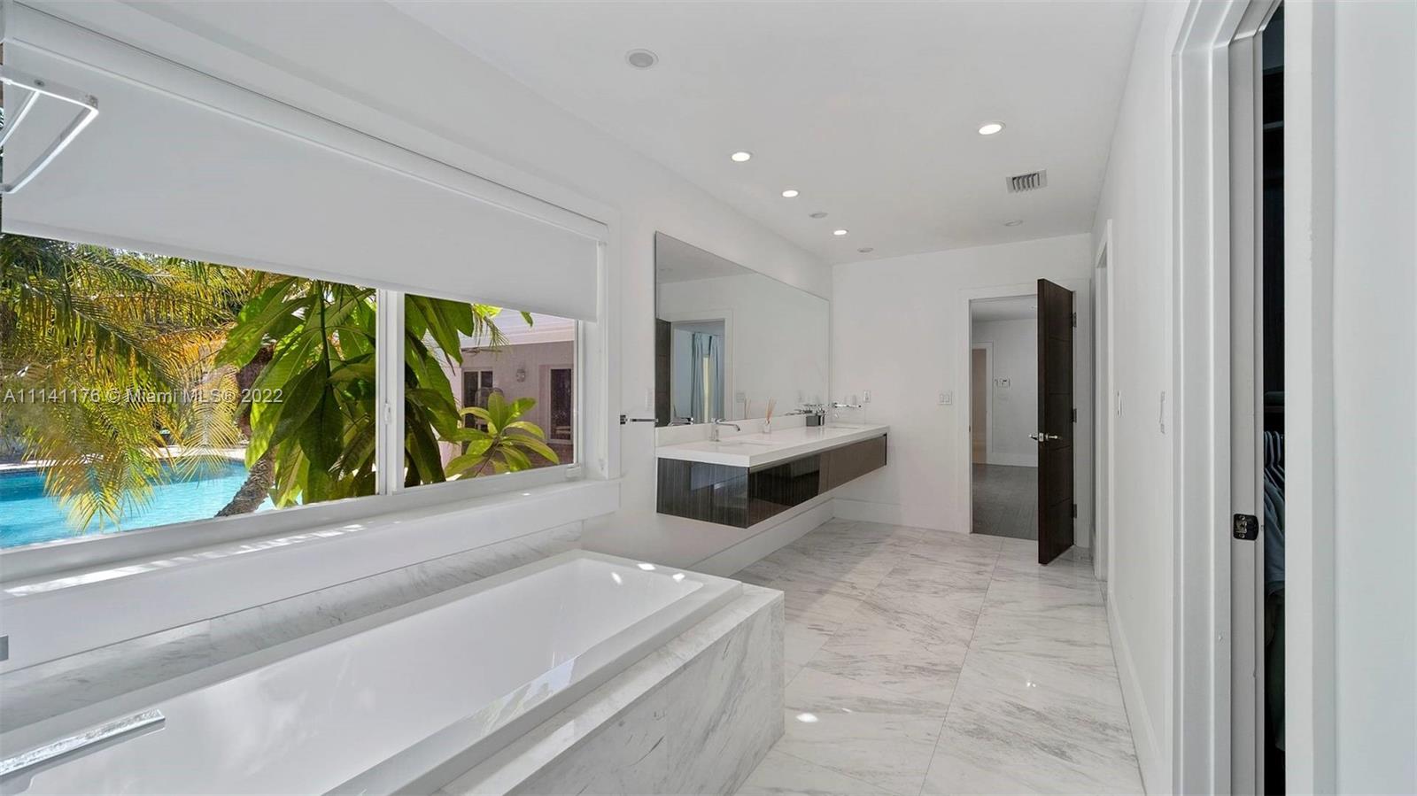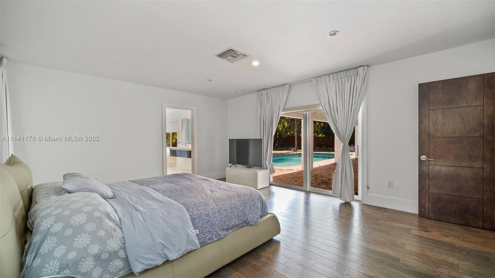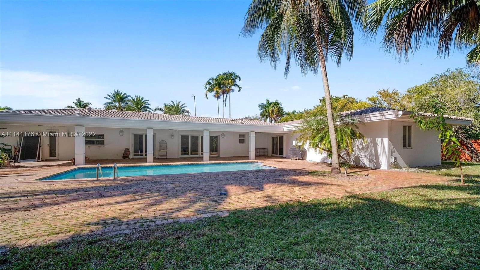 Beautiful Coral Gables Corner Home in prestigious Pine Bay Estates. SqFt Adj 4,412. Grand and imposing entrance leading to modern double doors with glass accents. Excellent lobby entry, formal dining room, living room, and has a spacious, bright, and cozy family room overlooking the pool and garden. Renovated kitchen with Italian-style cabinets and quartz countertop. There are spacious 5 bedrooms and 3 1/2 baths, the large master bedroom with his and her walk-in closets, a beautifully renovated master bathroom with marble, a separate shower and tub, and many details. And it also has a large laundry room and much more areas! It has fantastic details, such as the Chicago brick driveway, patio, and pool area. Parking for more than 15 cars. Don't miss out on this amazing opportunity!