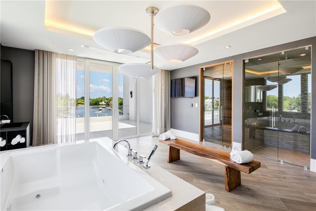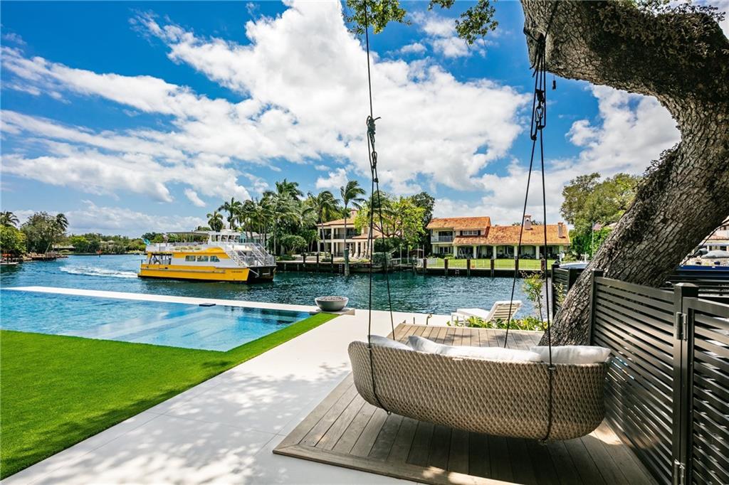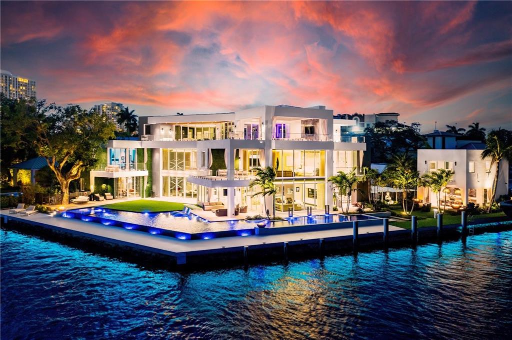 Breathtaking one-of-a-kind estate! This modern 3-story point lot offers 250' of deep WF. Bright, open floor plan boasts breathtaking River views. Fastidious craftsmanship & attention to detail w/ultra high-end finishes throughout. Luxurious features include game room, theater, temp controlled wine cellar, generator, natural & propane gas, boat lift, oversized kitchen, guest house & 3rd level club room. Huge primary suite w/water views, his & hers baths, closets & massage room. Also find a gym & spa that can be converted into a secondary suite. Resort style backyard w/lap pool & numerous covered lounging areas. Located in gated Sagamore Cove in Las Olas Isles. With quick & easy access to the ICW & inlet, this location is a yacht owner's paradise! Walking distance to Las Olas restaurants.
