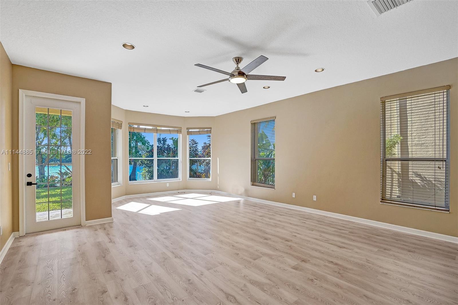 Spectacular Waterfront home that greets you with 23ft Vaulted Ceiling, Grand windows, Lighted Accent wall and Travertine floors! Beautifully upgraded to include fresh paint, Recessed lighting, Brand New Flooring, lighting fixtures, Ceiling fans, Washer/dryer and Water Heater! Includes large Loft and 1st floor Master bedroom. Every room except one, overlooks the lake! All bathrooms remodeled with Marble/Quartz countertops, Travertine/Porcelain tiles, Vessel sinks and Wood vanities. Entertain guests in the open living areas and spacious kitchen that features Slate appliances, Granite countertops, wood cabinets and Breakfast nook. Relax in your own tropical oasis, with picturesque lake views and sunsets from the covered patio or balcony. Do not miss the opportunity to own this stunning home!