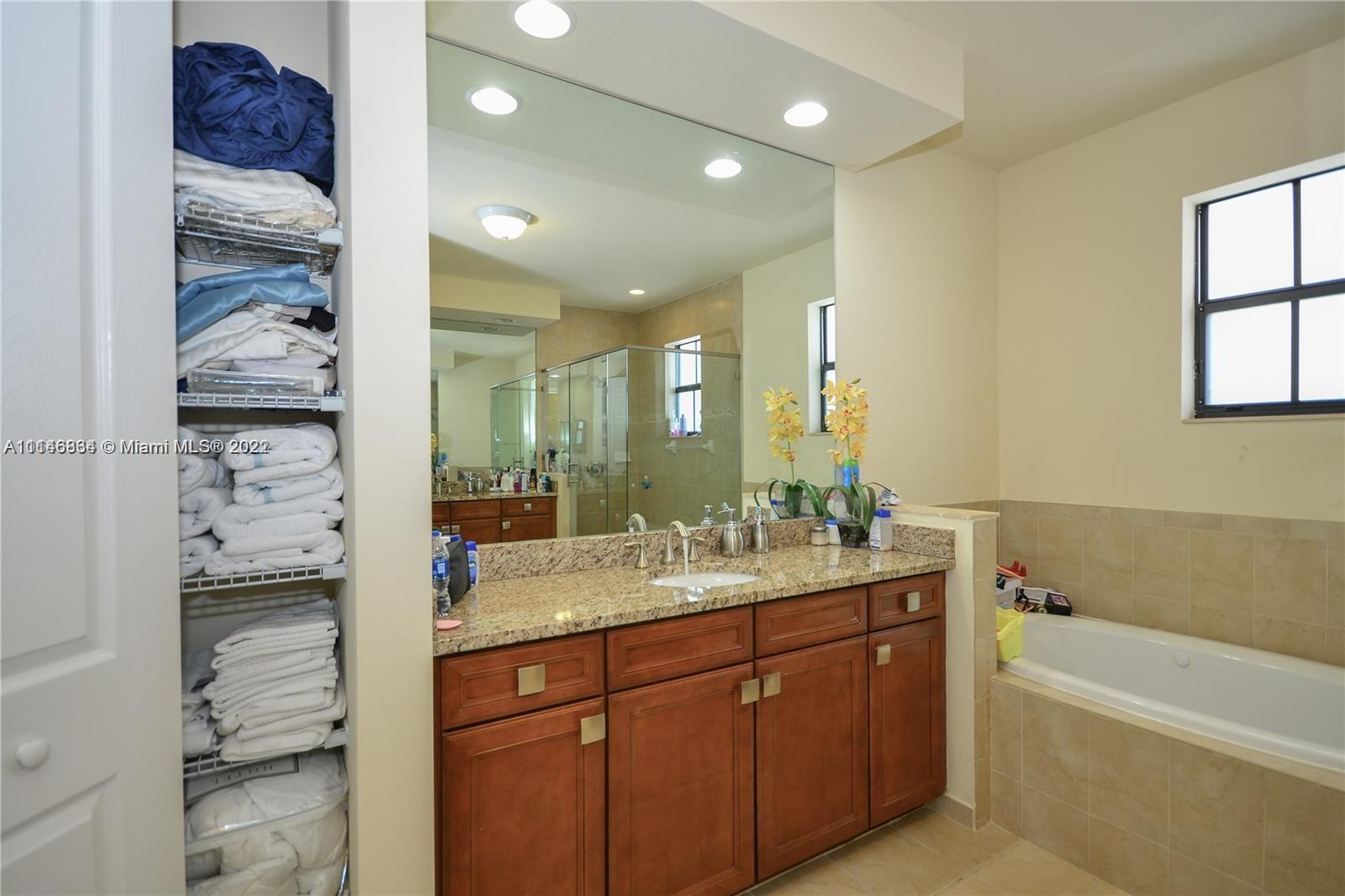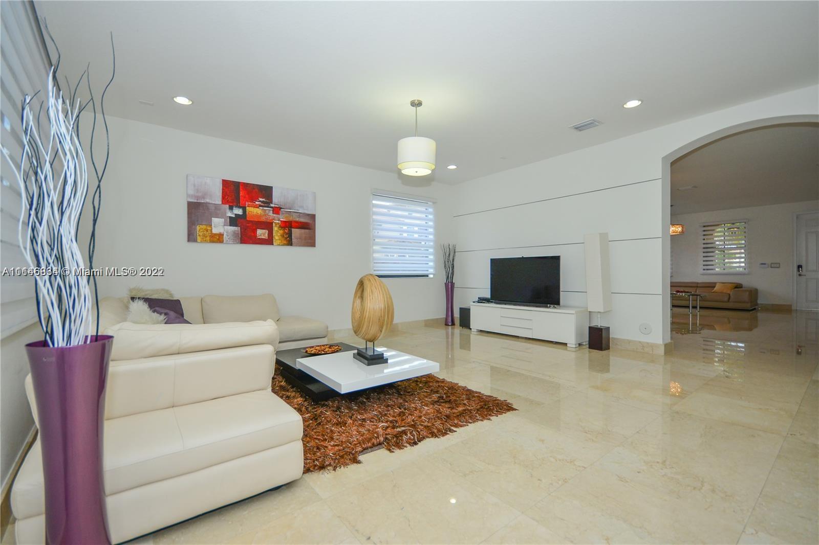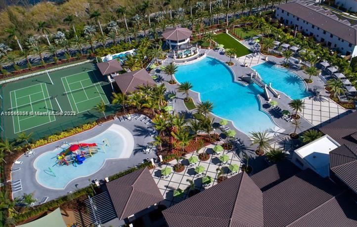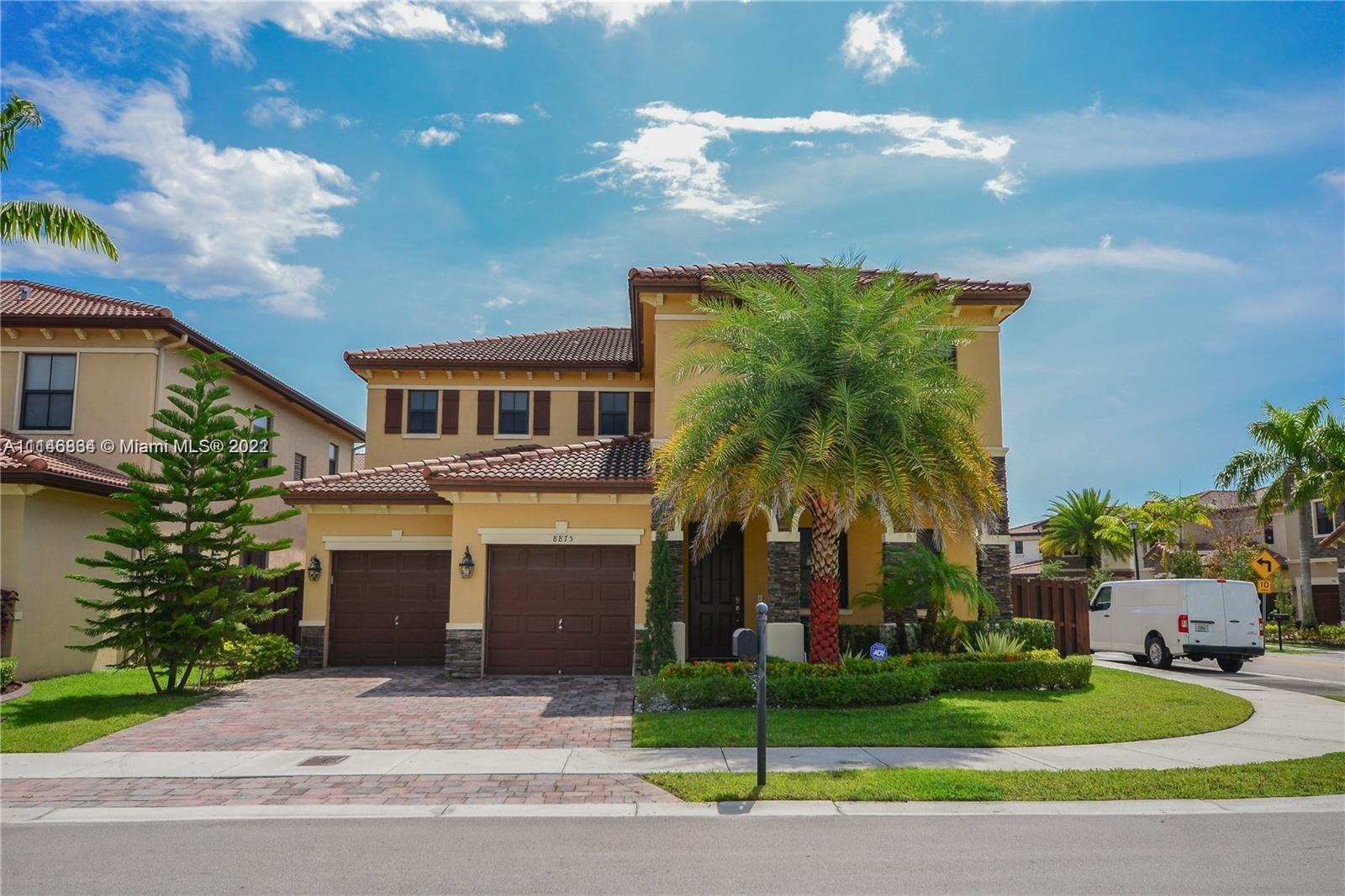 Corner lot single family home located in the prestigious gated community at Grand Bay Estates at Doral. European style Open & oversized kitchen integrating top of the stainless steel line appliances. Grand staircase leading to 2nd floor where you will find an expansive master suite with a huge walk-in closet & bath, & 3 additional rooms in which 2 share one bathroom and the other room has a private bathroom. This 4/4 baths, 2 story contemporary home features 3,128 SqFt of living area, located in a 5,566 Sq.Ft corner lot with direct lake views, & a spacious patio with room for pool or Jacuzzi. Amenities include 28k square-foot clubhouse, pools, tennis/basketball courts, gym & more! Close to great public & private schools, supermarkets, restaurants, & new Doral CityPlace shopping mall.