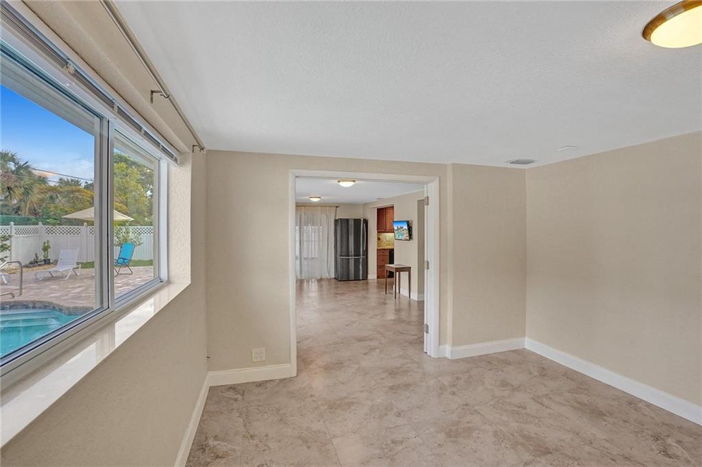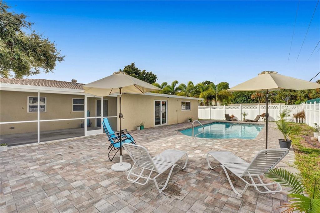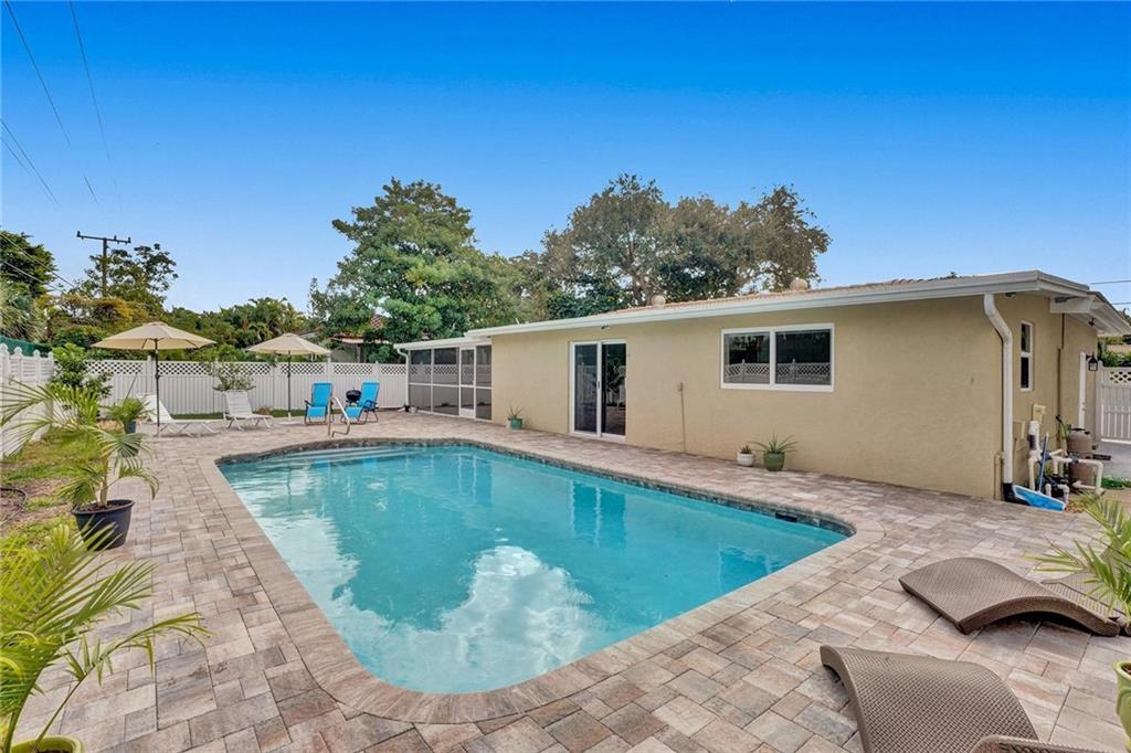 Pompano Shores Pool Home. 3/2 plus bonus room and screened in concrete foundation patio rarely available in this community. All new flooring in main living area and hall way out to kitchen and 3rd bedroom, original, well maintained terrazzo flooring in 2 of the bedrooms. New HVAC New electric panels, popcorn removed from ceilings. newly coated flat roof over screened enclosure patio. New Impact windows throughout. New pavers and diamond brite/pool, fully fenced yard.4 point inspection was done for new insurance. Great light in home. location is close to everything you would need and intracoastal is at the end of the street with benches and little green space to view the boaters or watch the Sunrise. Its a cutie!!!