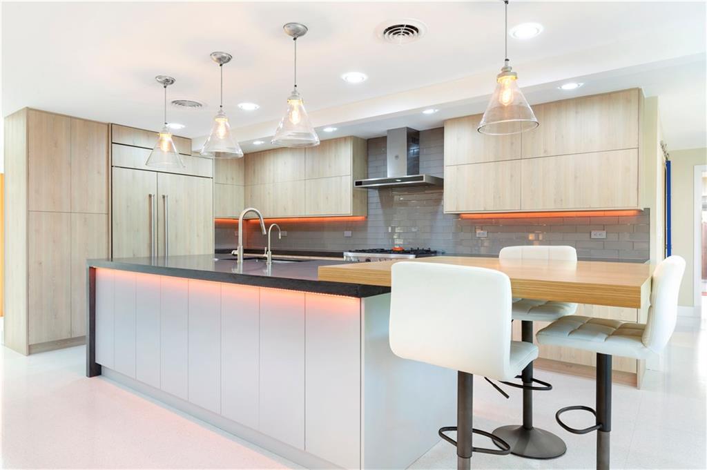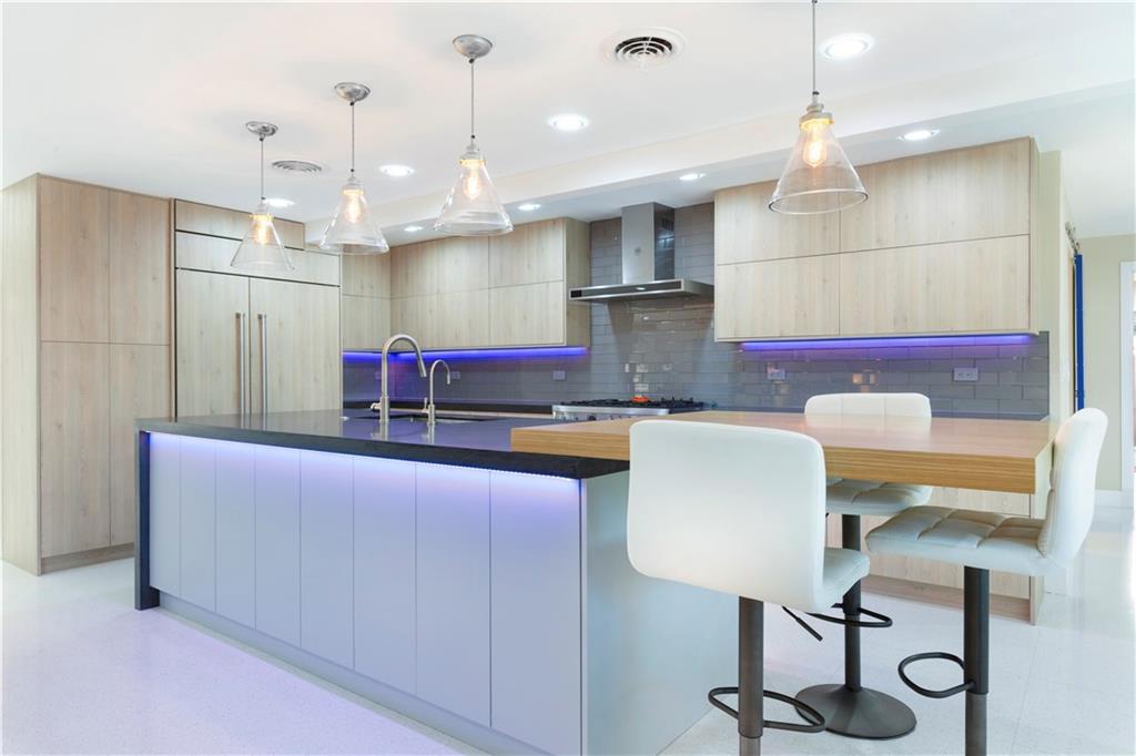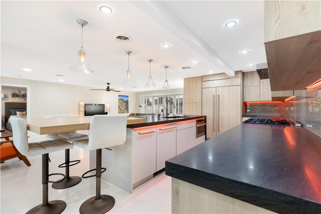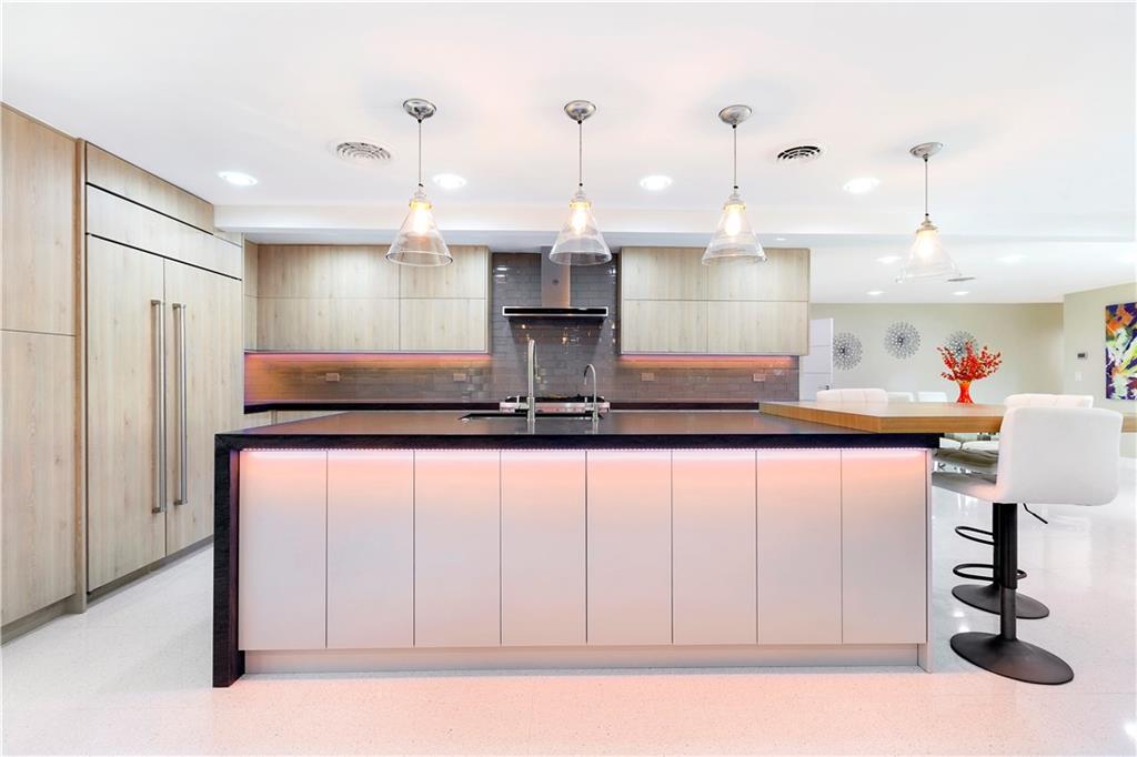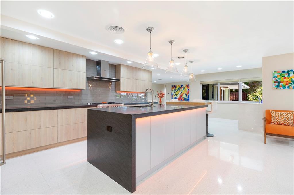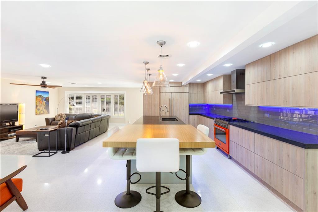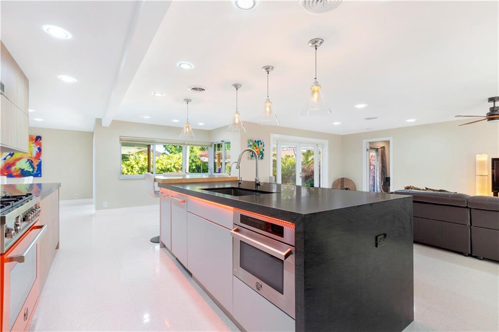 Updated & inspired by contemporary design, sophisticated features & modern technology. The bright open floor plan is ideal for todays lifestyle integrating the great rm, dining area, kitchen & family rm. The center of this home is the one-of-a-kind culinary kitchen with multi colored accent lighting. Upgraded appliances include Bertazzoni, Sub Zero, Bosch & Fisher Paykel. A 6 burner dual fuel gas oven, electric appliance garage & oversized center island provide the ultimate in entertaining. The primary suite offers a large walk-in closet, lavish bath & access to the backyard & pool. The Jr. suite boasts a kitchenette & private exterior entry. The solar heated salt water chlorinated pool is framed by a large patio & lush landscaping. Mins to shopping restaurants & the beach. Sq ft from BCPA