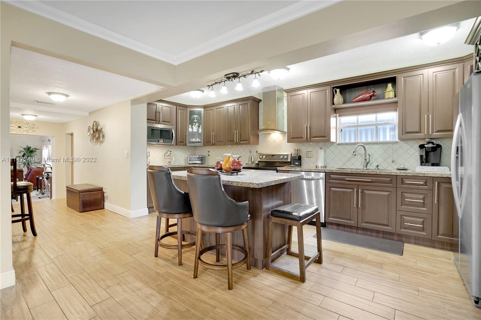 Back on the market ! Rare gem in the heart of Hialeah. This beautiful home has been completely redone within the last five years. The owner has spared no expense to make this home turnkey for the new potential owner. The property boasts a brand new roof installed in 2021, new kitchen with custom wood cabinets, remodeled bathrooms with custom made wood vanities, flooring, crown moldings, accordion shutters, fencing through out and HVAC is only five years old. This gem is located on a dead end street with minimal pass through traffic, great location within minutes from shops, restaurants and major highways. Hurry this will not last.