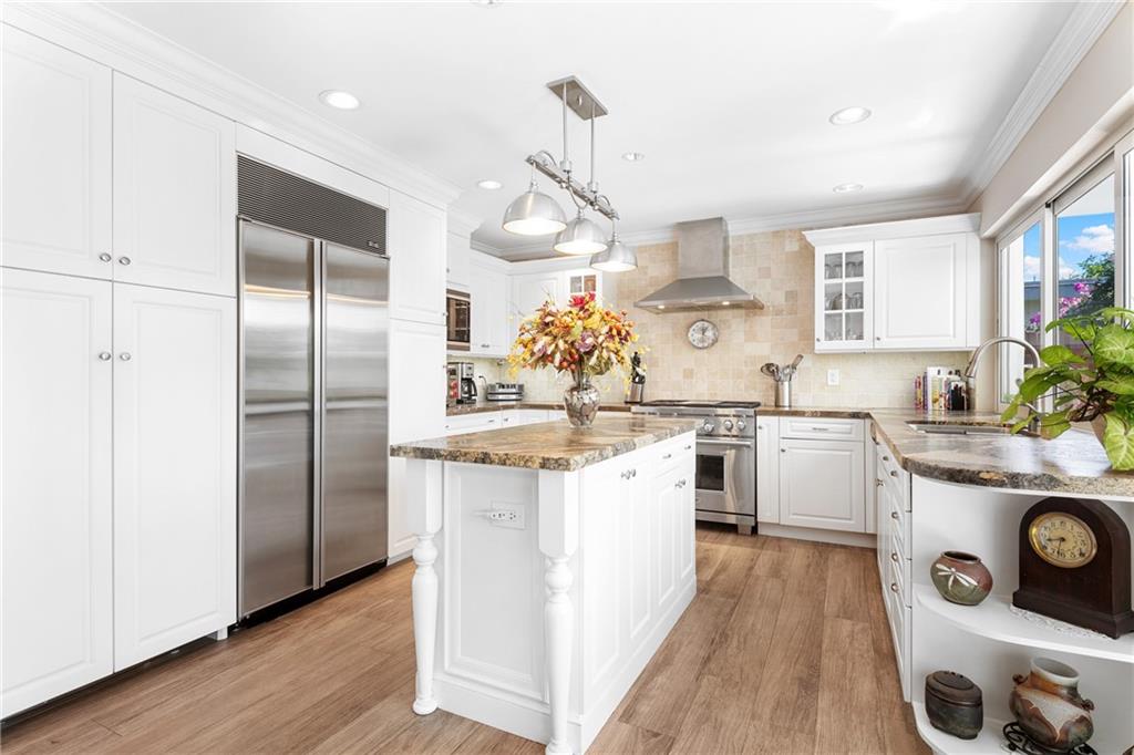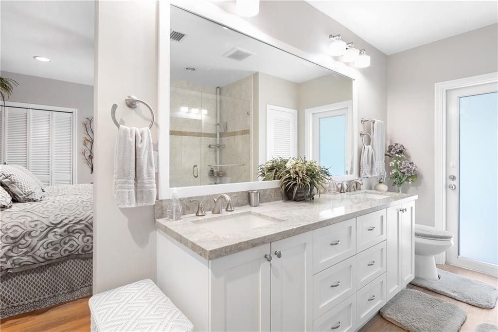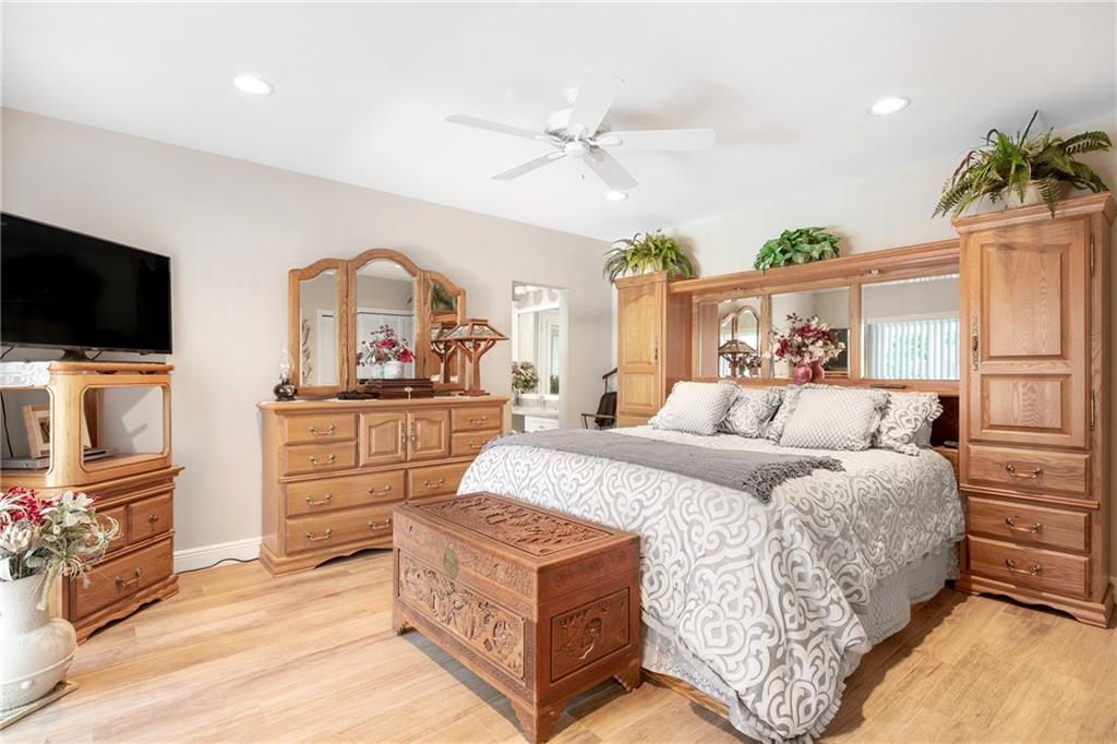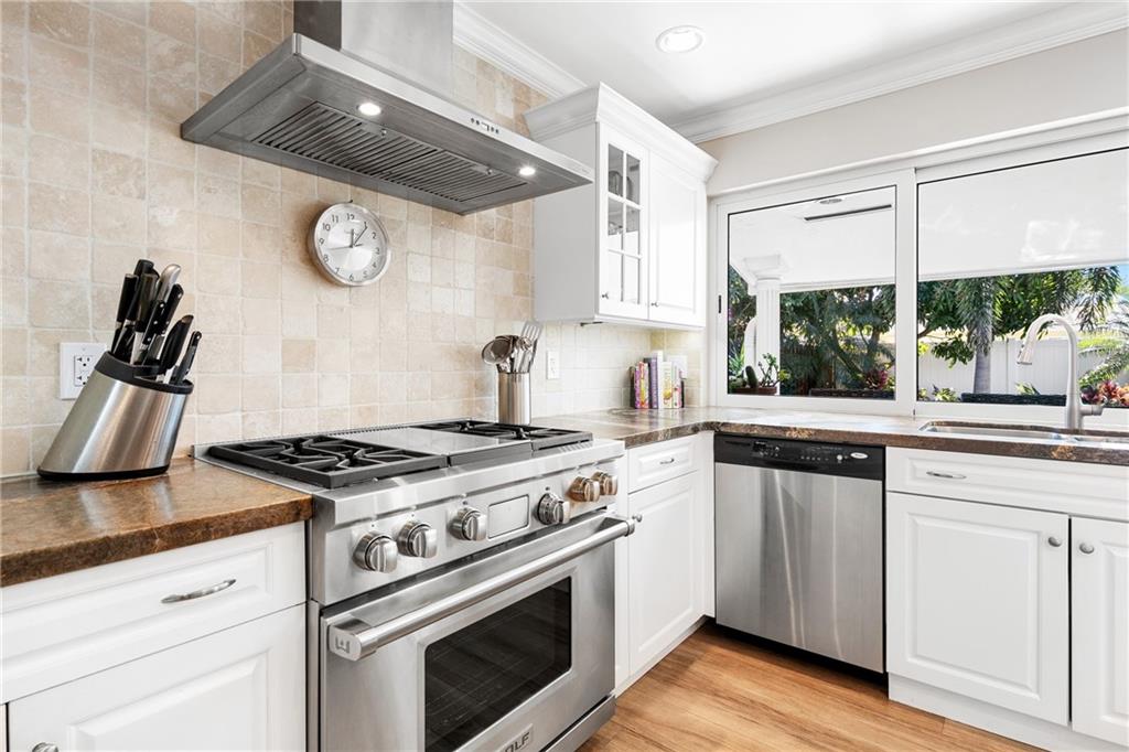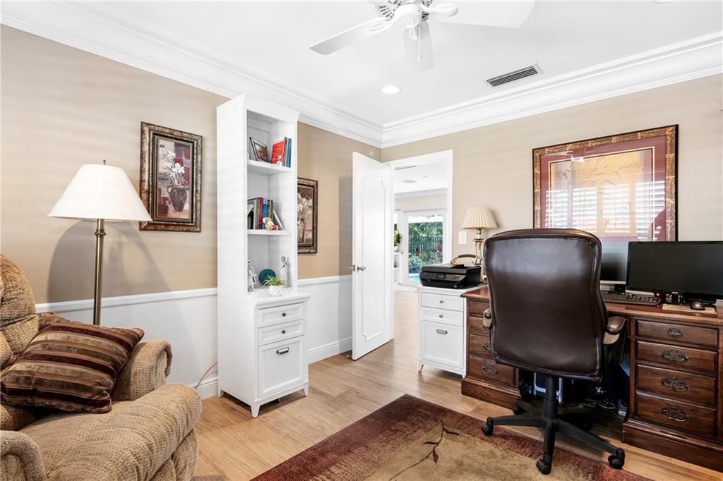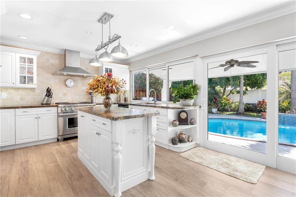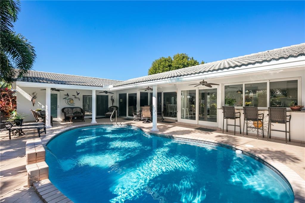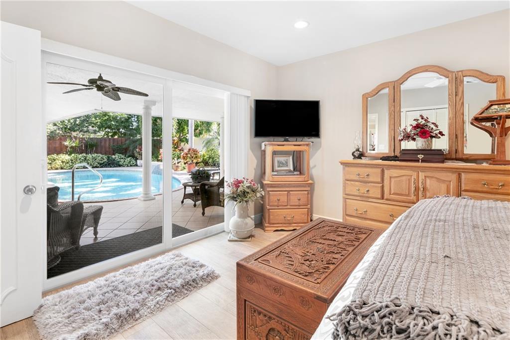 3 Bedroom PLUS Den or 4th Bedroom Pool Home w paver circular drive, impact windows & doors, resurfaced heated pool w glass tile accents & sheer descent waterfall & large covered patios. Open plan w recessed lighting, great room & formal dining. Featuring wide plank wood porcelain flooring throughout (including den/4th bedroom). Spacious living areas, huge kitchen w island, unique stone counters, undermount stainless sink, stainless Subzero refrigerator & Wolf gas range, tankless gas water heater & kitchen pass-through to patio bar dining area. Master Suite & updated bathroom w large format shower opens to covered patio & pool. Good sized Bedrooms 2 & 3 w adjacent updated bath w spa tub. Private fenced yard w extensive landscaping. Special financing incentives available w Sirva Mortgage.