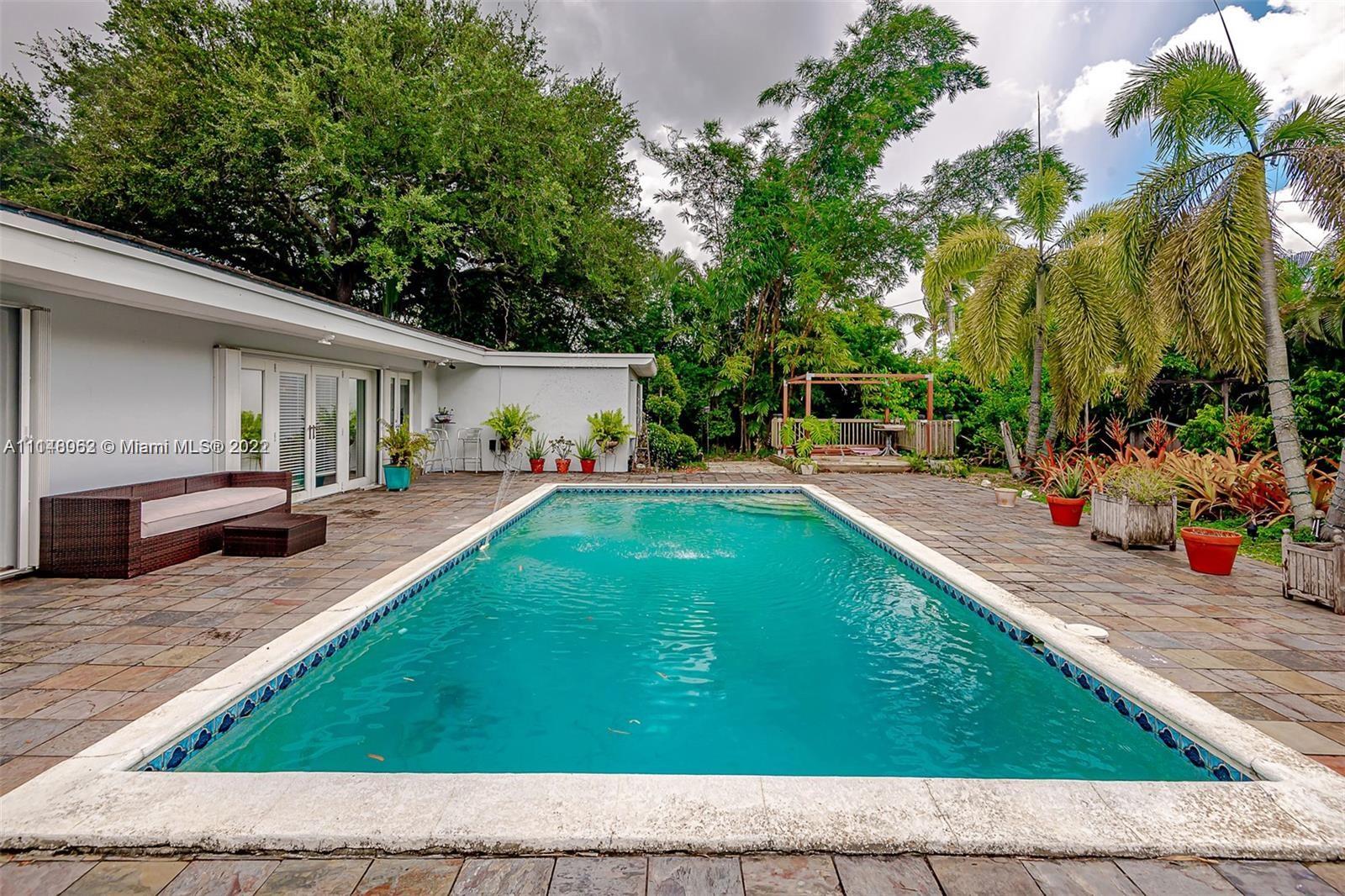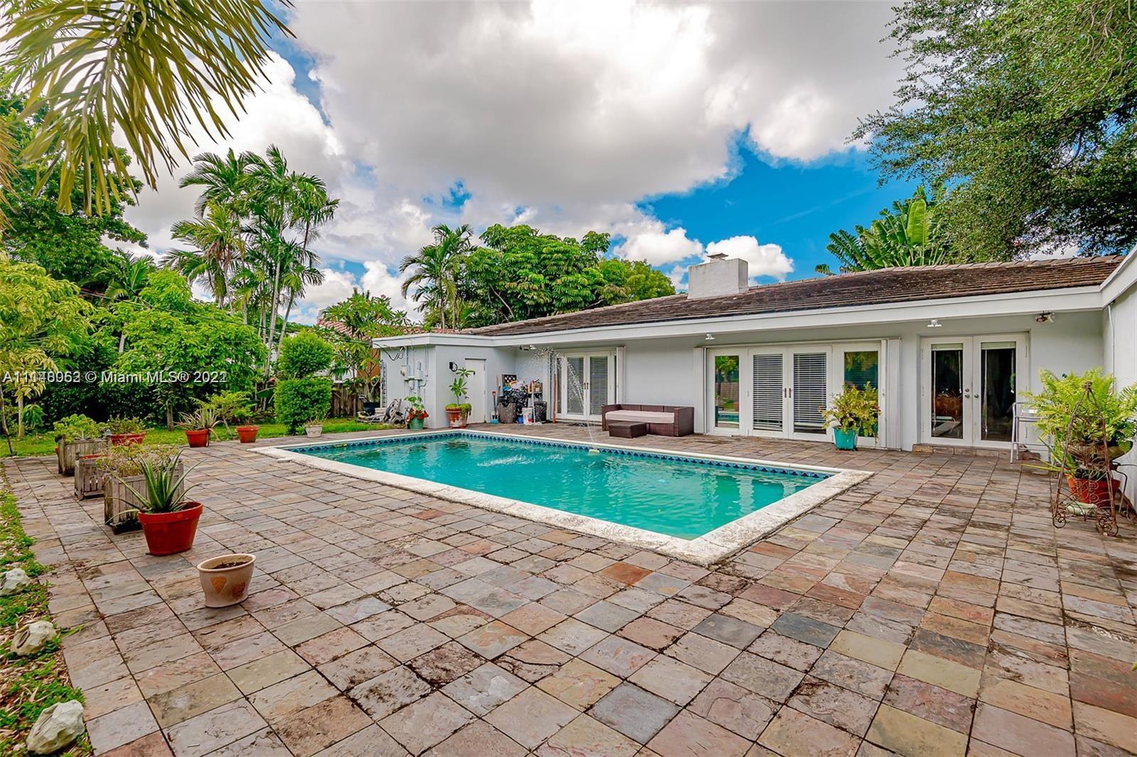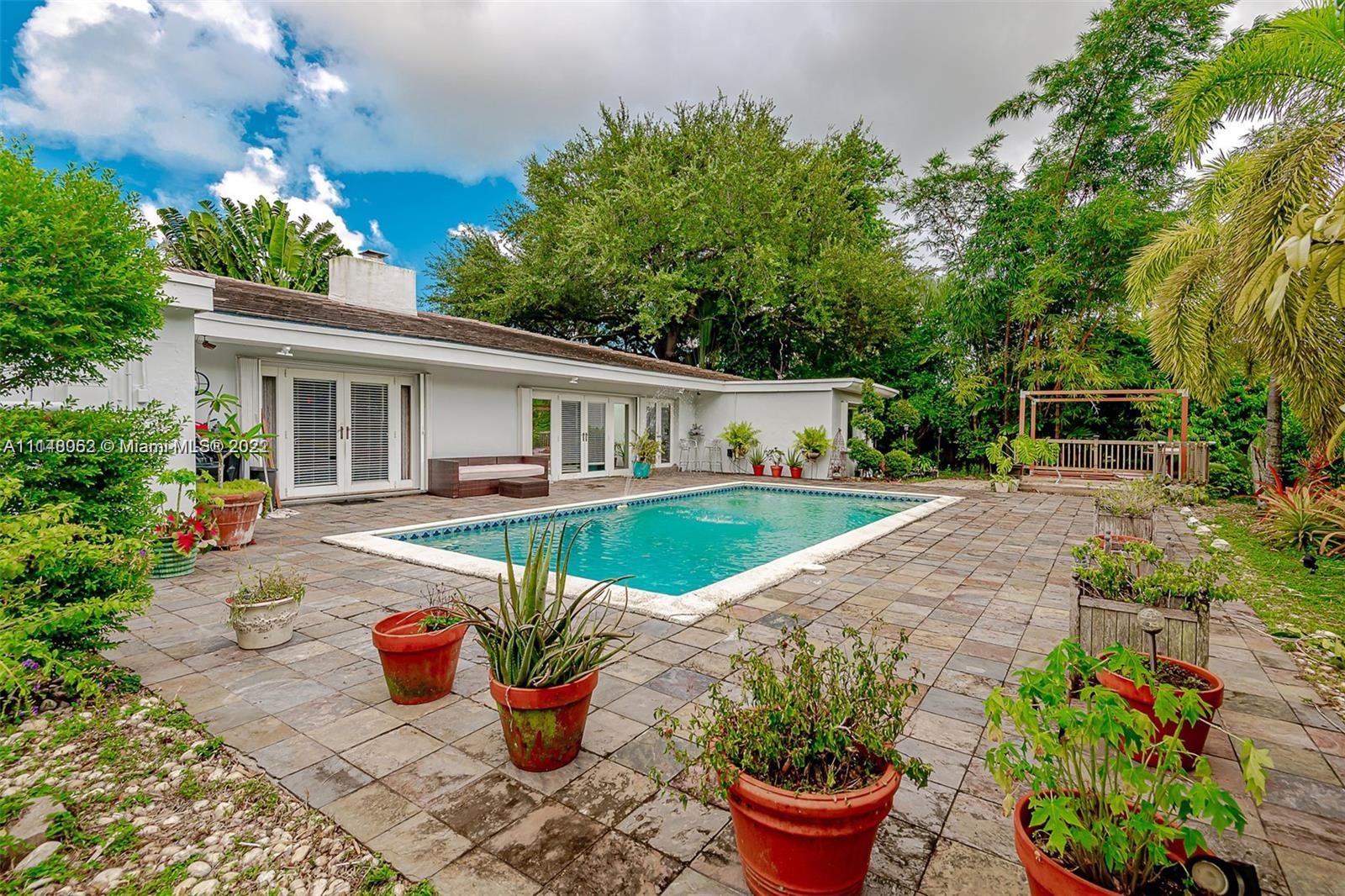 Mid-Century Modern on a over 14,000 sq ft lot. Come Enjoy this pool home in the heart of Miami Shores! Terrazzo and hard wood floors, Large Bedrooms w/ plenty of closet space, Master with french tub and walk in closets. Tons of natural light. Large Lush private fenced in backyard with back entrance. Ample parking on your paved circular driveway. Perfect for entertaining. Easy to show.