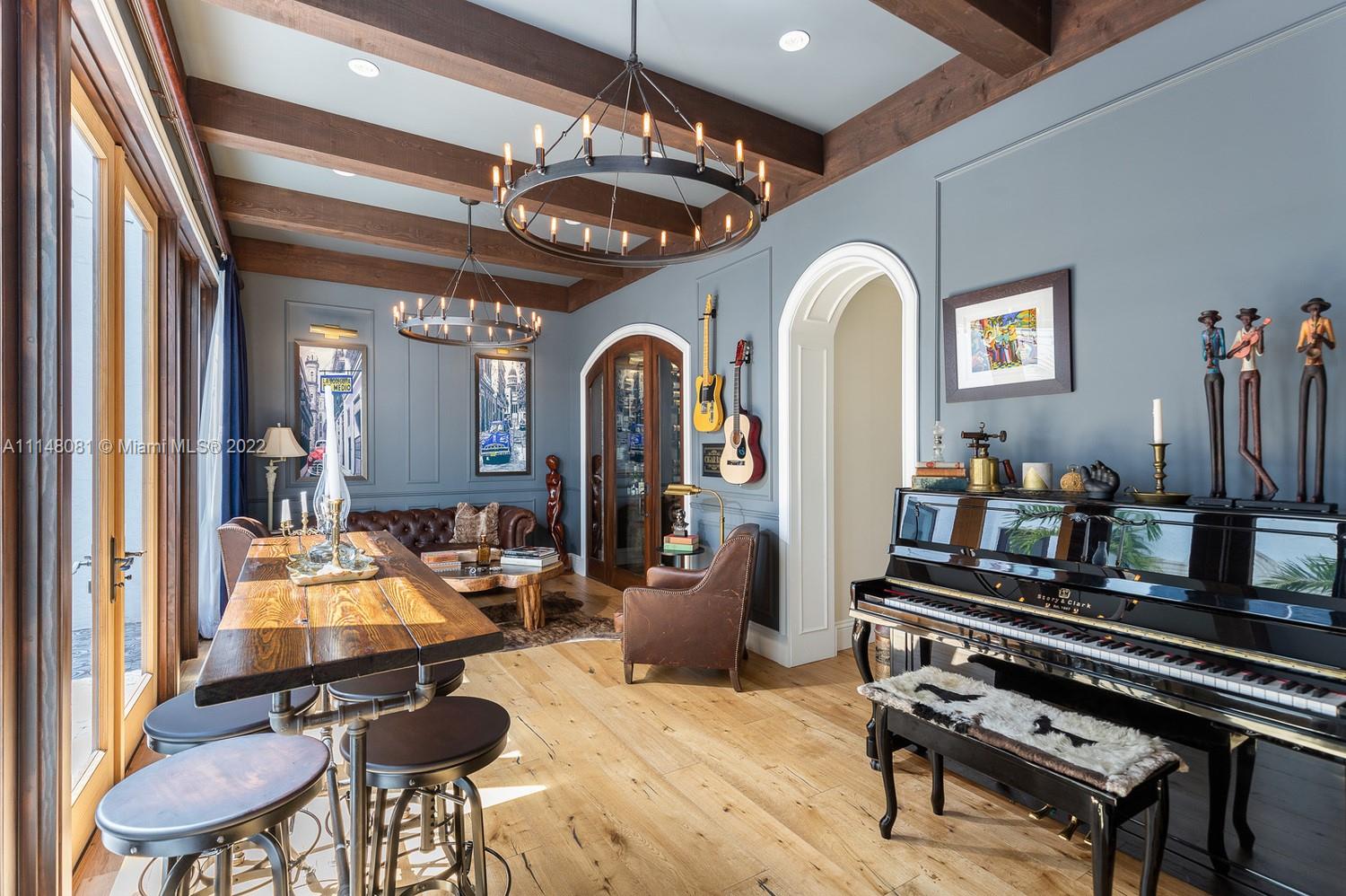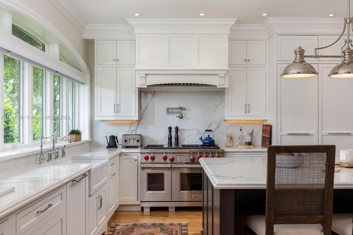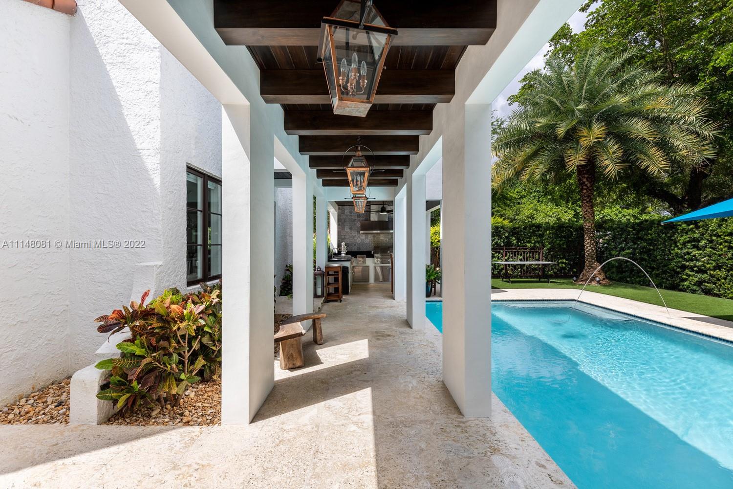This magnificent Old Spanish gem was completely renovated in 2017. With exquisite architectural details and features that include all hurricane-resistant Pella windows, all mahogany wood interior doors, a custom-designed 500 bottle wine cellar with natural brickwork, hardwood floors throughout, stunning gourmet kitchen with Subzero, Wolf and Bosch appliances, and marble countertops. Masterful custom millwork throughout the home that includes all baseboards, crown moldings, trims, dressing rooms, closets, and more. LED lighting throughout, Savant home automation system that controls all window treatments, security system which includes 12 cameras, all lights, all audiovisual systems.