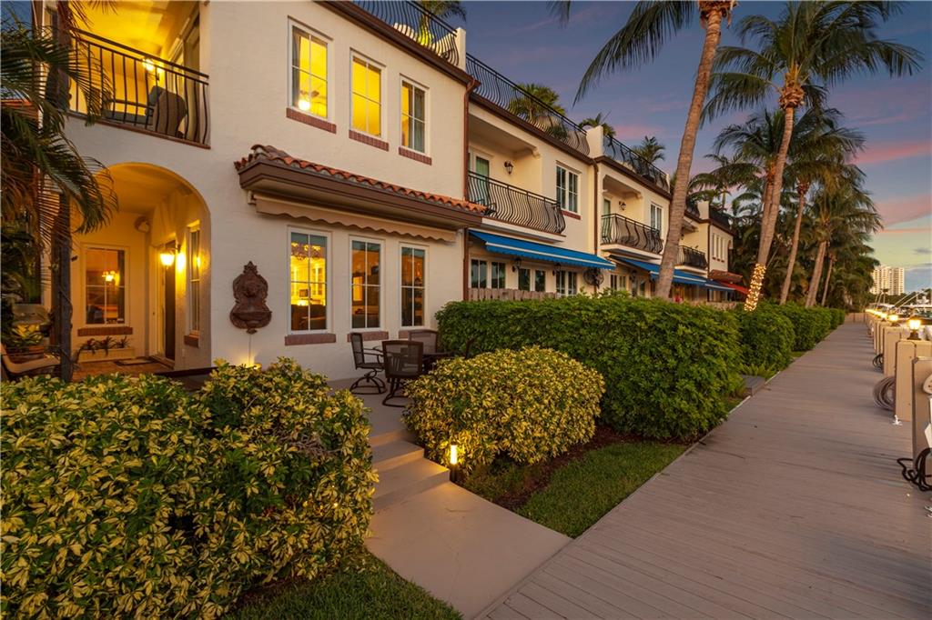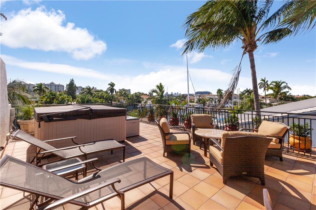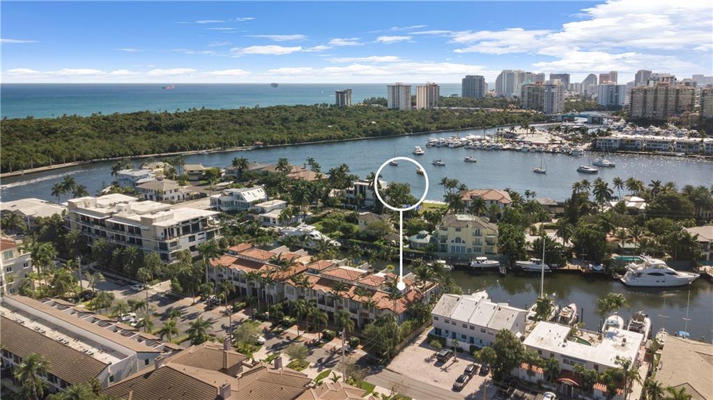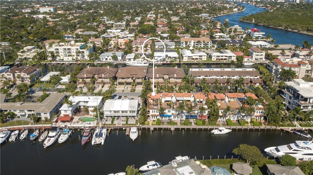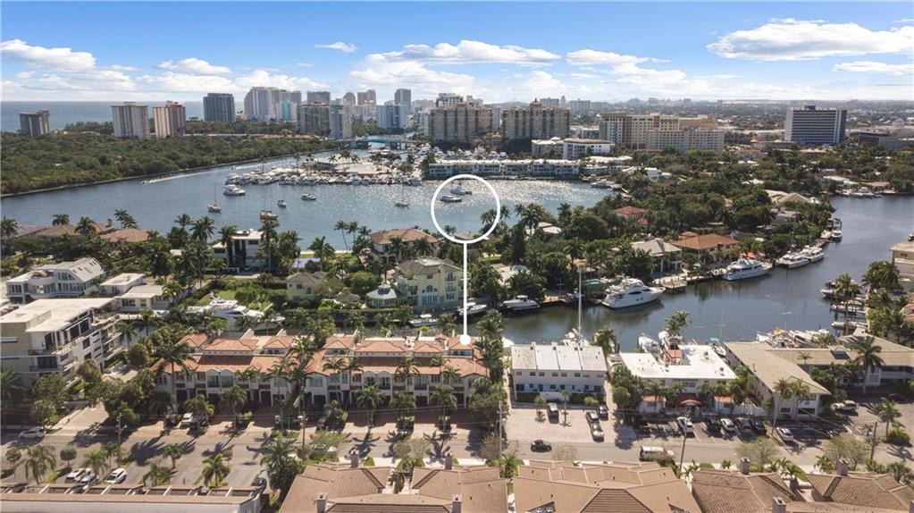Embrace the S. Florida dream in this deep waterfront townhome boasting 42' of dockage, a large turning basin & no fixed bridges to the Ocean. This corner unit provides an abundance of natural light & vol. ceilings that enhances the open flr plan. Enjoy the tropical lifestyle with a 1st flr covered & open patio area overlooking the waterway. Breathtaking sunrises & the most memorable sunsets are experienced over the downtown skyline from the oversized roof top terrace. Enjoy intimate gatherings in the formal living room & dining area or casual times in the open kitchen that overlooks the breakfast & family room. The primary suite features 2 walk-in closets, a lavish bathroom & private balcony. The loft area/home office, 2 guest bedrms & laundry rm complete the 2nd floor. Sq ft from Imapp.