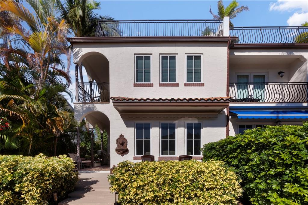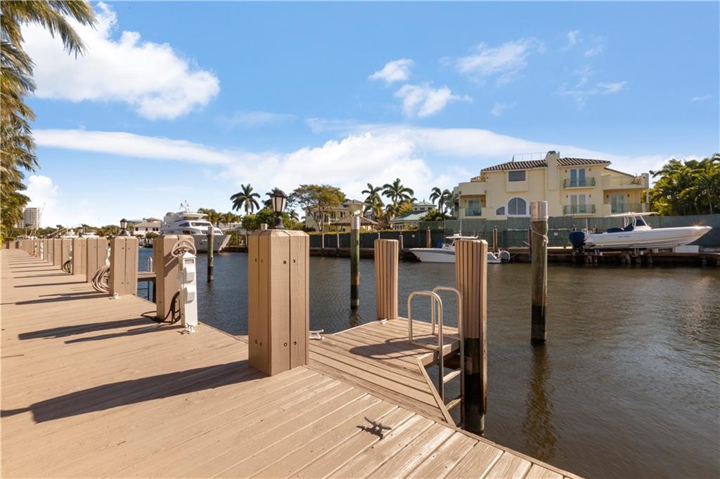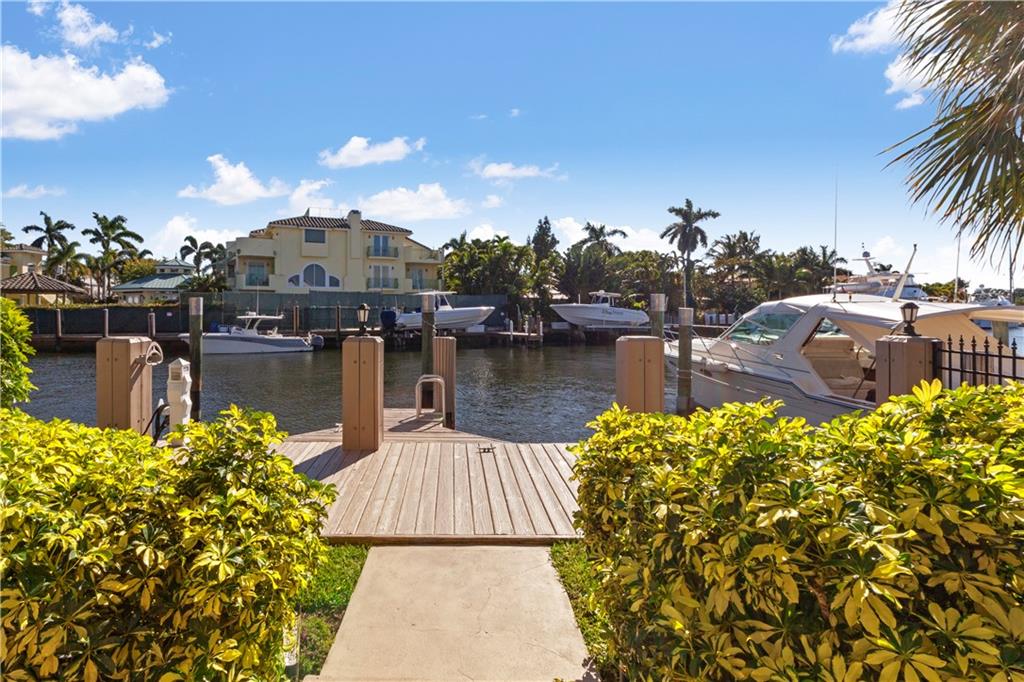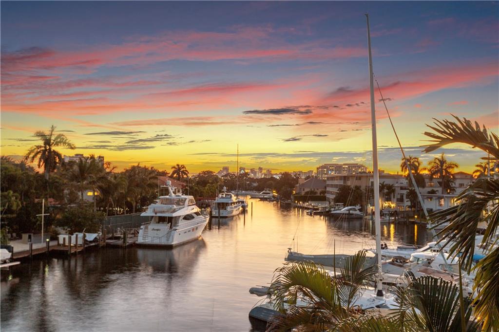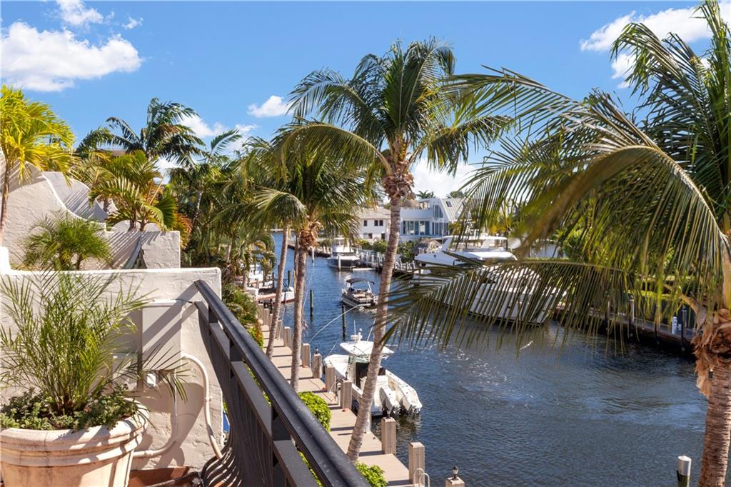Embrace the S. Florida dream in this deep waterfront townhome boasting 42' of dockage, a large turning basin & no fixed bridges to the Ocean. This corner unit provides an abundance of natural light & vol. ceilings that enhances the open flr plan. Enjoy the tropical lifestyle with a 1st flr covered & open patio area overlooking the waterway. Breathtaking sunrises & the most memorable sunsets are experienced over the downtown skyline from the oversized roof top terrace. Enjoy intimate gatherings in the formal living room & dining area or casual times in the open kitchen that overlooks the breakfast & family room. The primary suite features 2 walk-in closets, a lavish bathroom & private balcony. The loft area/home office, 2 guest bedrms & laundry rm complete the 2nd floor. Sq ft from Imapp.
