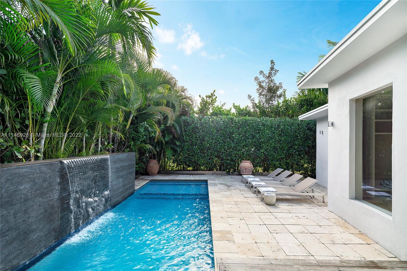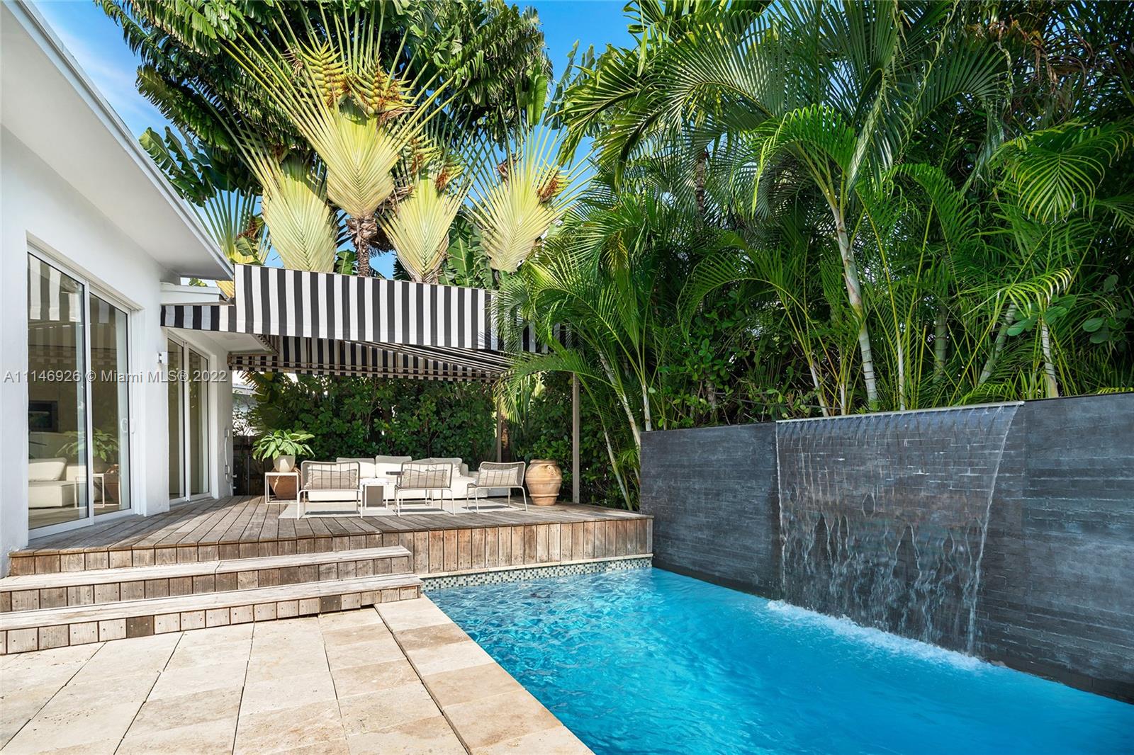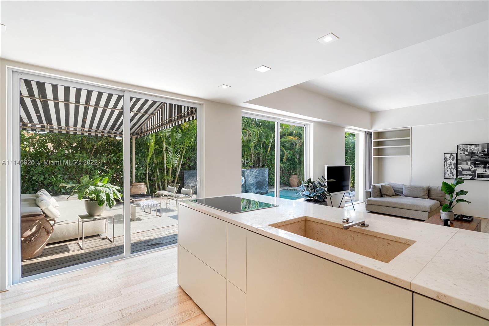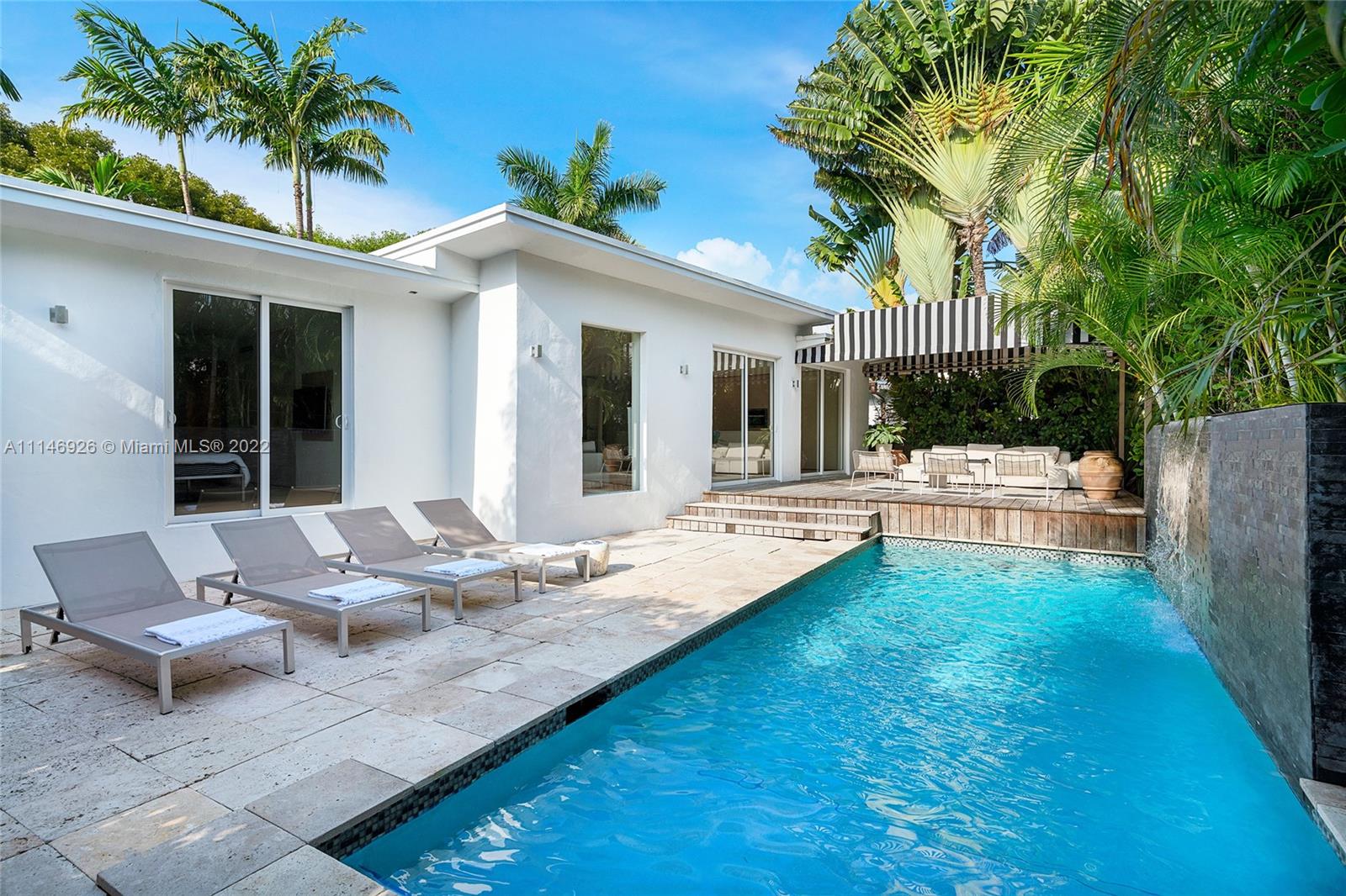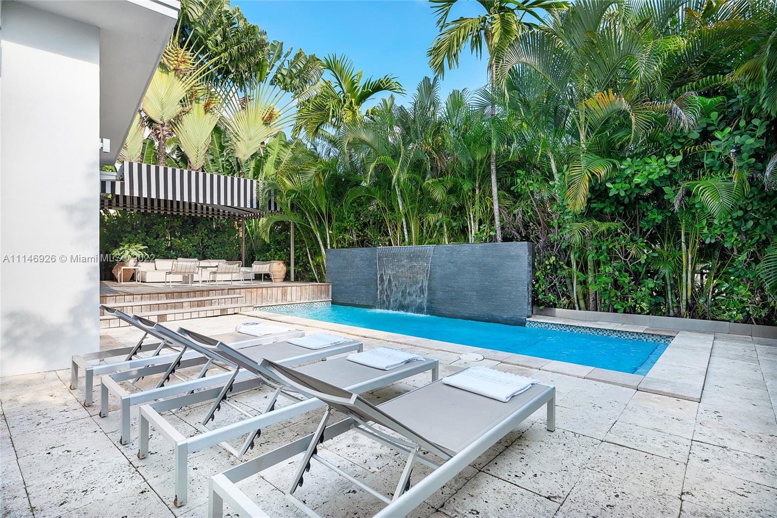 Enjoy modern finishes in this renovated 3BR/3BA Villa in the heart of Miami Beach. Features include: Italian oak floor or Marmorino, cooking island kitchen with stainless steel appliances, open living/dining area, principal suite with direct access to the outdoors, home automation lighting system, large backyard w/ heated saltwater pool with cascade waterfall, wooden deck, outdoor dining area, lush high hedges for ultimate privacy. This villa offers the best of Italian design and manufacture. Every detail is tailor-made by Italian artisans with a meticulous choice of materials.